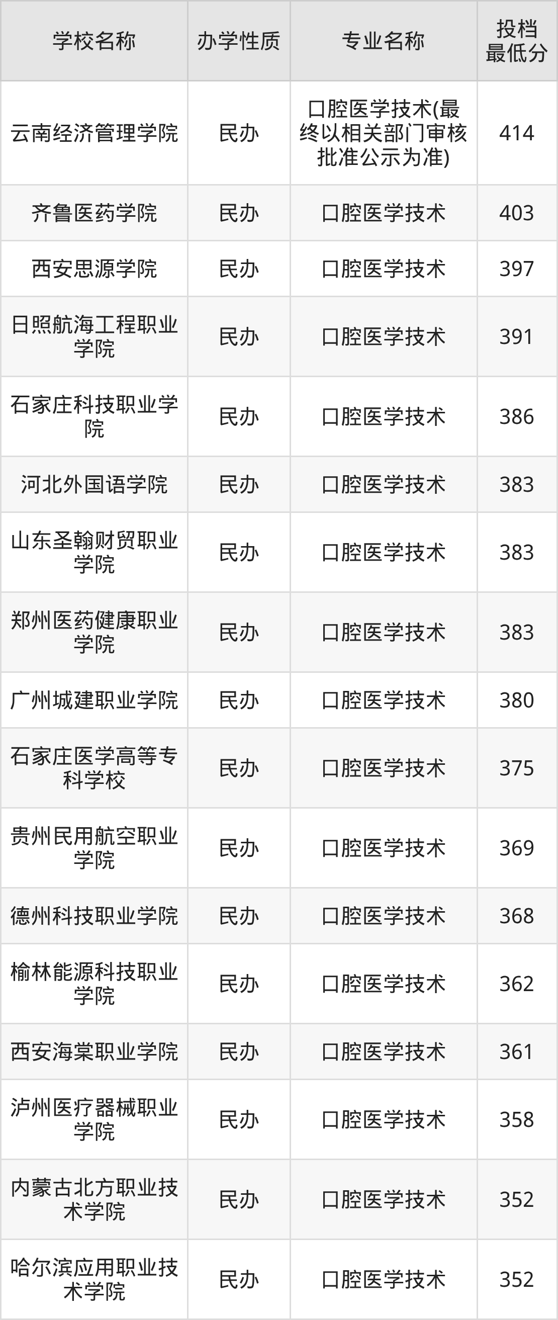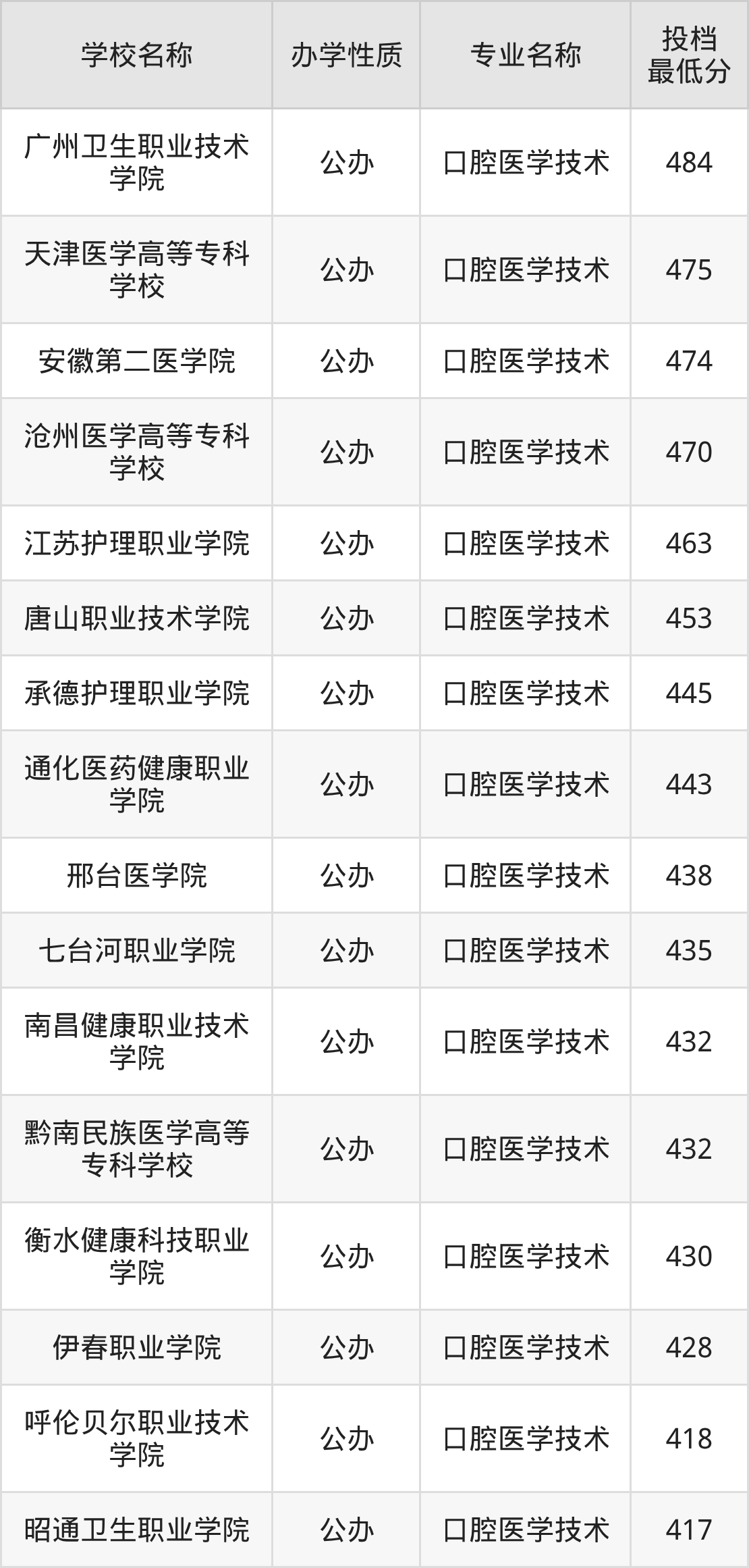 2025年全国口腔医学技术专业录取分数线从211分到484分不等,各校最低分数线存在较大差异。