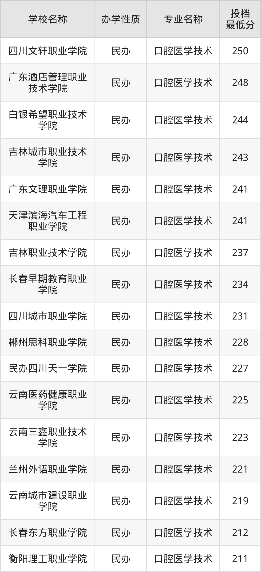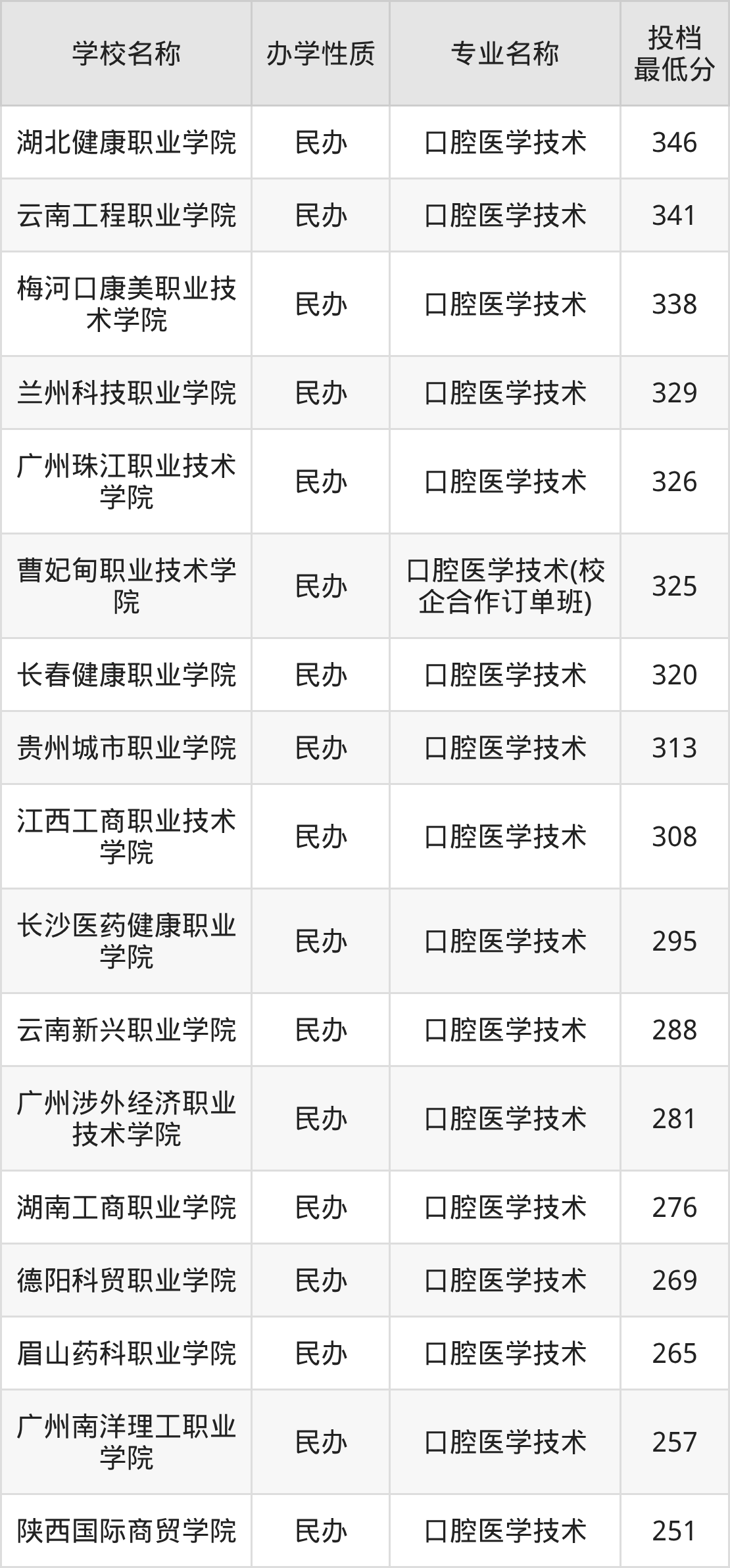 下面是全国各个大学口腔医学技术专业最低录取分数线排名一览表,考生可根据自己的分数情况选择合适的学校报考。