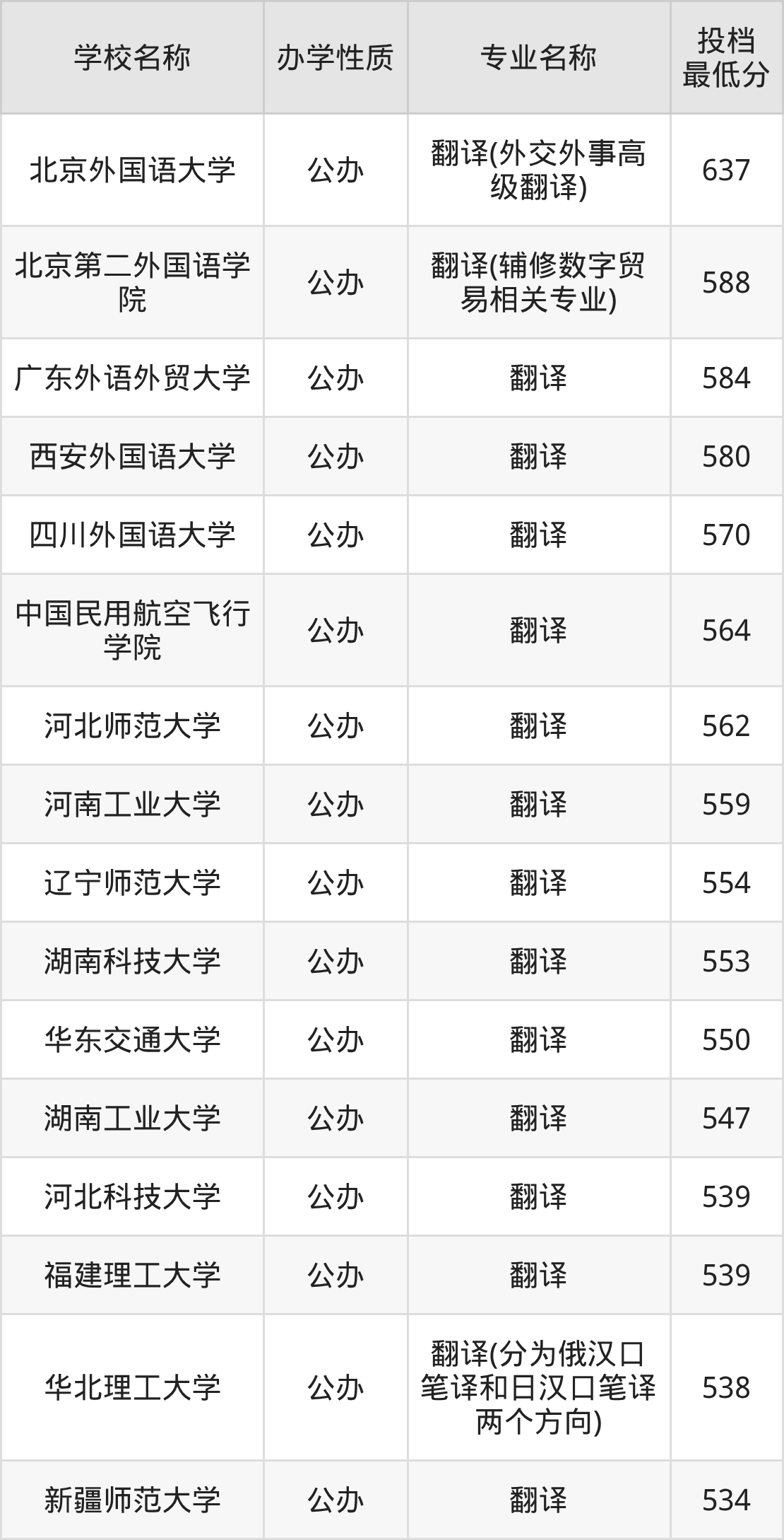 下面是2025年全国所有大学翻译专业录取分数线一览表(按照分数线从高到低排名):