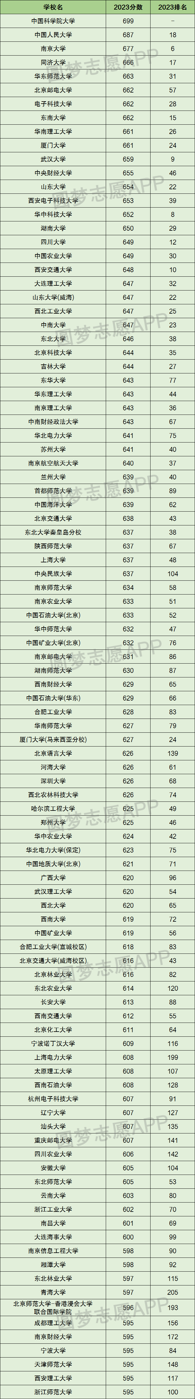 | 学校名 | 2023分数 | 2023排名 |