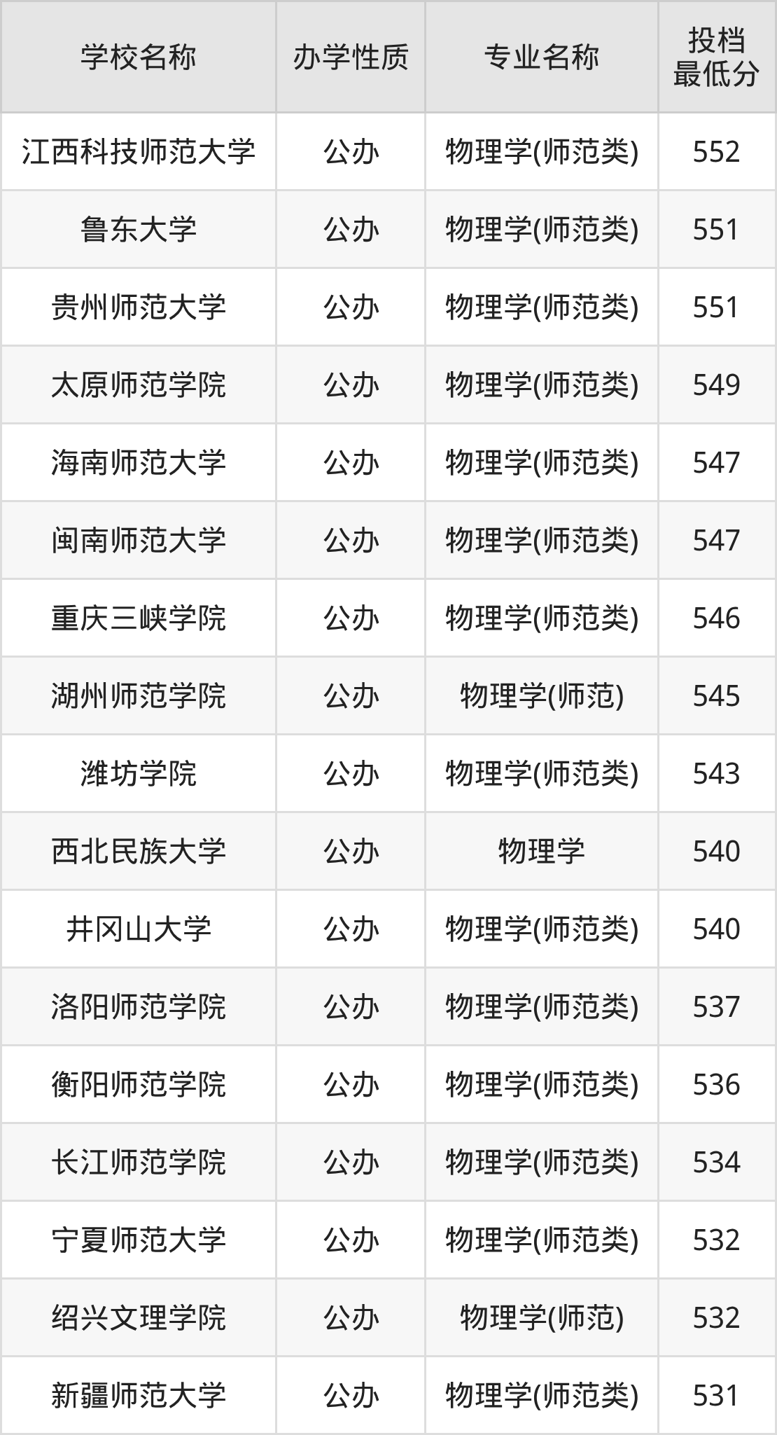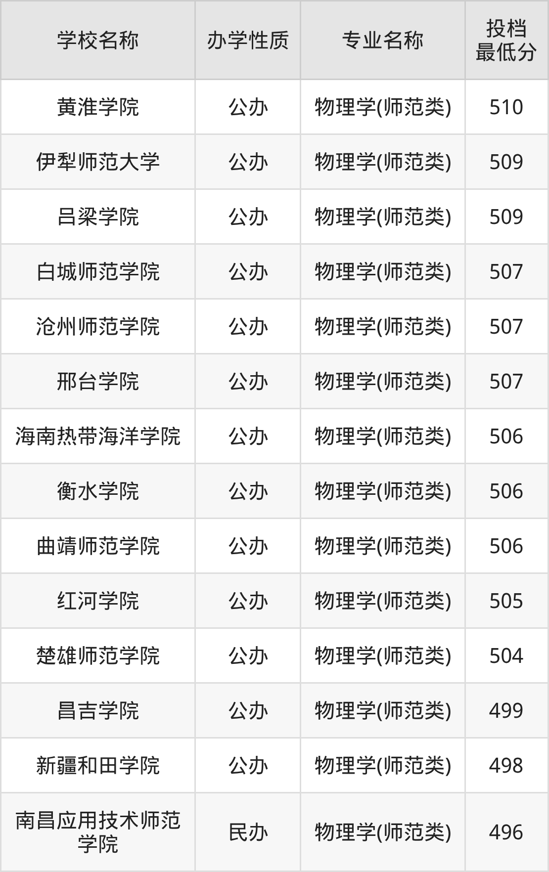 一般来说,物理学都需要500分以上才能被录取,当然分数线因省份、科类而不同。从河北省2025年的招录数据来看,2025年物理学专业最低分是496分,而河北省本科线是459分,意味着考生至少需超过本科线37分才能上。