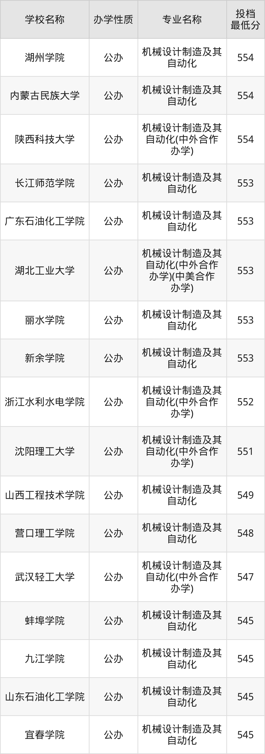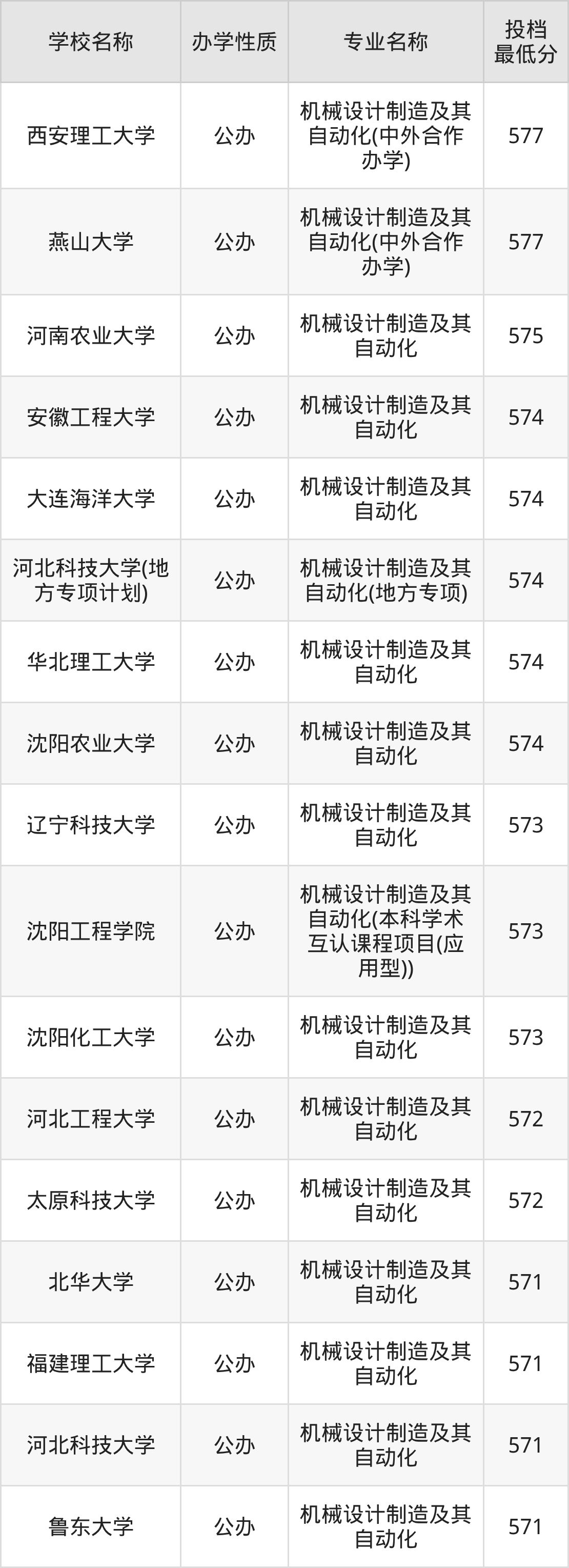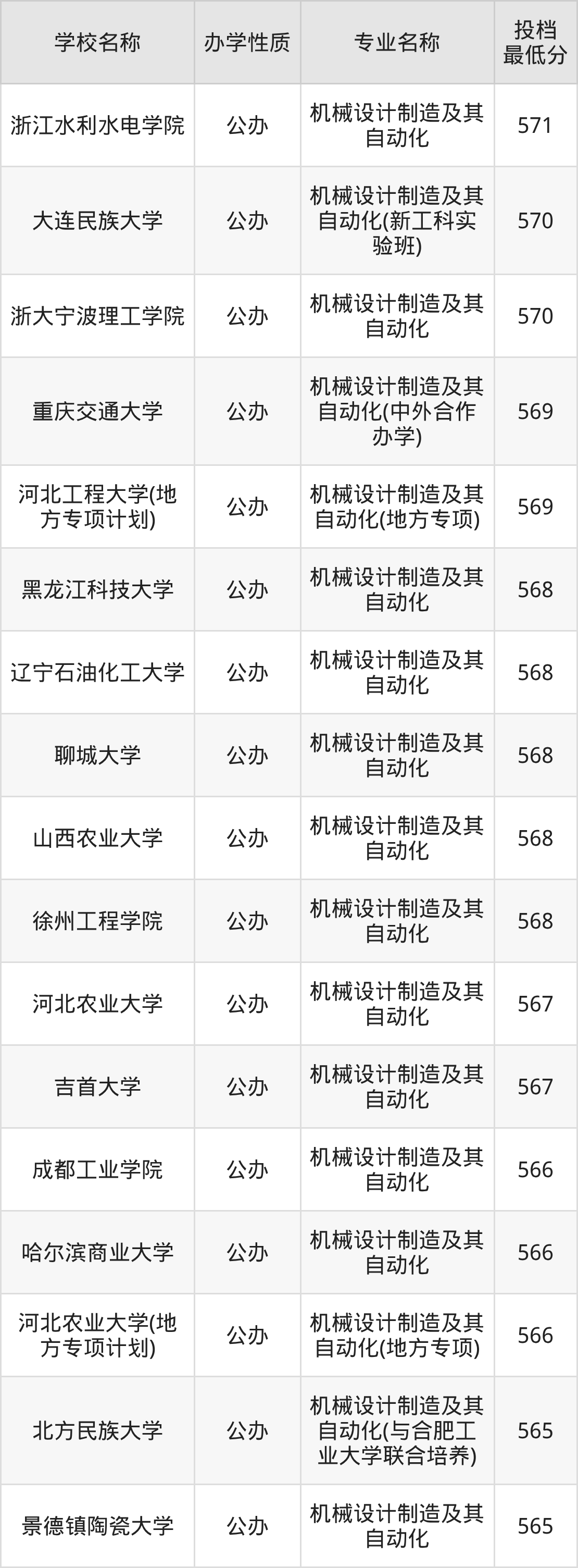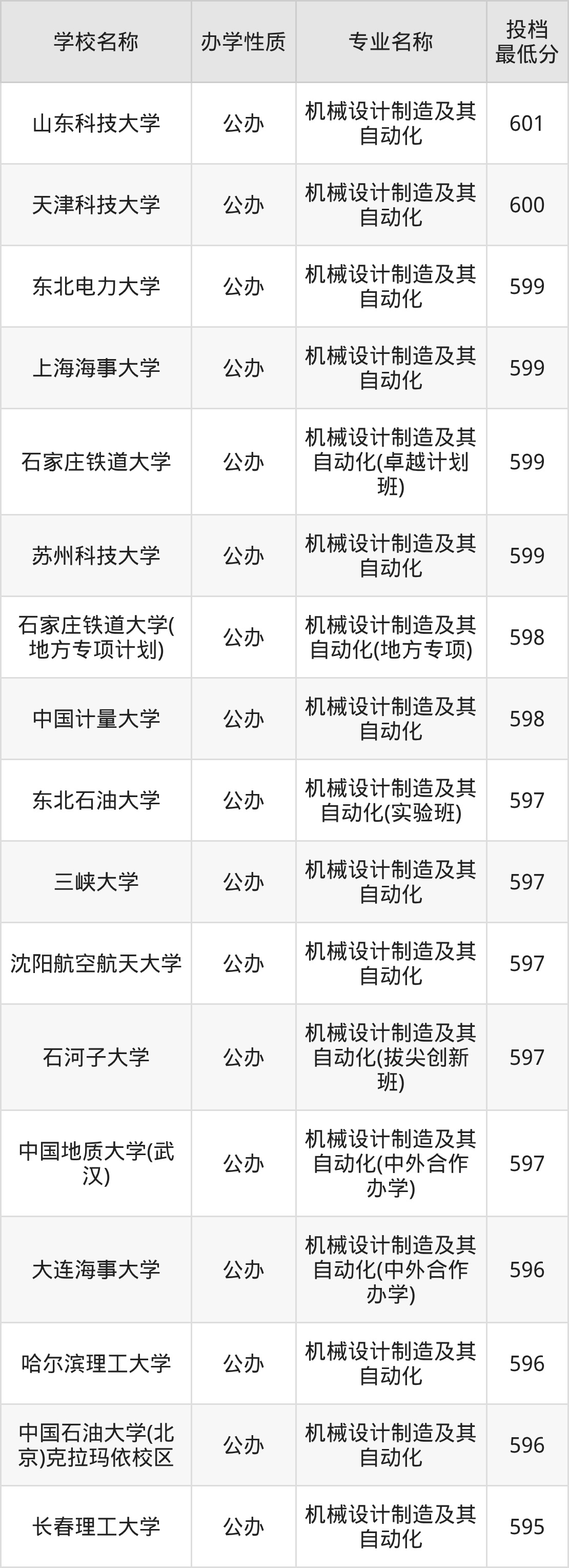 一、2025机械设计制造及其自动化专业录取分数线多少