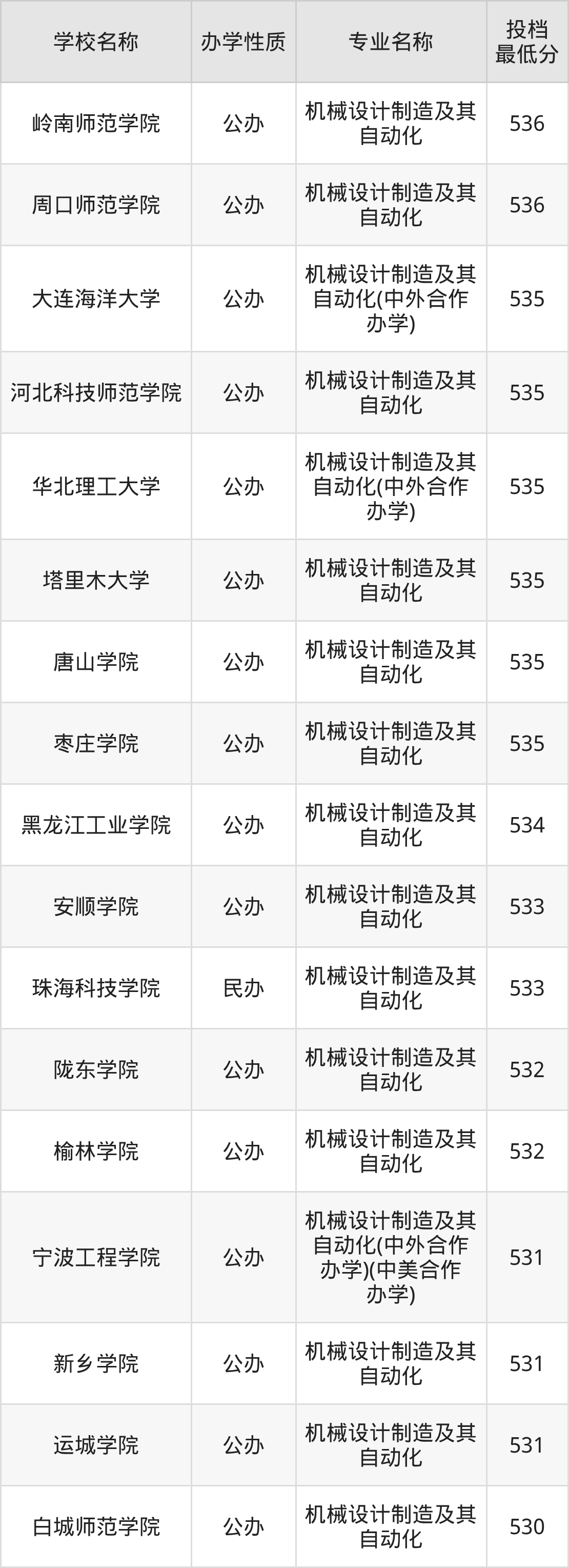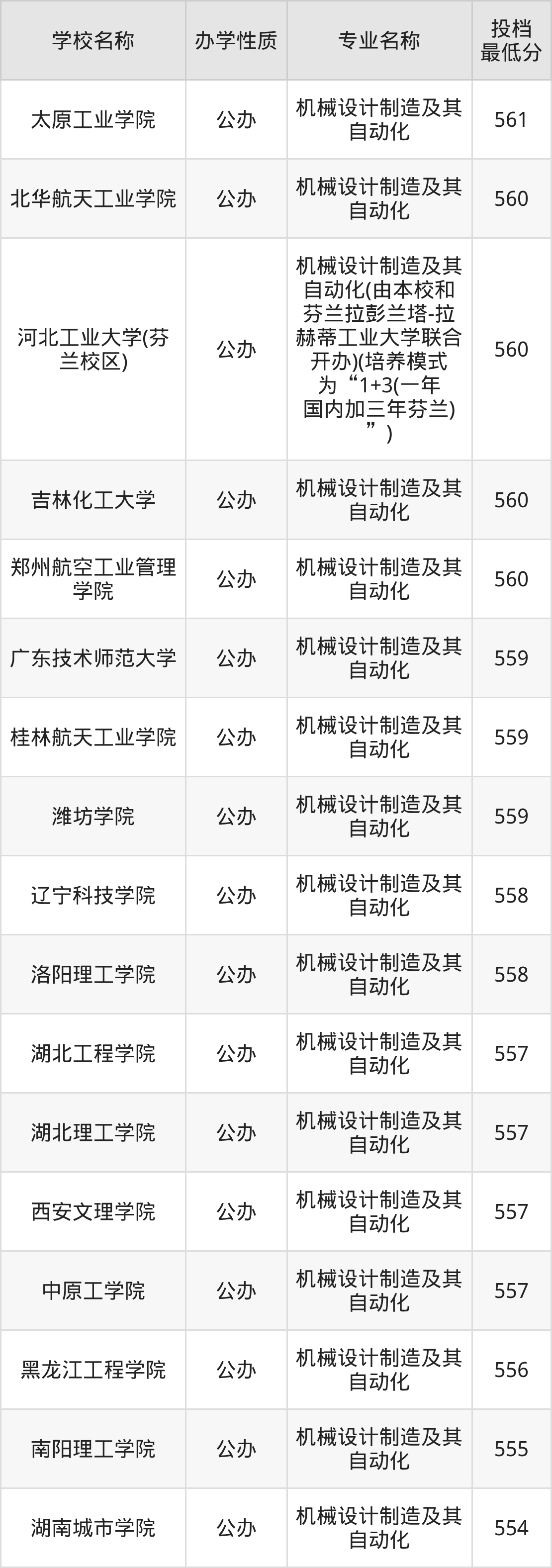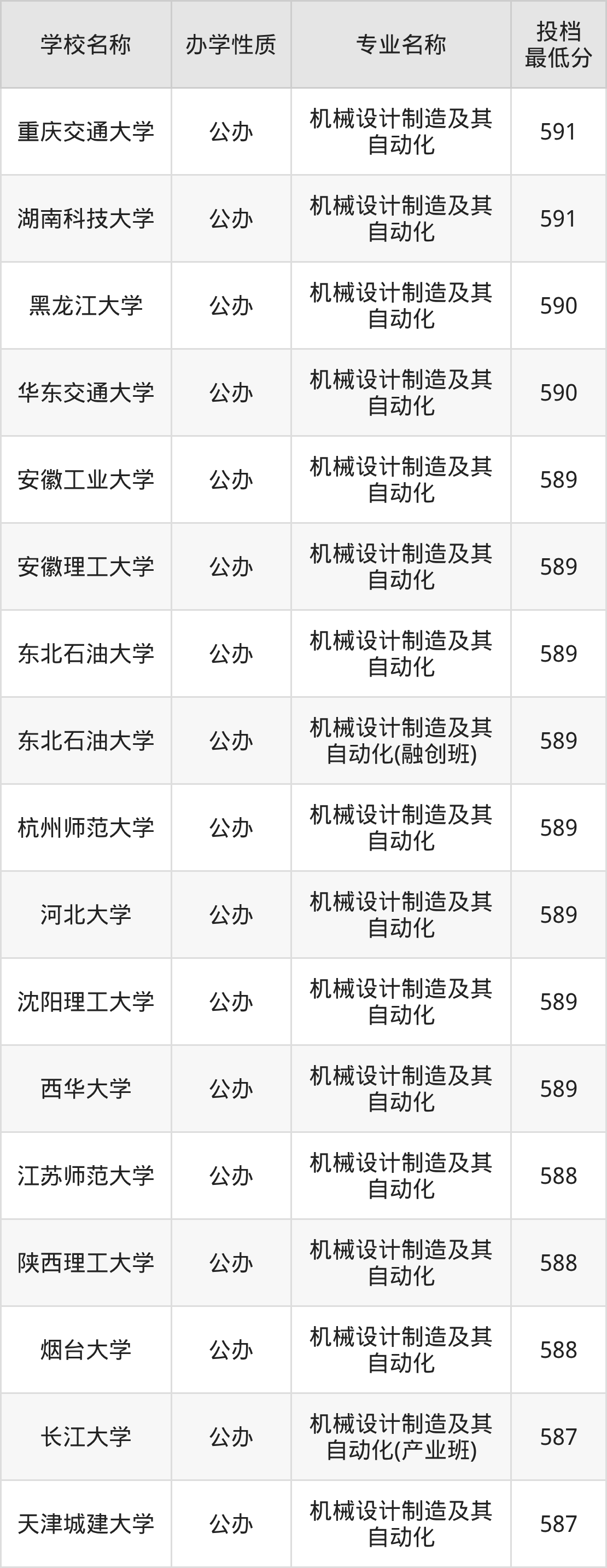 一、2025机械设计制造及其自动化专业录取分数线多少