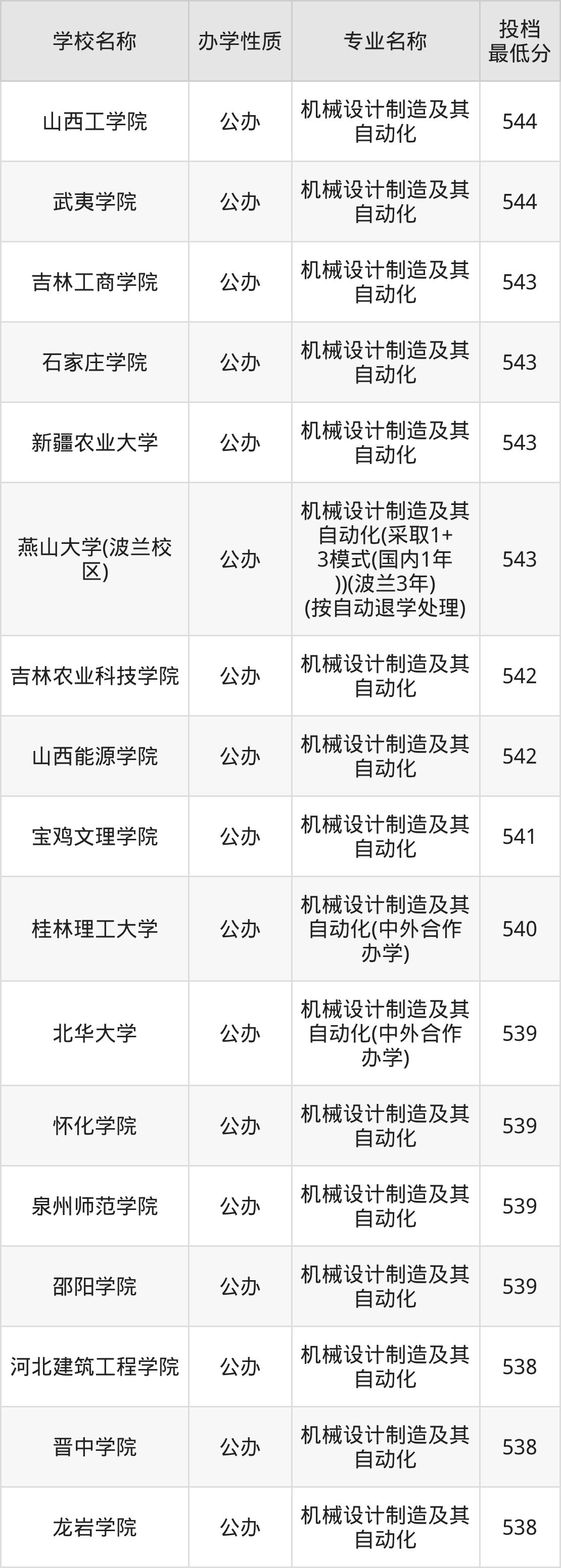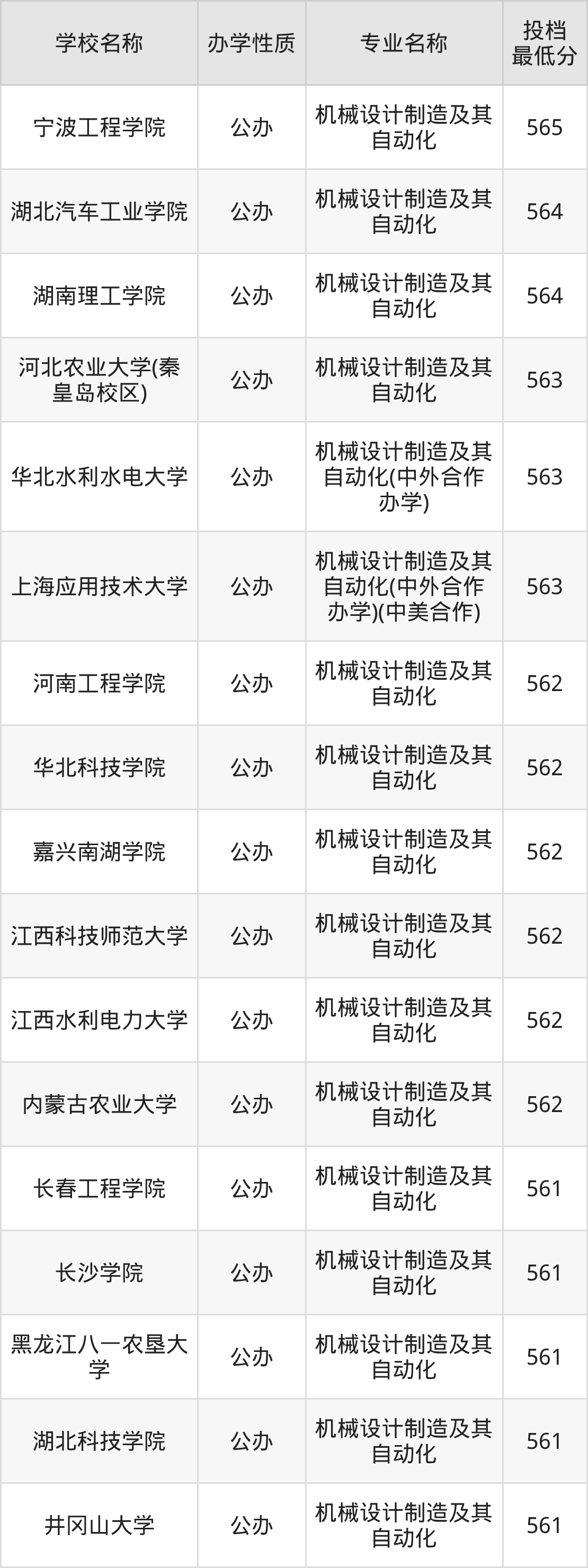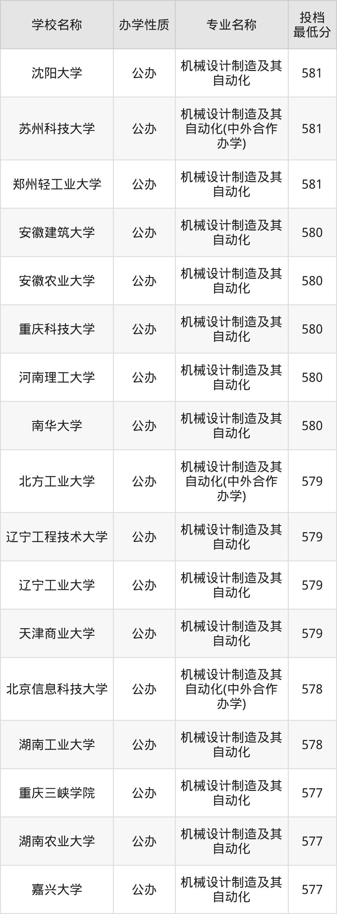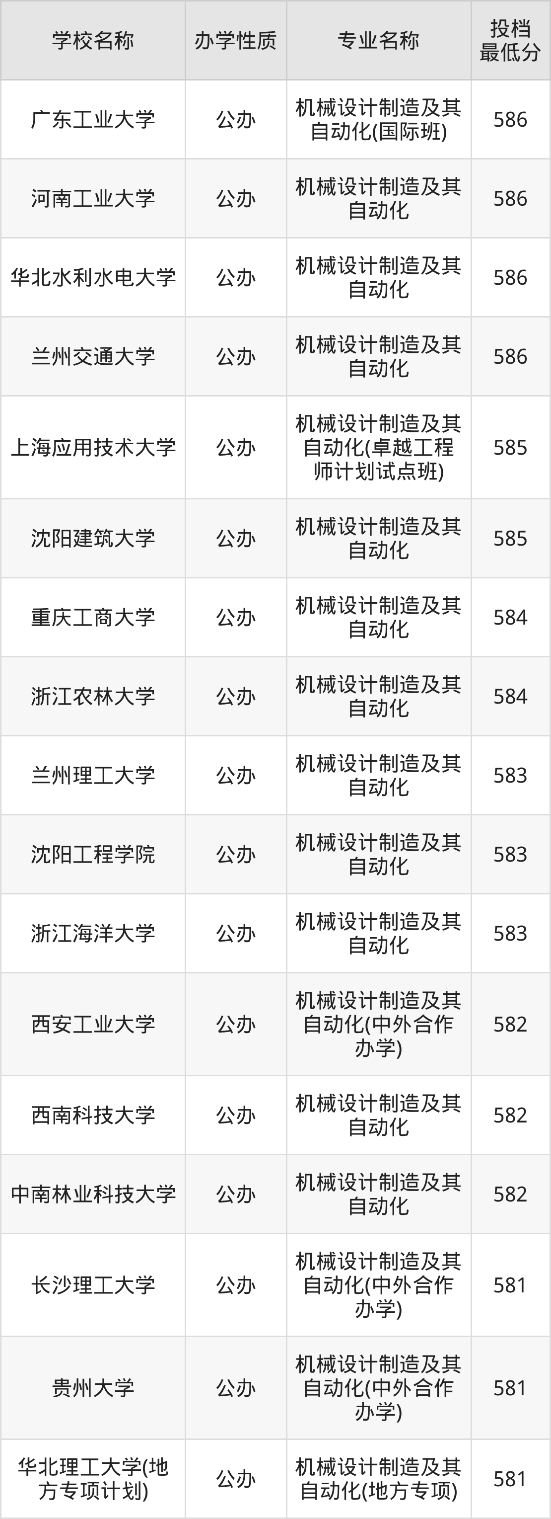一、2025机械设计制造及其自动化专业录取分数线多少