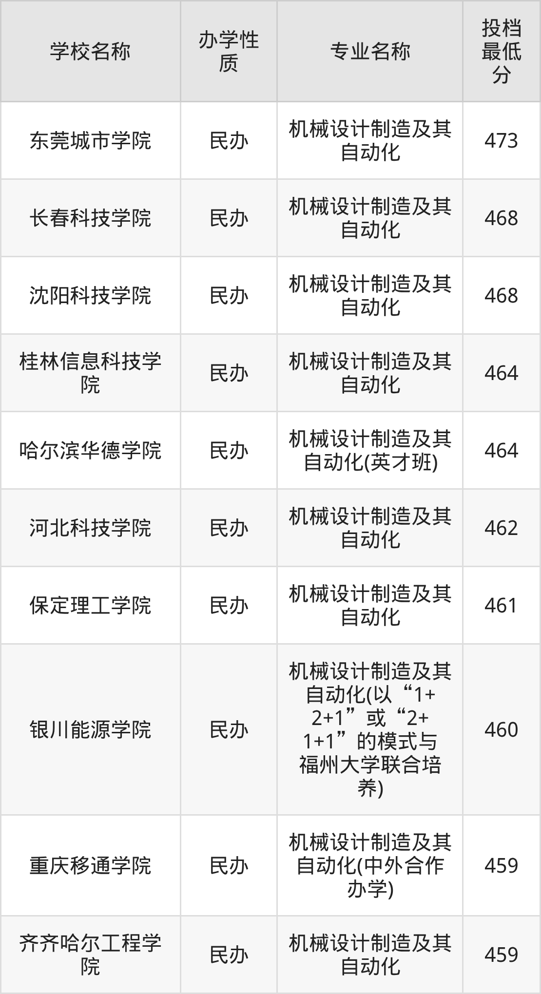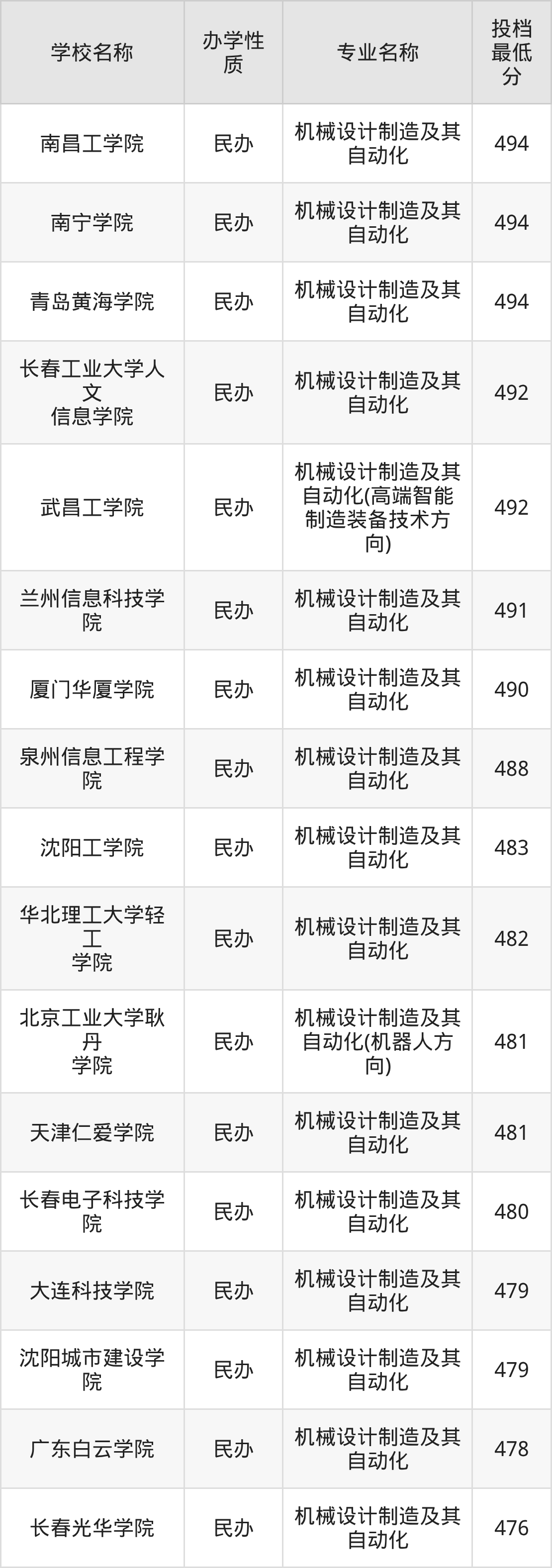 2025年机械设计制造及其自动化专业最低录取分数线是459分,刚好在本科分数线(459分)处。也就是说想报考机械设计制造及其自动化专业的同学,至少得达到本科线459分及以上。机械设计制造及其自动化专业最低分的大学是齐齐哈尔工程学院,不过该校属于民办。