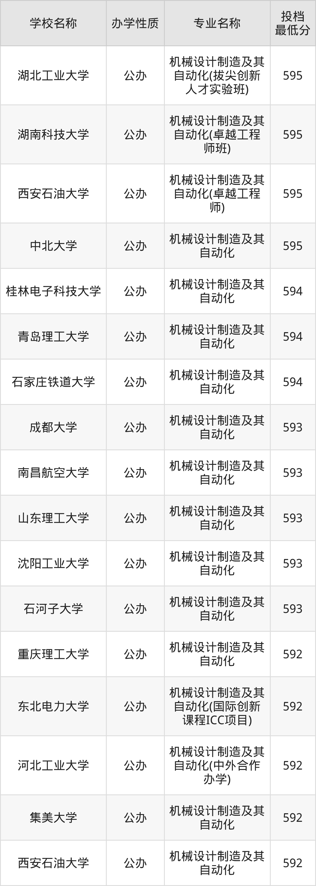 下面是2025年全国所有大学机械设计制造及其自动化专业录取分数线一览表(按照分数线从高到低排名):