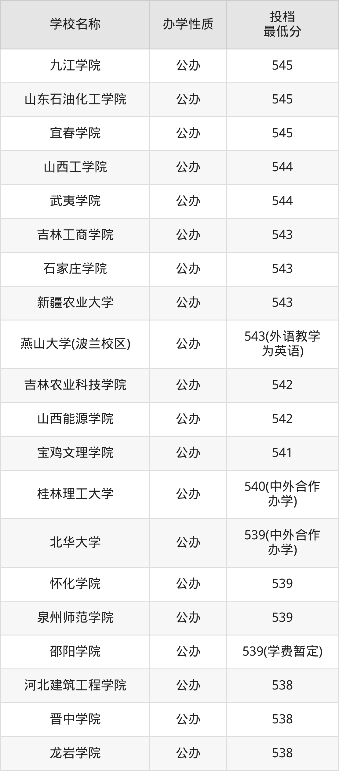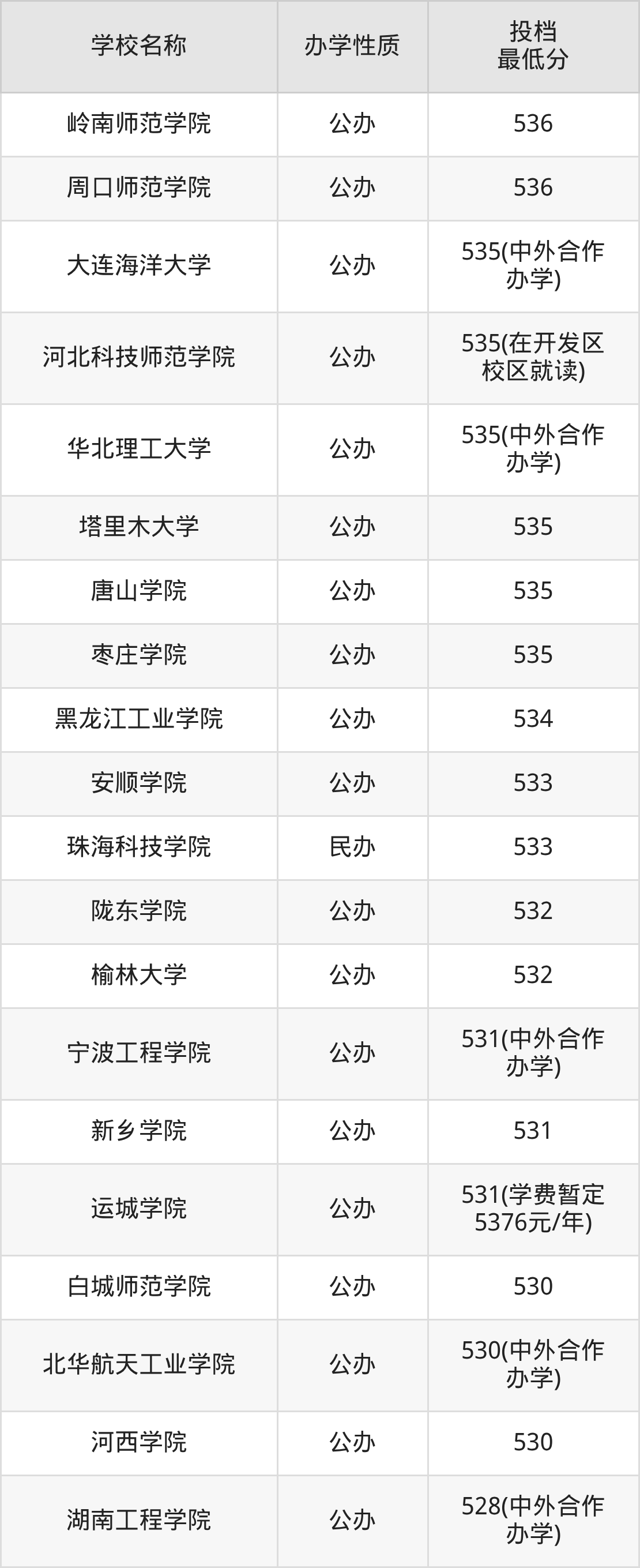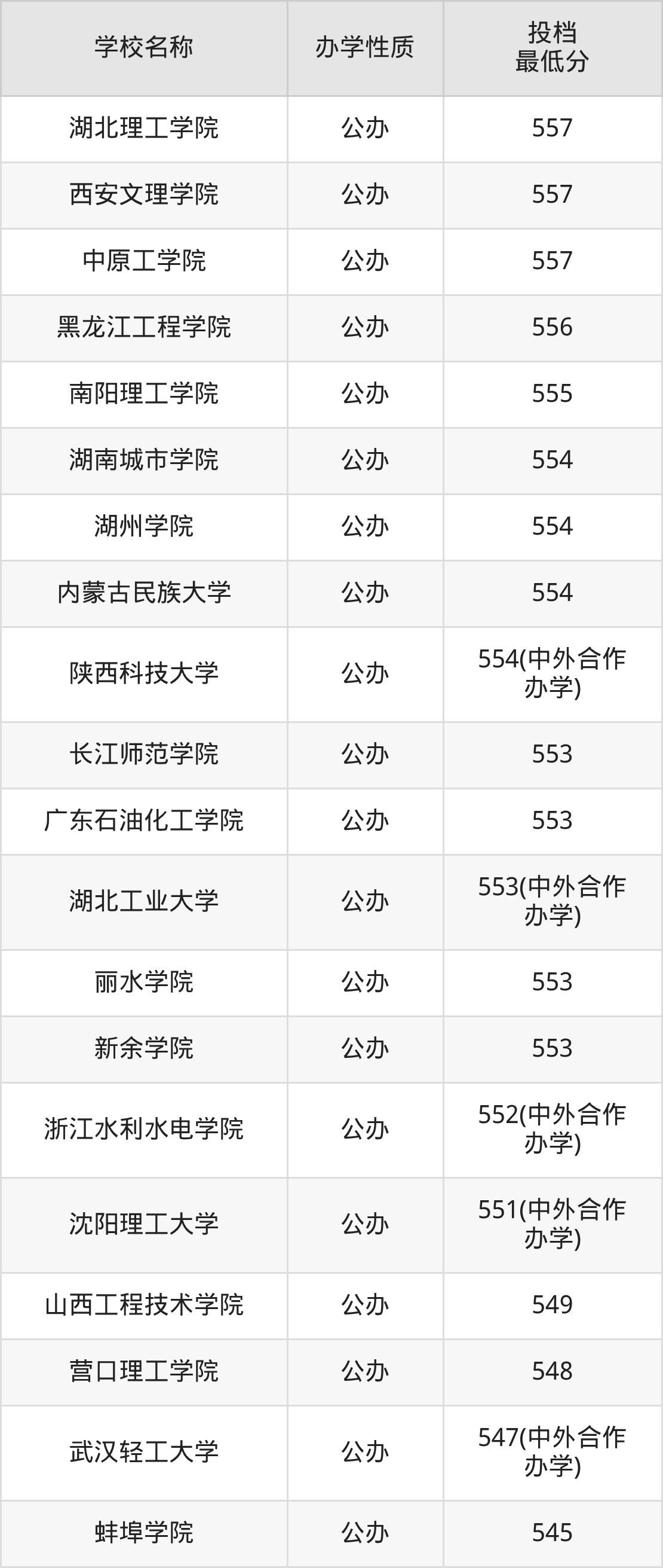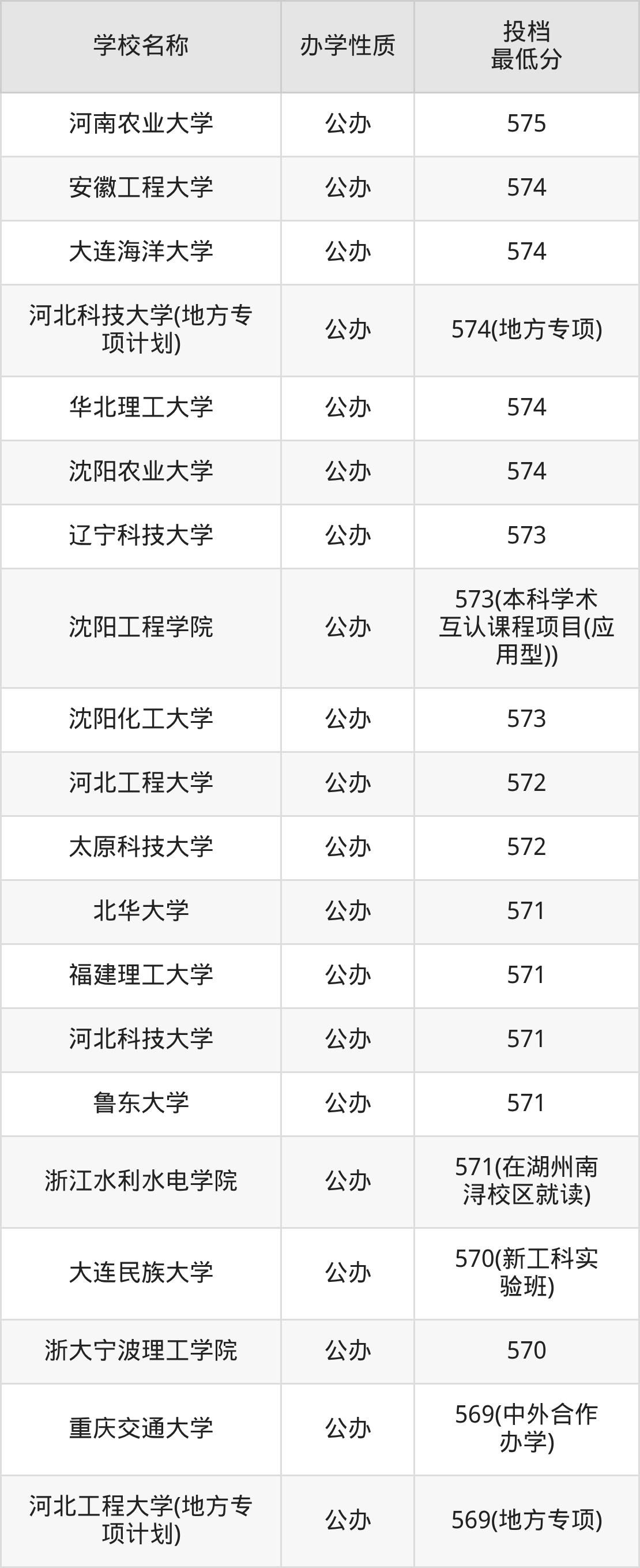 500分左右的机械设计制造及其自动化大学:郑州升达经贸管理学院500分、吉林农业科技学院501分(中外合作办学)、武汉纺织大学外经贸学院501分、武汉生物工程学院501分、吉林工程技术师范学院502分(中外合作办学)等;