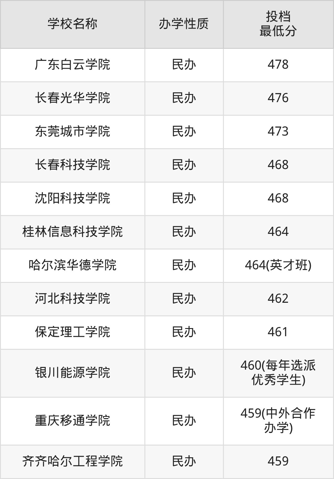 2025年机械设计制造及其自动化专业最低录取分数线是459分,超本科分数线(426分)33分。也就是说想报考机械设计制造及其自动化专业的同学,至少得超过本科线33分及以上。机械设计制造及其自动化专业最低分的大学是齐齐哈尔工程学院,不过该校属于民办。