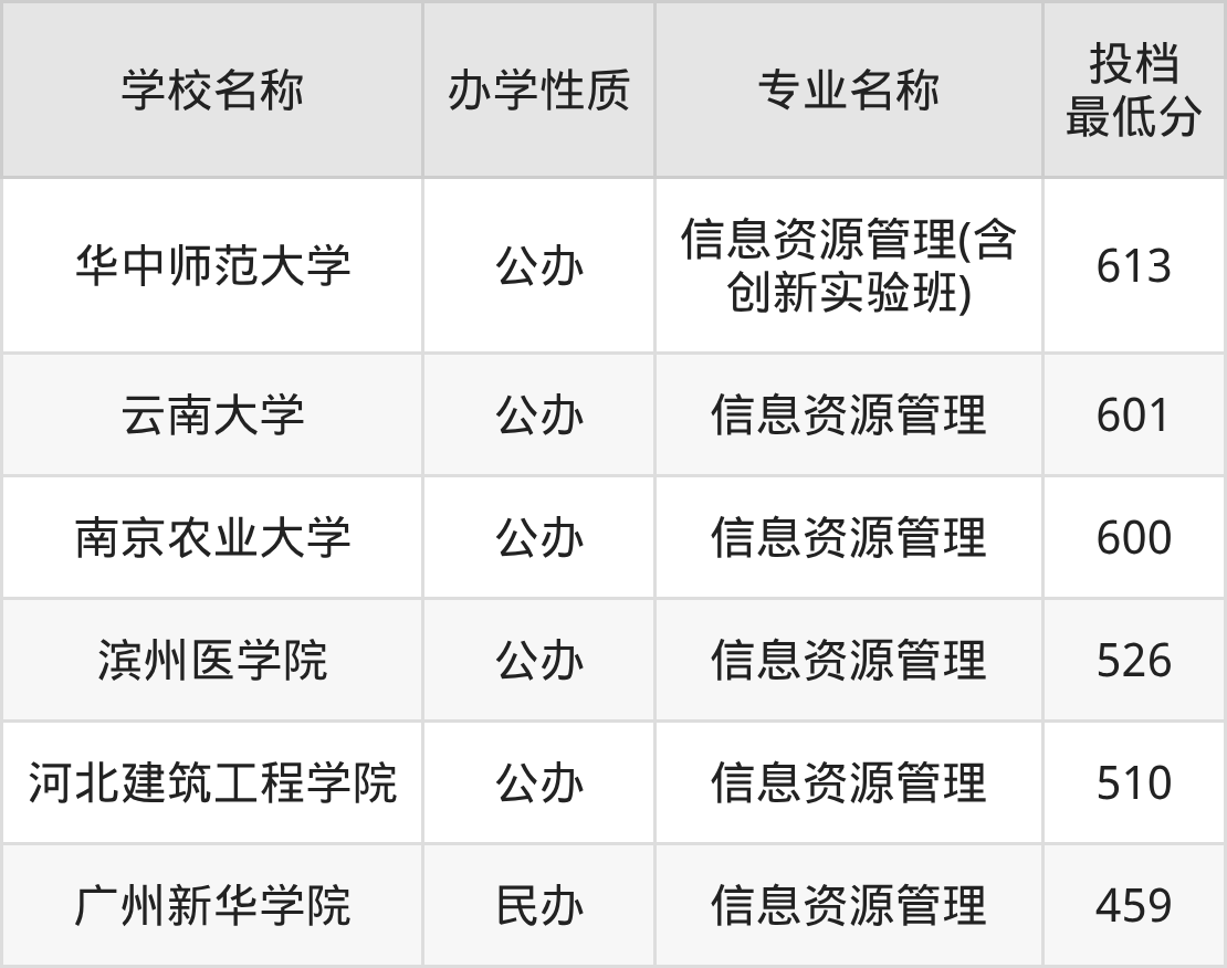 一、2025信息资源管理专业录取分数线多少