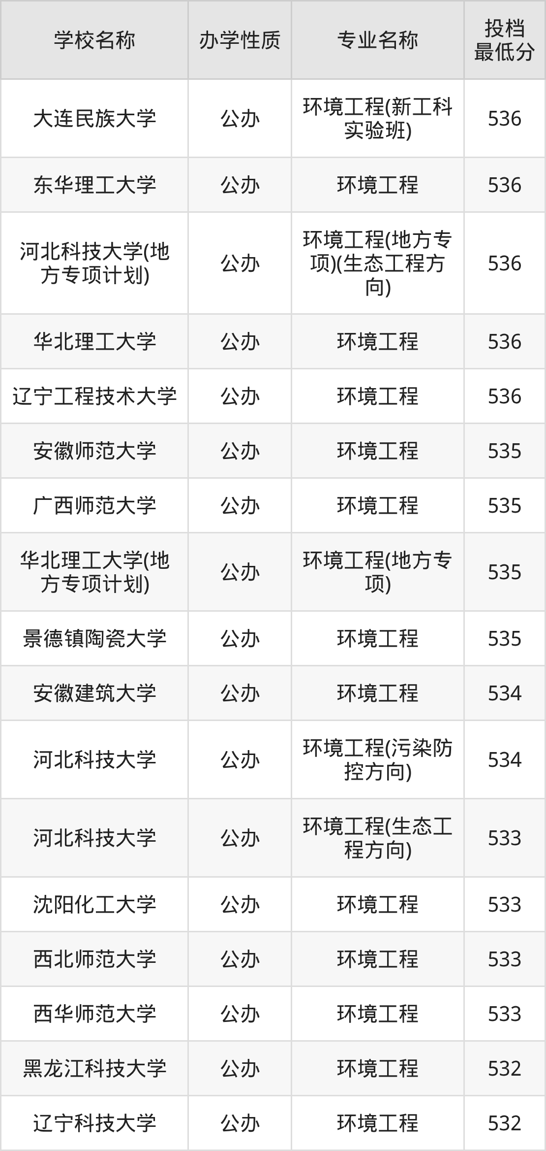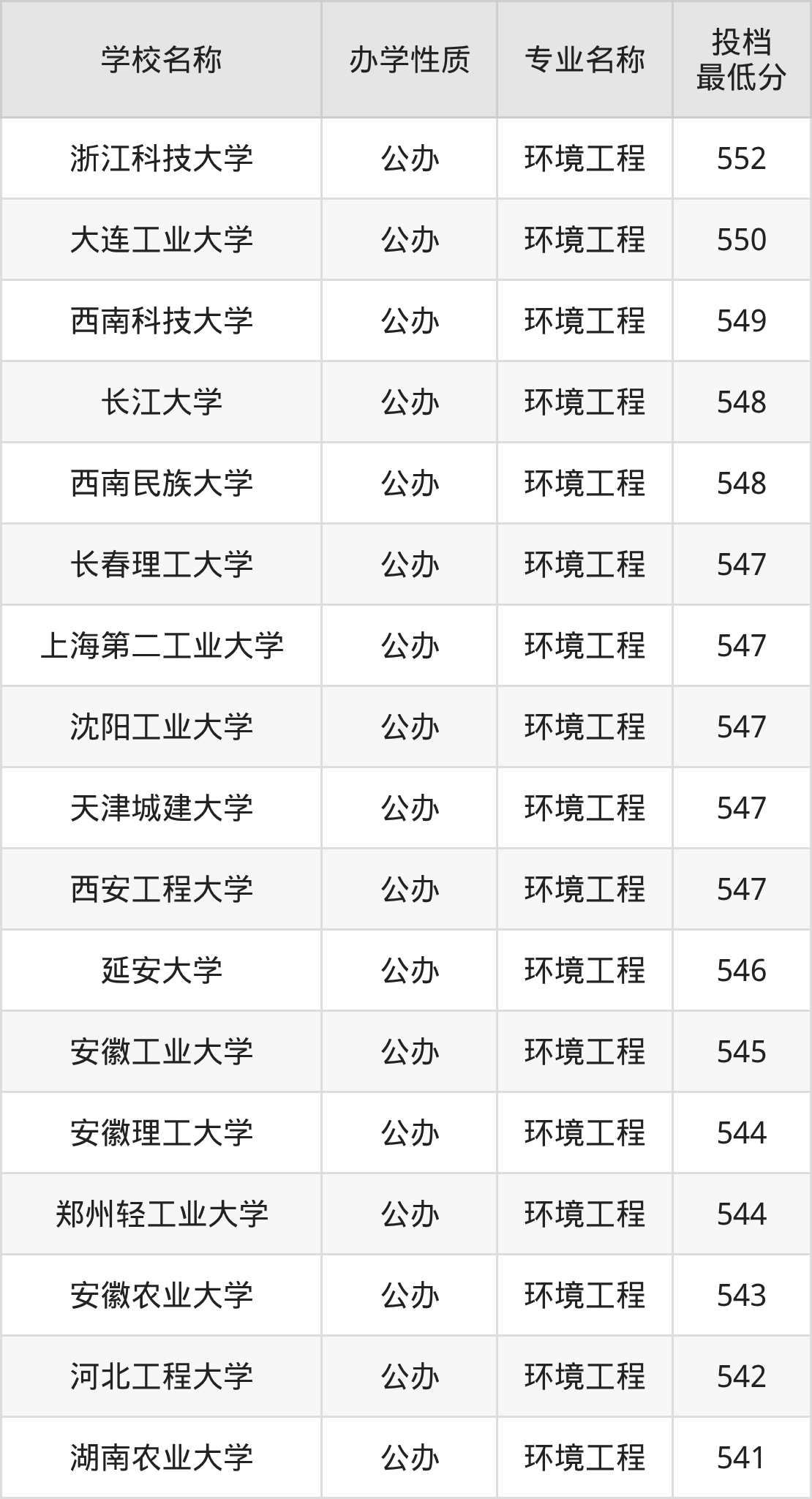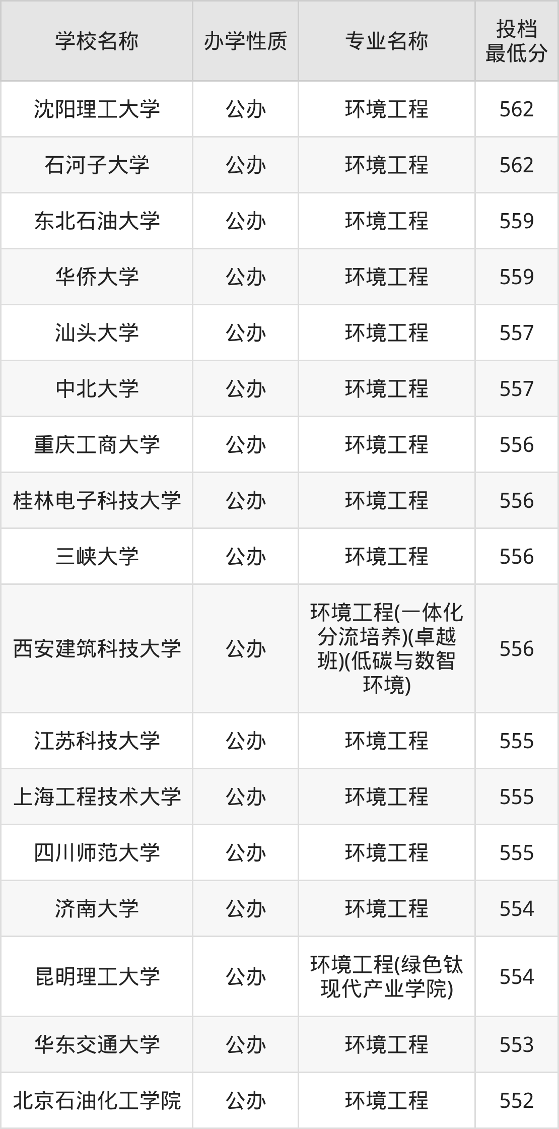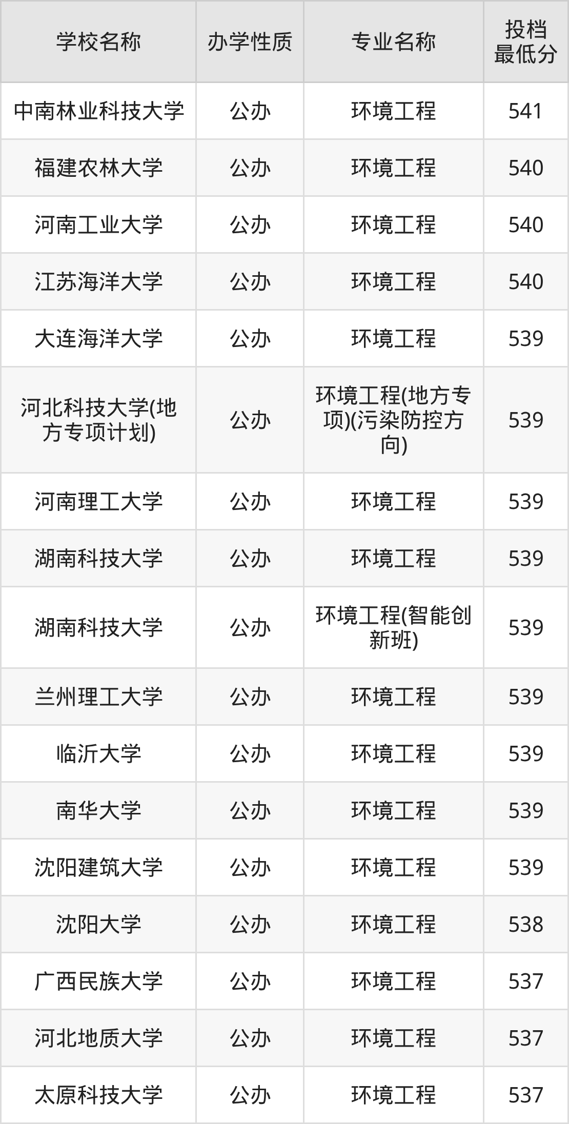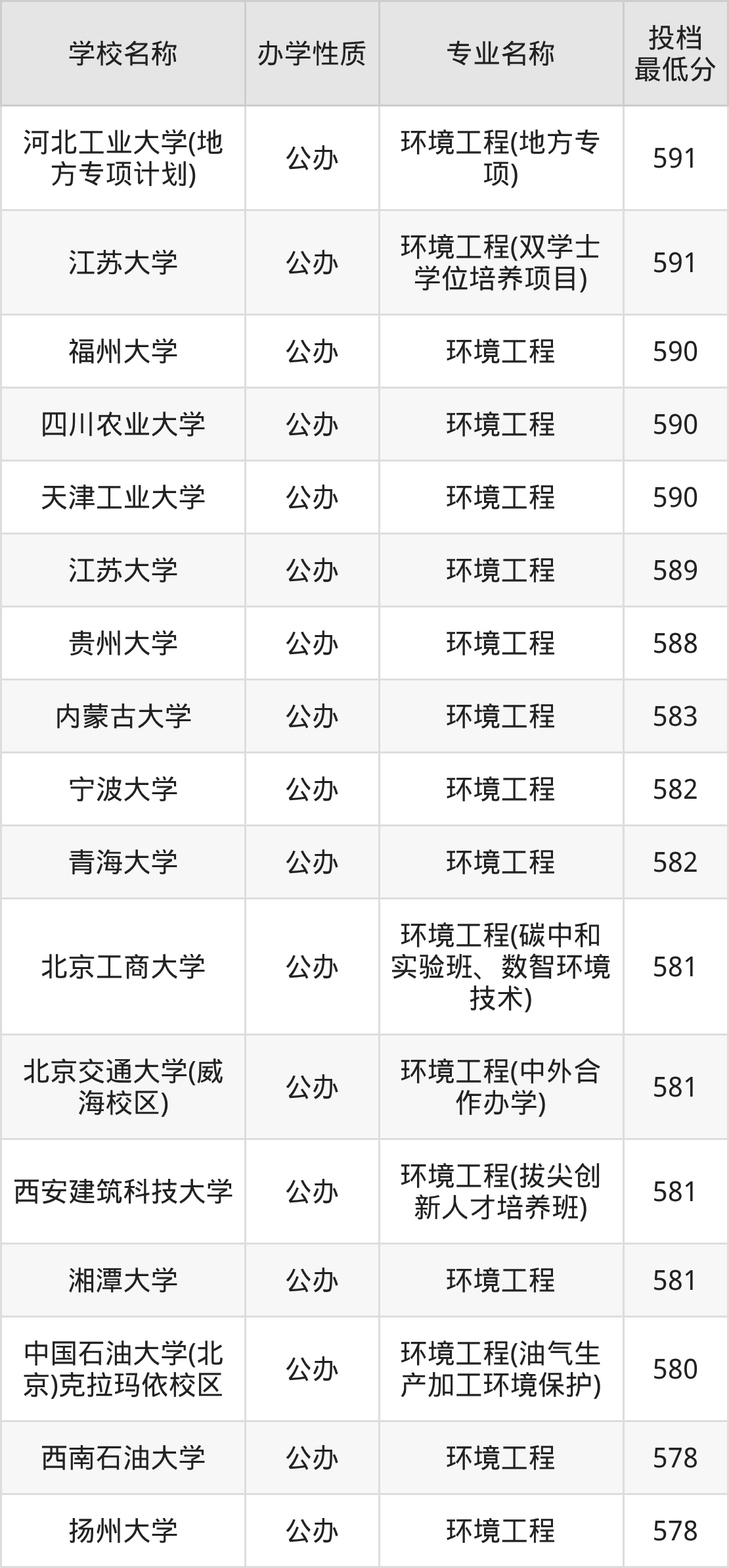 一、2025环境工程专业录取分数线多少