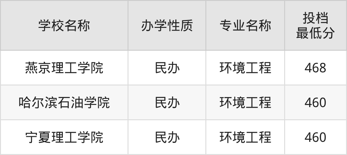 2025年环境工程专业最低录取分数线是460分,超本科分数线(459分)1分。也就是说想报考环境工程专业的同学,至少得超过本科线1分及以上。环境工程专业最低分的大学是宁夏理工学院,不过该校属于民办。