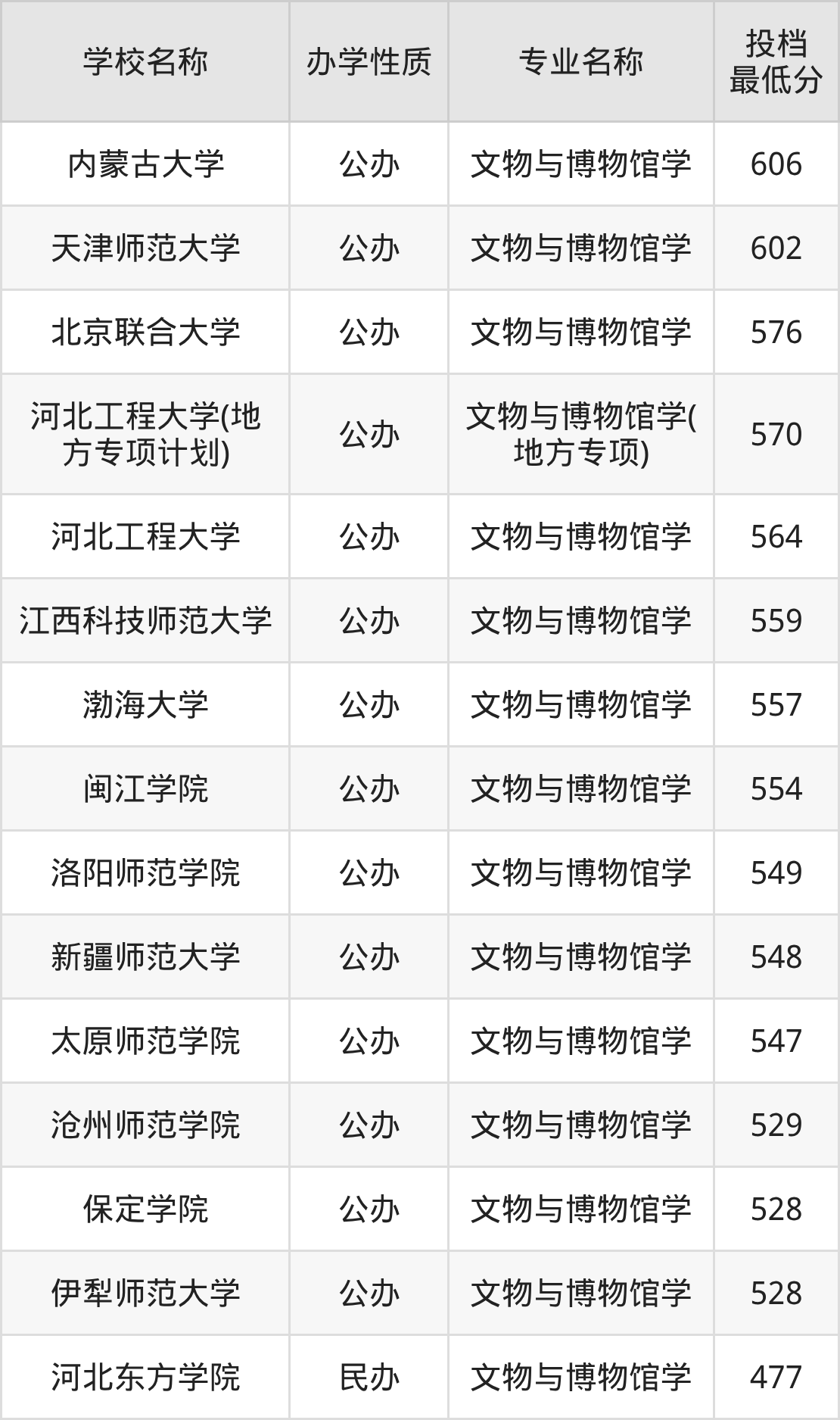 下面是全国各个大学文物与博物馆学专业最低录取分数线排名一览表,考生可根据自己的分数情况选择合适的学校报考。