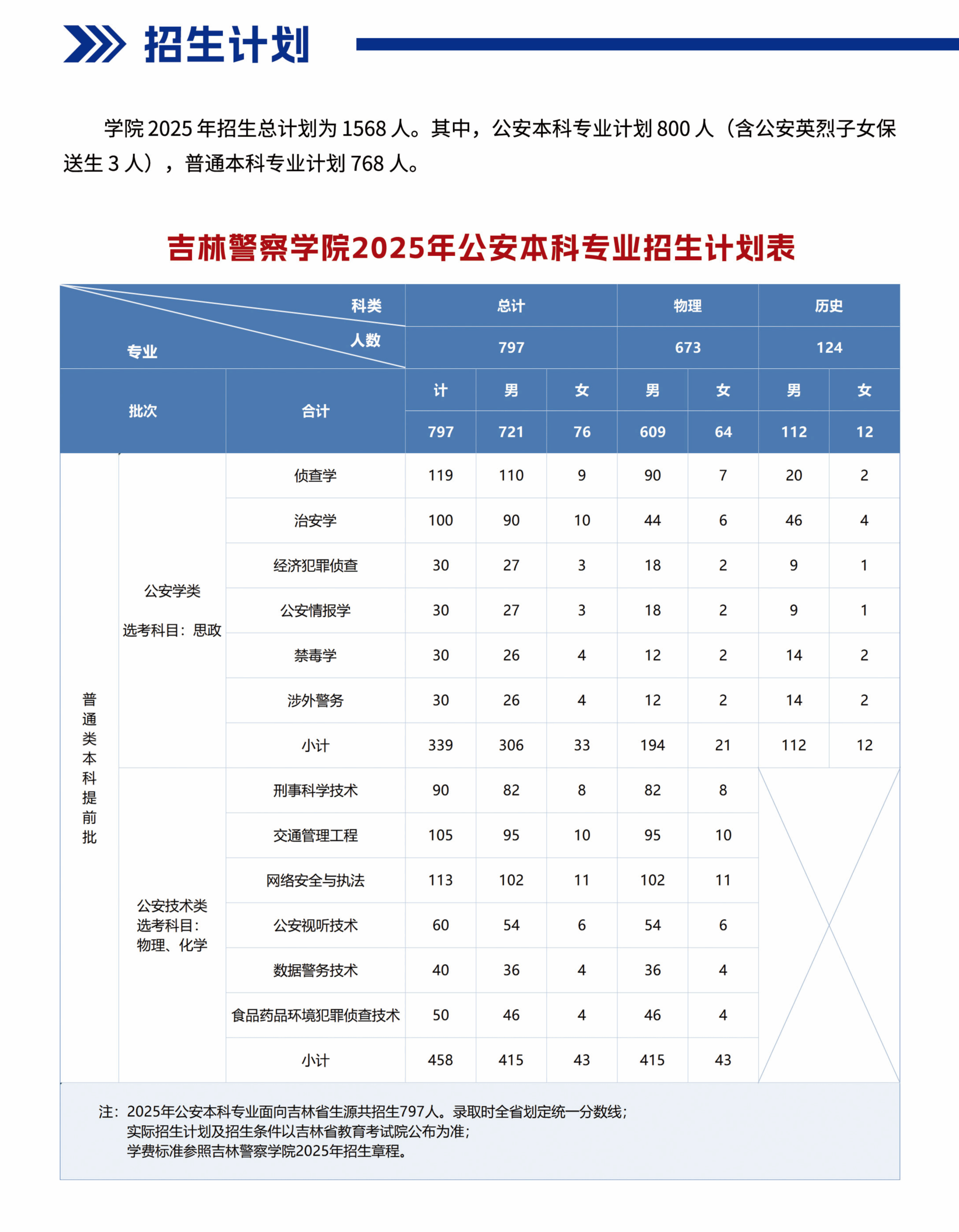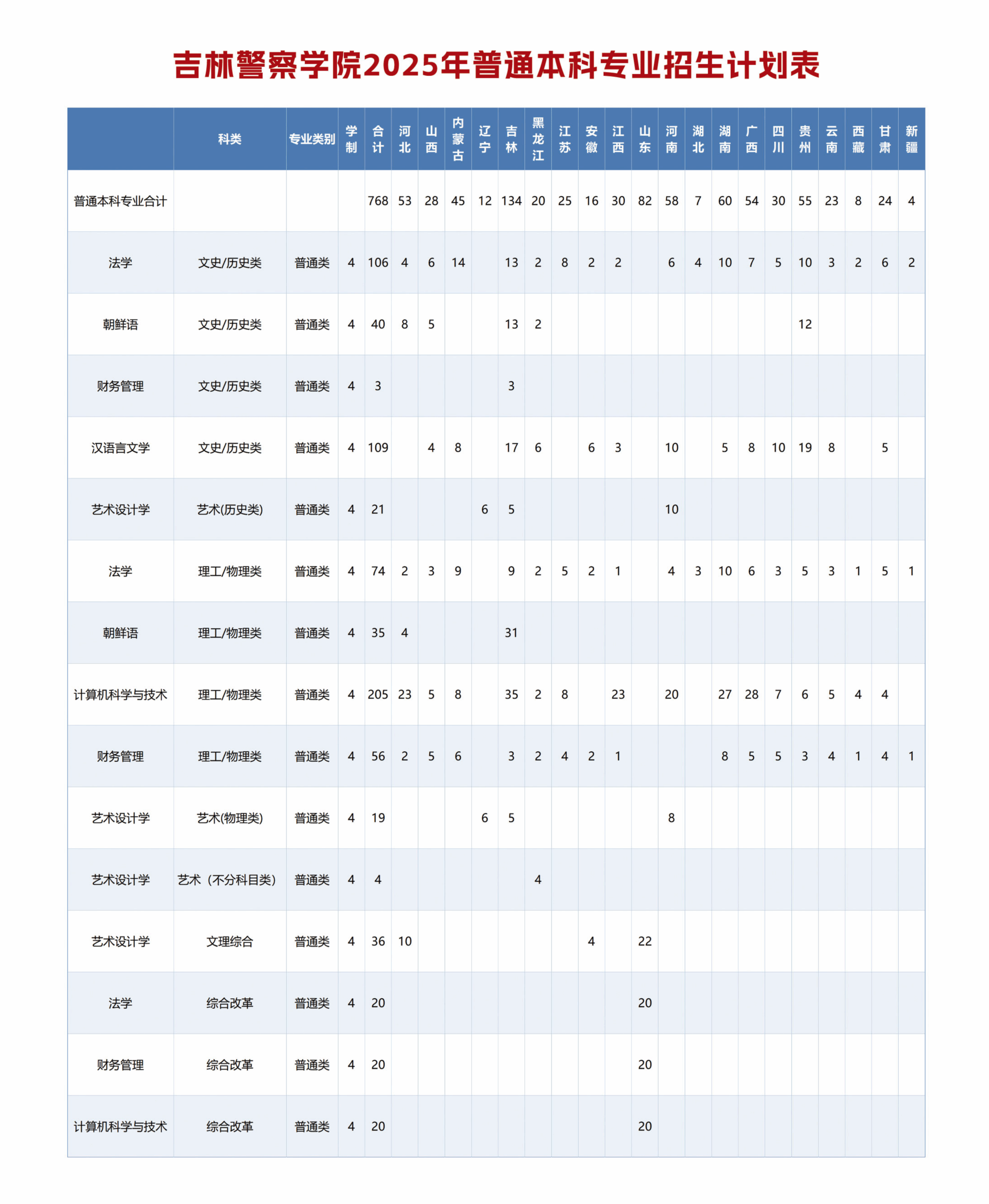 吉林省:公安本科专业800人、普通本科专业768人