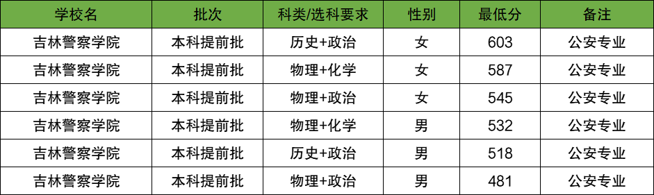 2025年吉林警察学院提前批录取分数线是481分到603分,录取最低为物理类、录取最高为历史类。