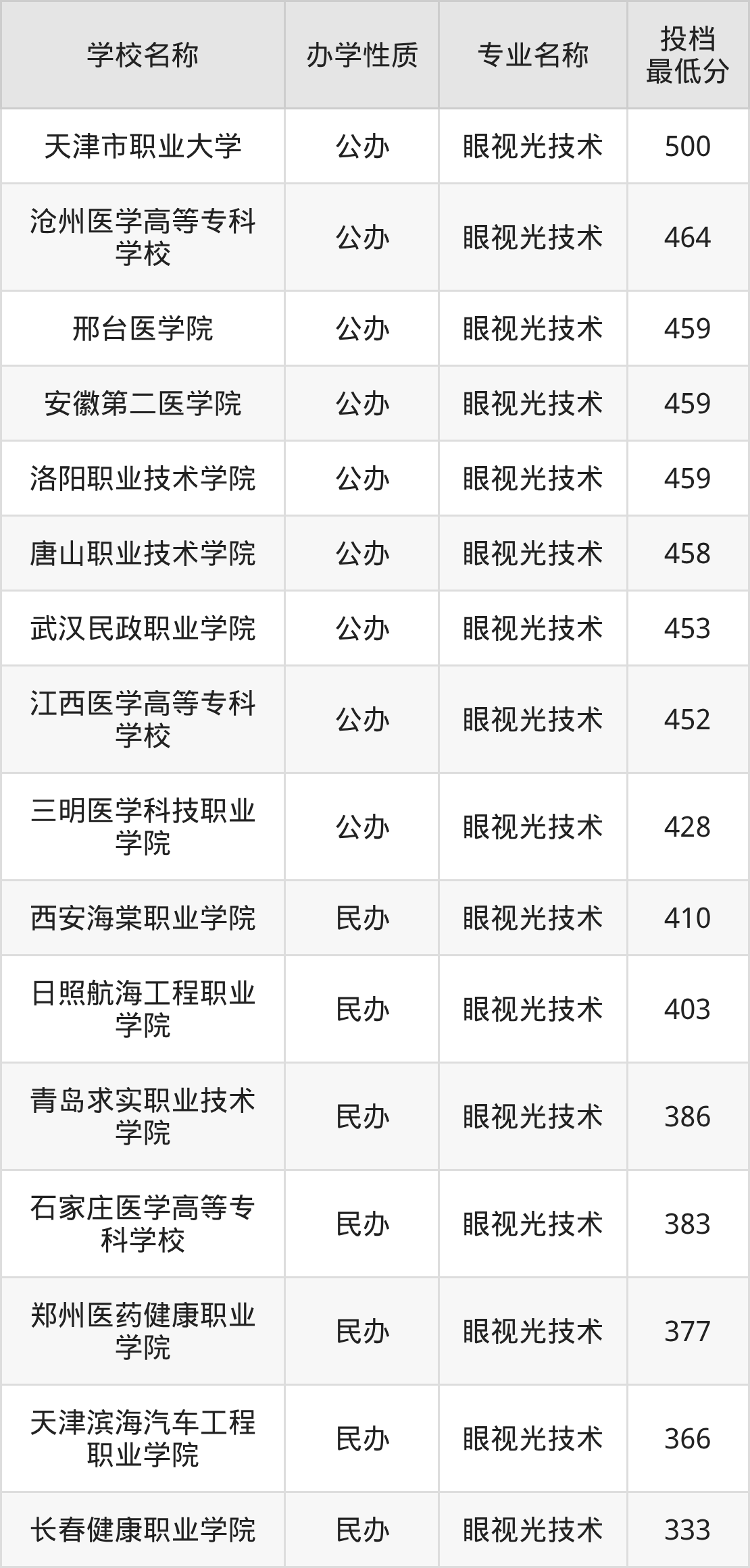 二、全国眼视光技术录取分数线排名表