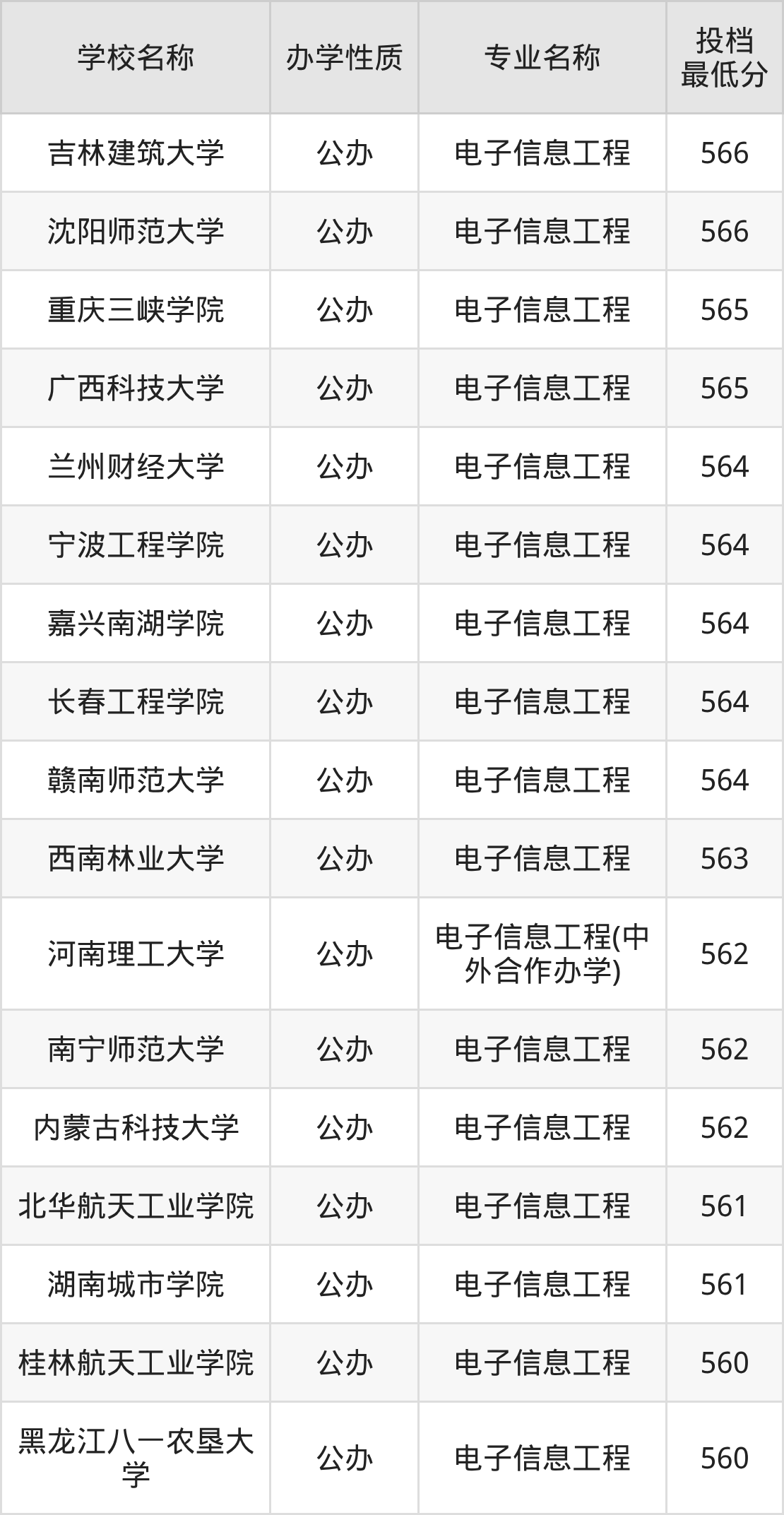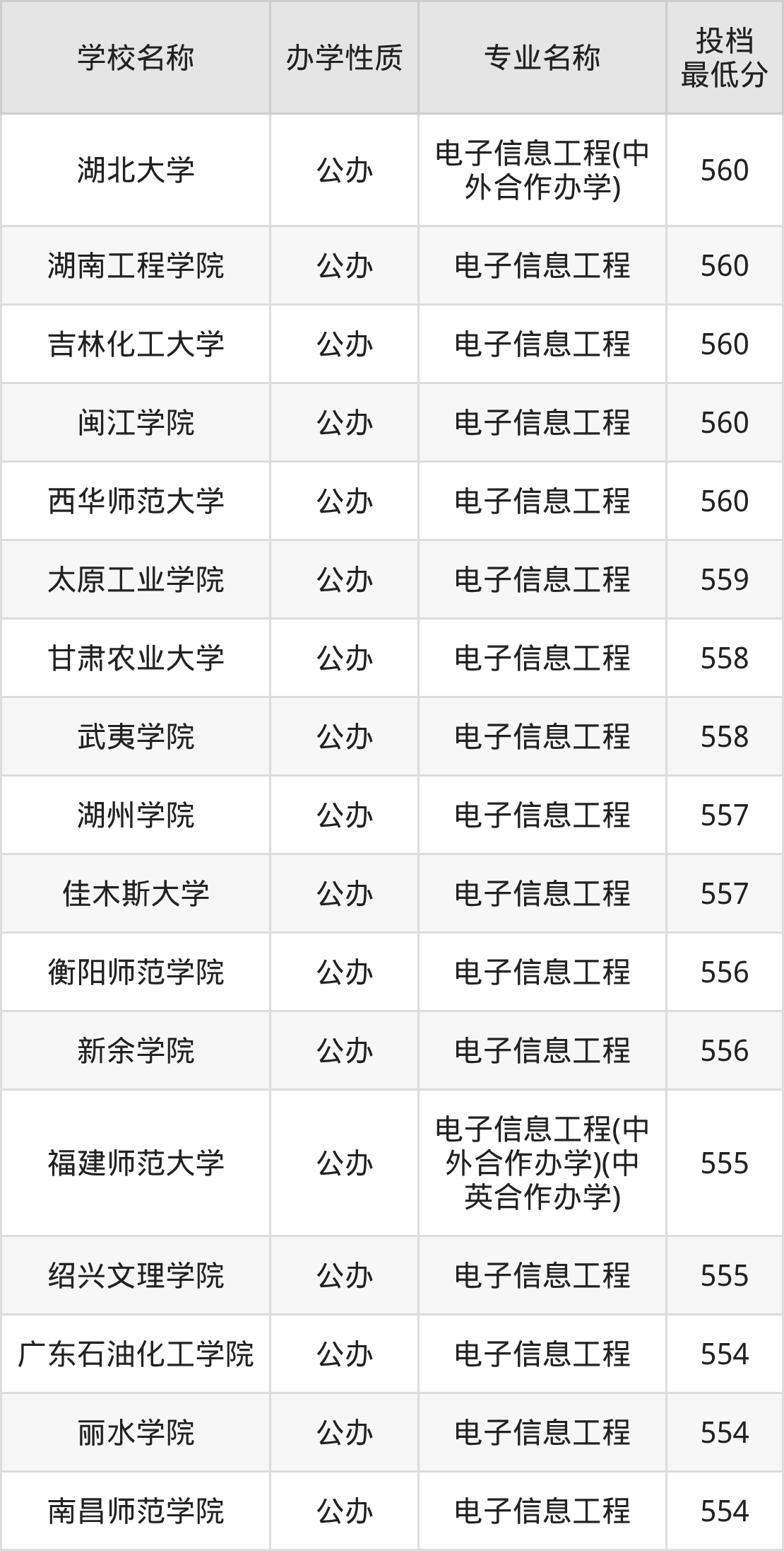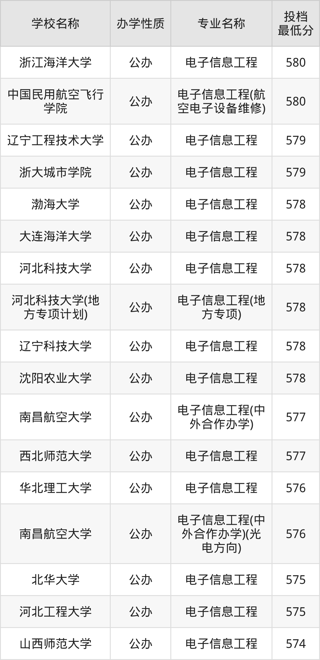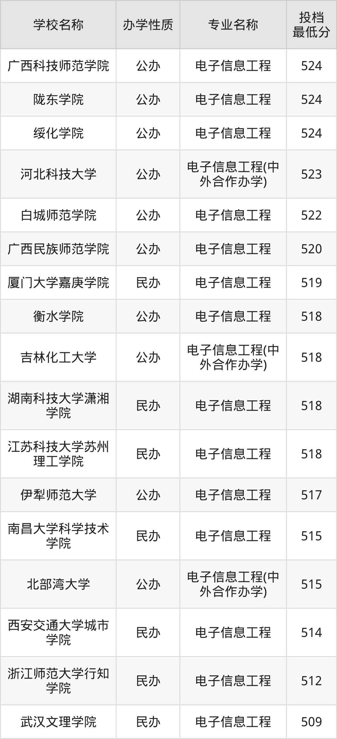 下面是全国各个大学电子信息工程专业最低录取分数线排名一览表,考生可根据自己的分数情况选择合适的学校报考。