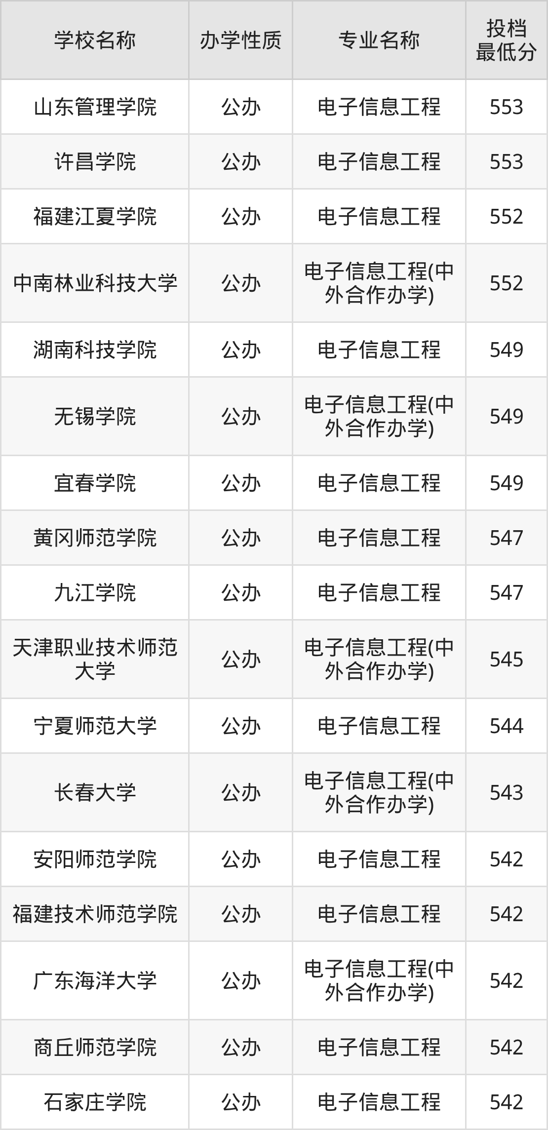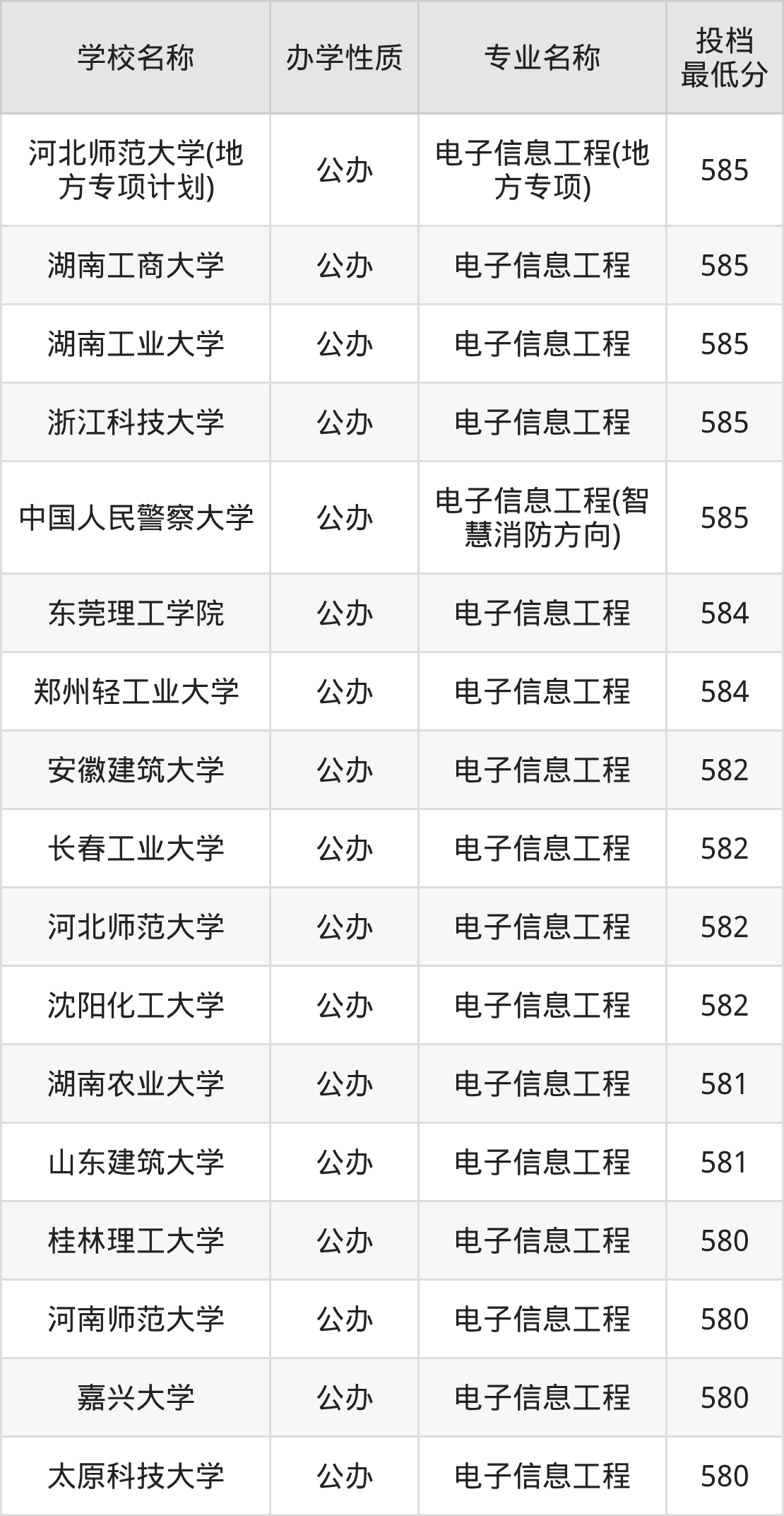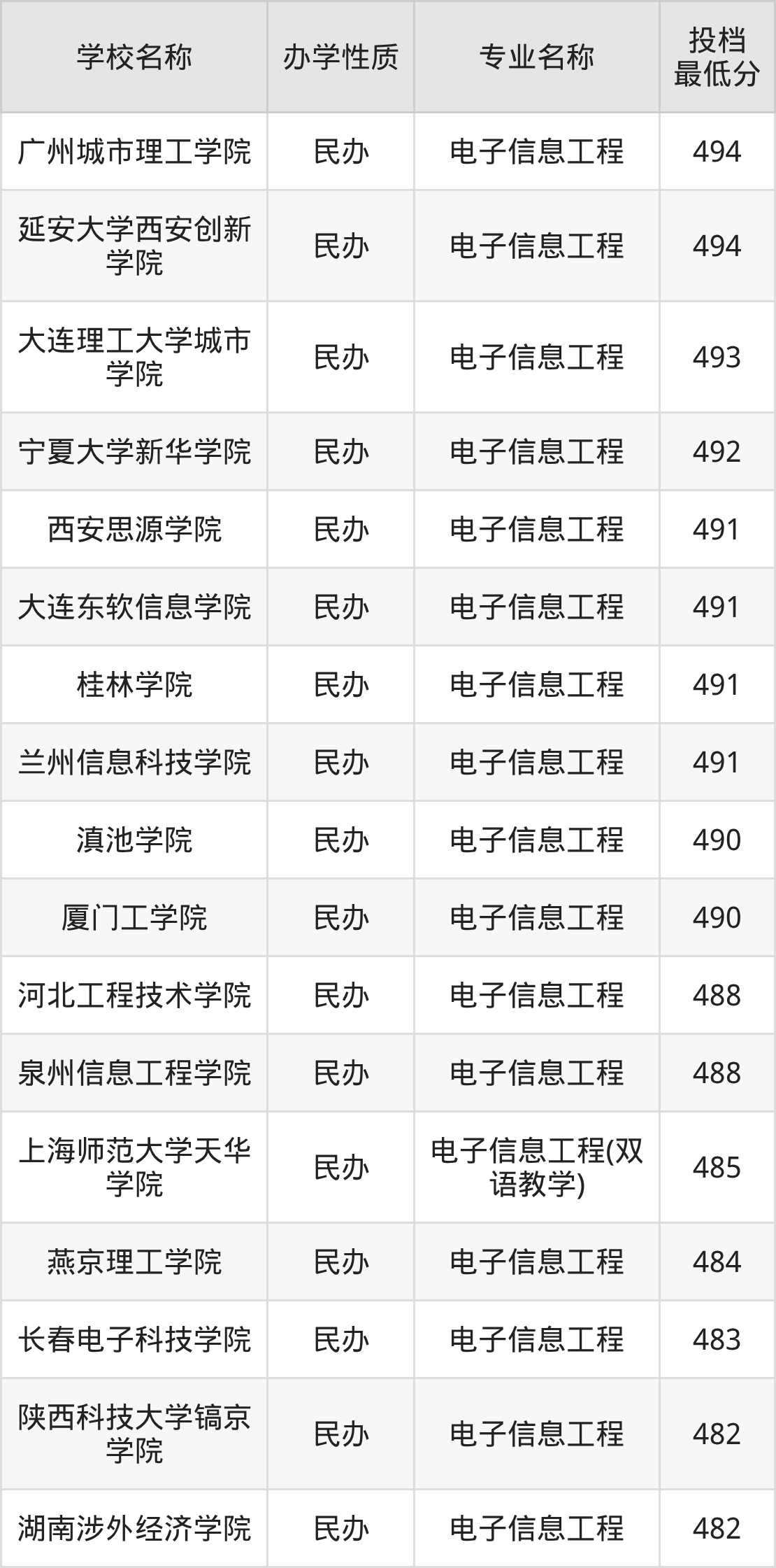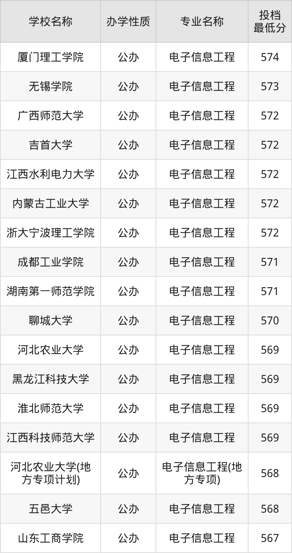下面是全国各个大学电子信息工程专业最低录取分数线排名一览表,考生可根据自己的分数情况选择合适的学校报考。