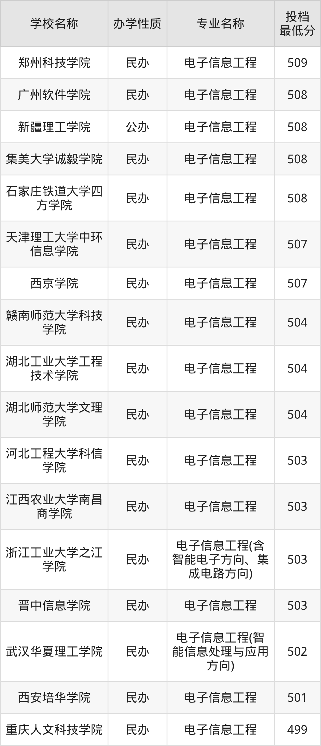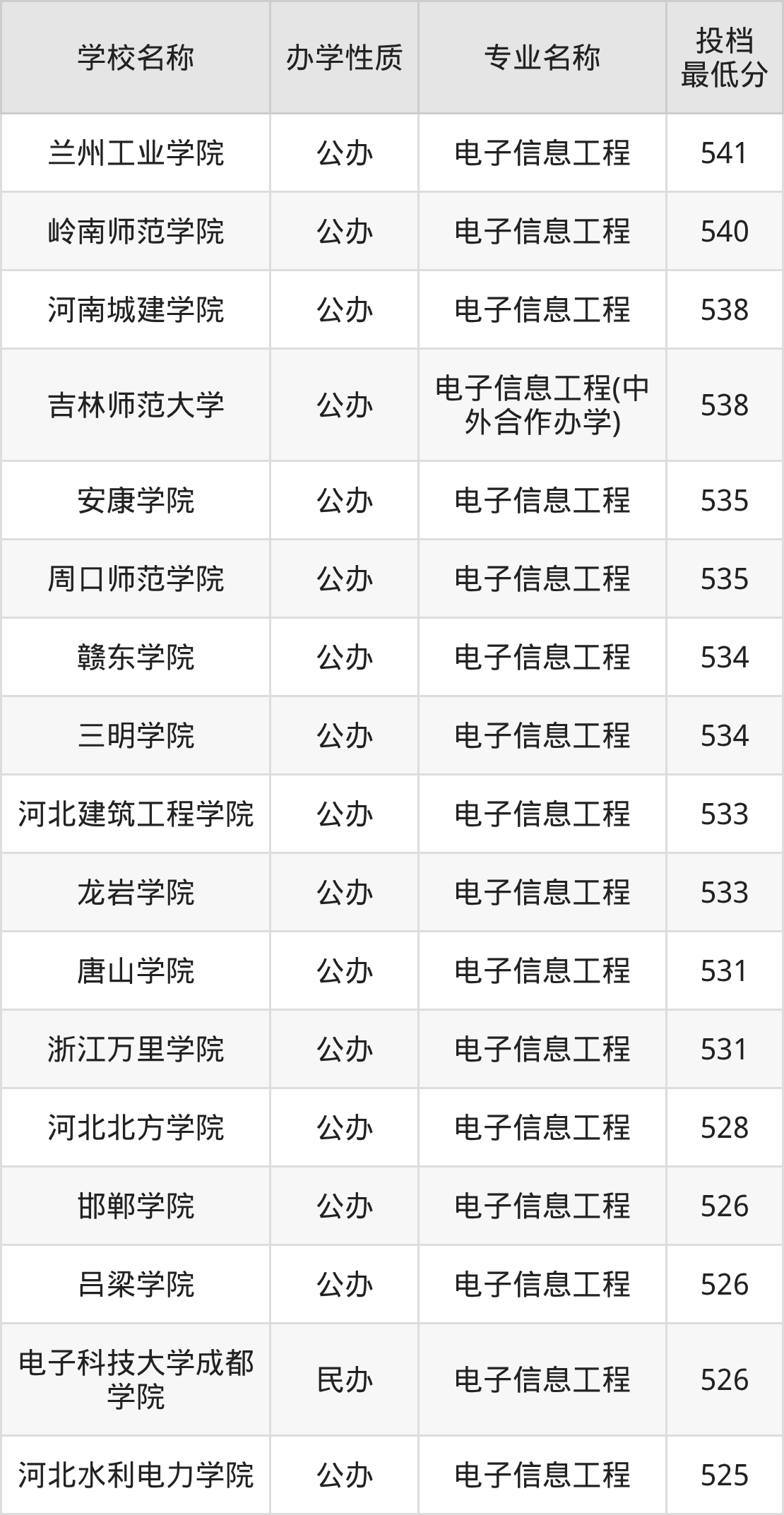 一般来说,电子信息工程都需要460分以上才能被录取,当然分数线因省份、科类而不同。从河北省2025年的招录数据来看,2025年电子信息工程专业最低分是459分,而河北省本科线刚好是459分,意味着考生需要达到本科线才能上。