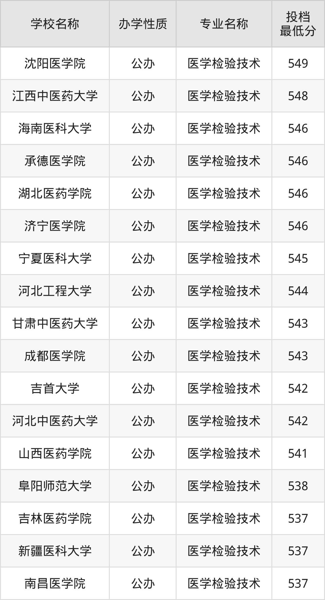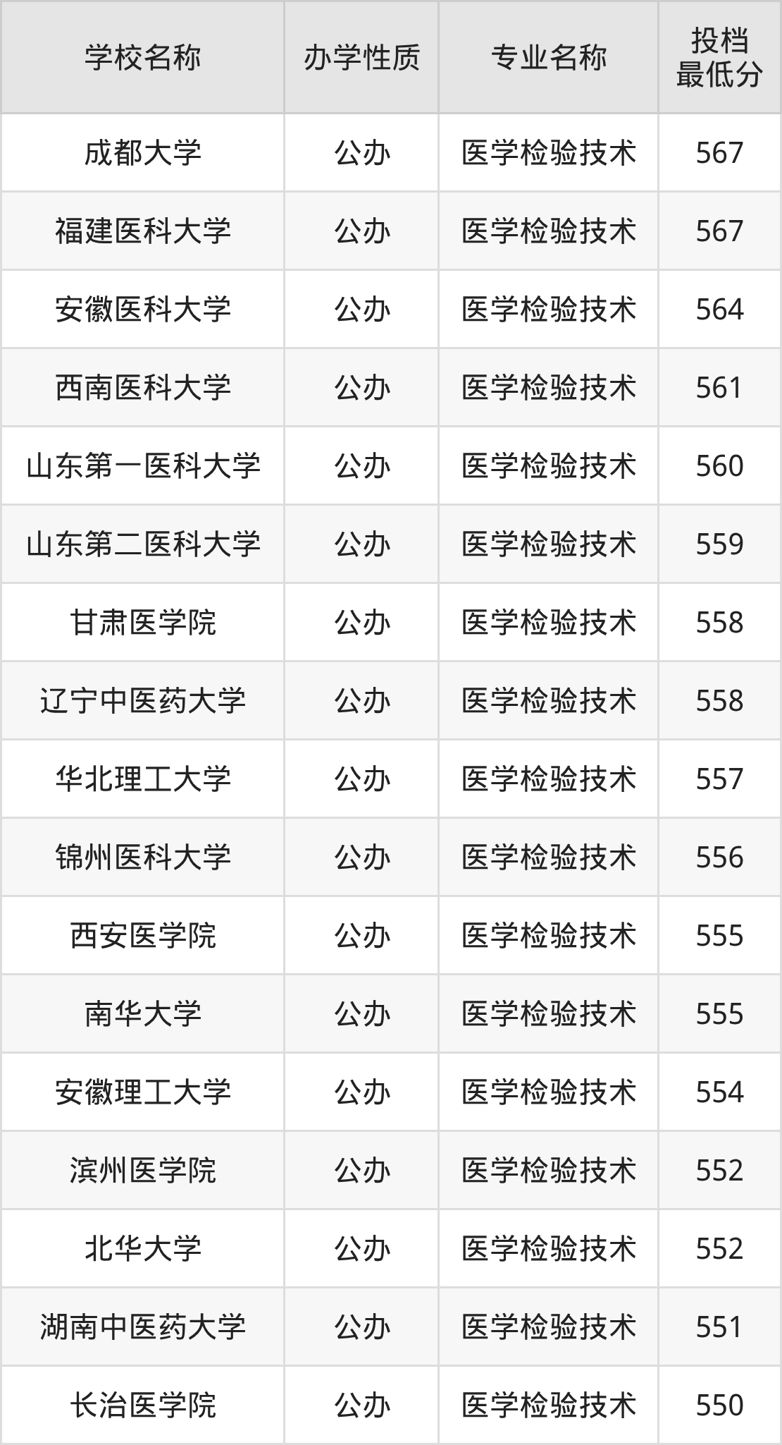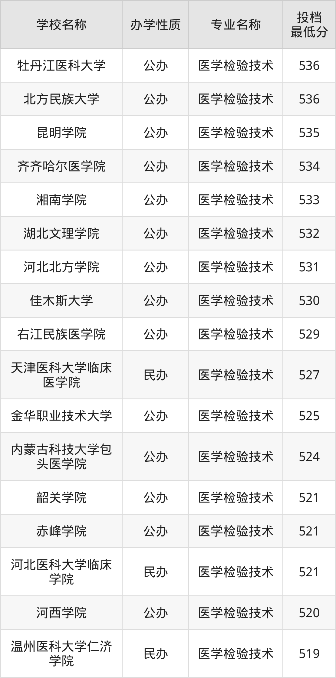 下面是2025年全国所有大学医学检验技术专业录取分数线一览表(按照分数线从高到低排名):
