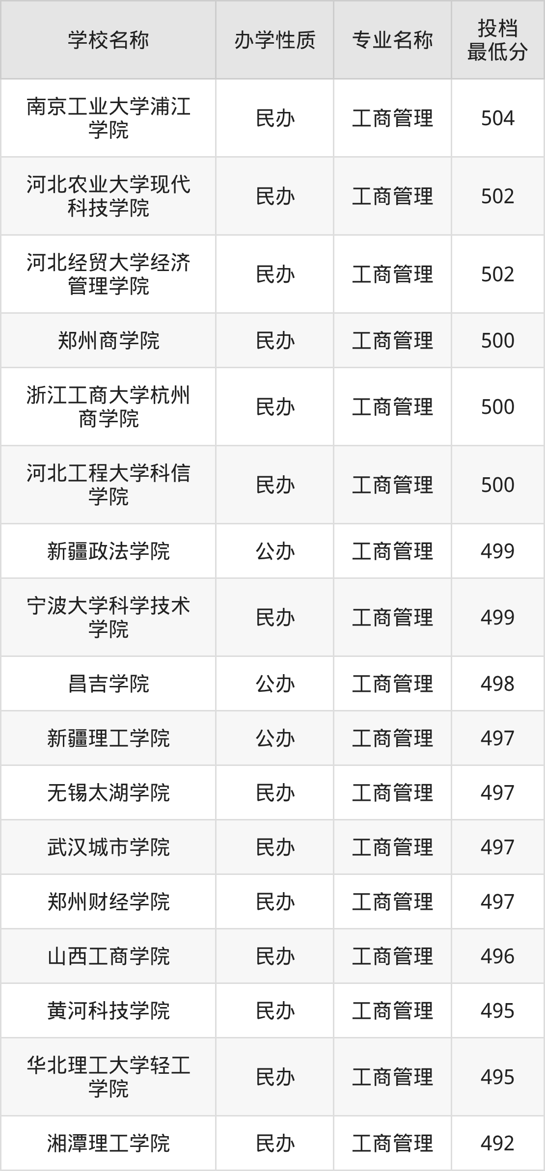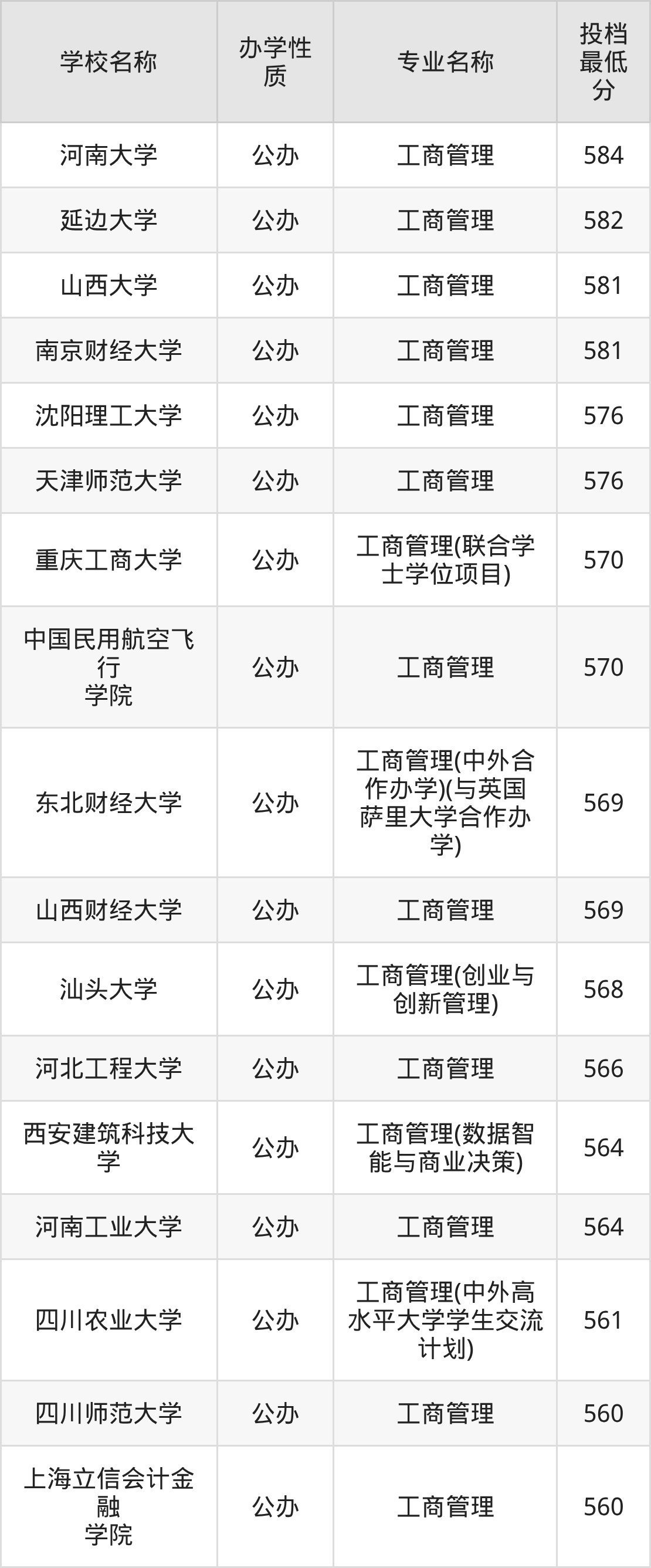 下面是全国各个大学工商管理专业最低录取分数线排名一览表,考生可根据自己的分数情况选择合适的学校报考。