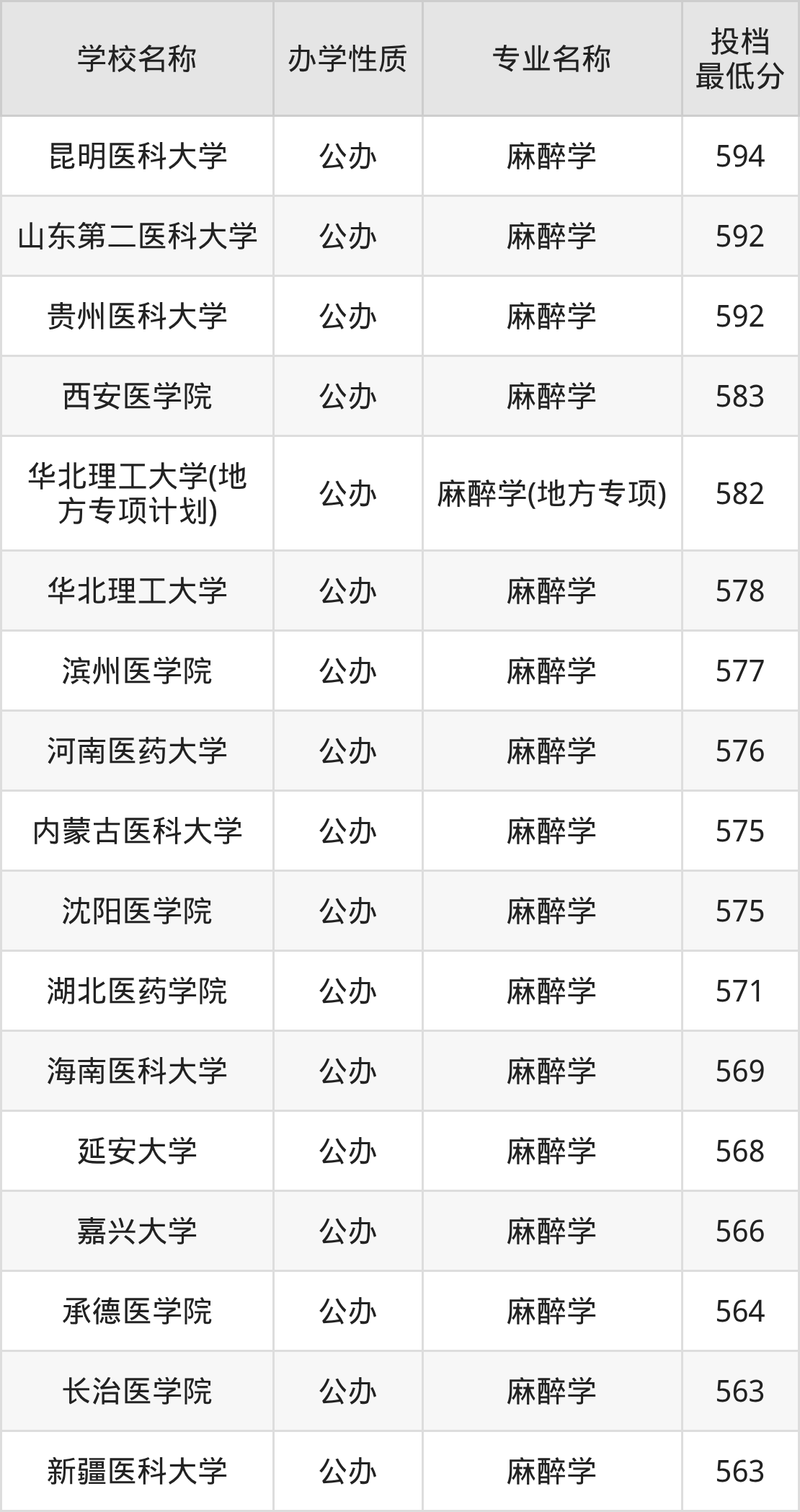下面是2025年全国所有大学麻醉学专业录取分数线一览表(按照分数线从高到低排名):