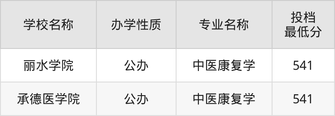 分数线最低、最好考的是丽水学院,学校中医康复学最低分是541,超本科线82分,该校也是同学们最容易考上的公办大学。