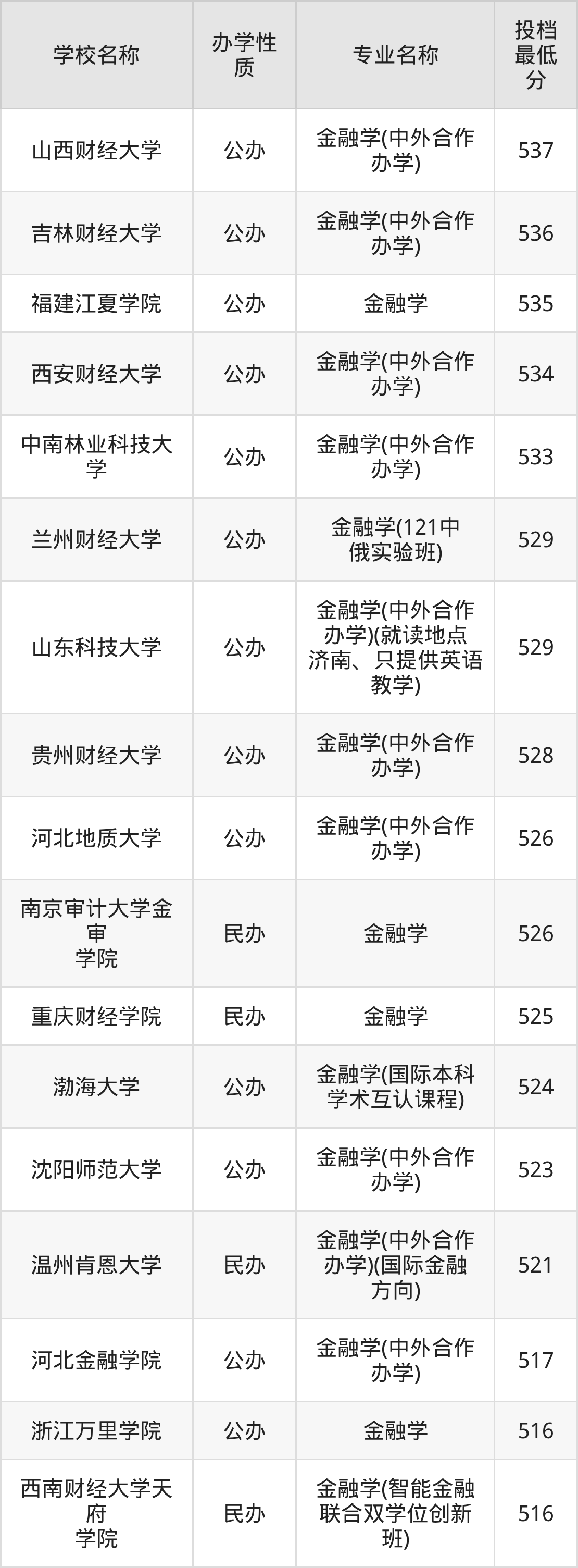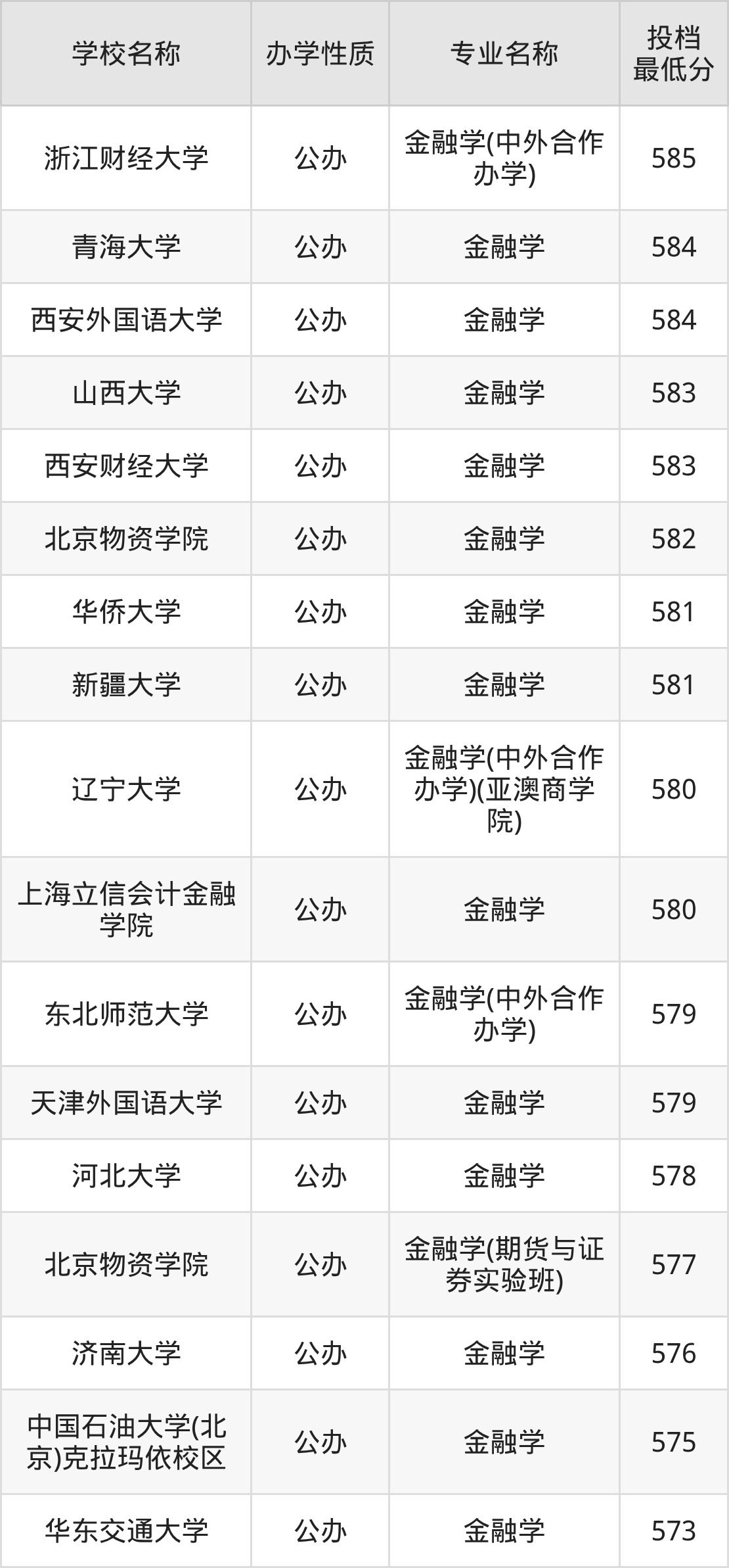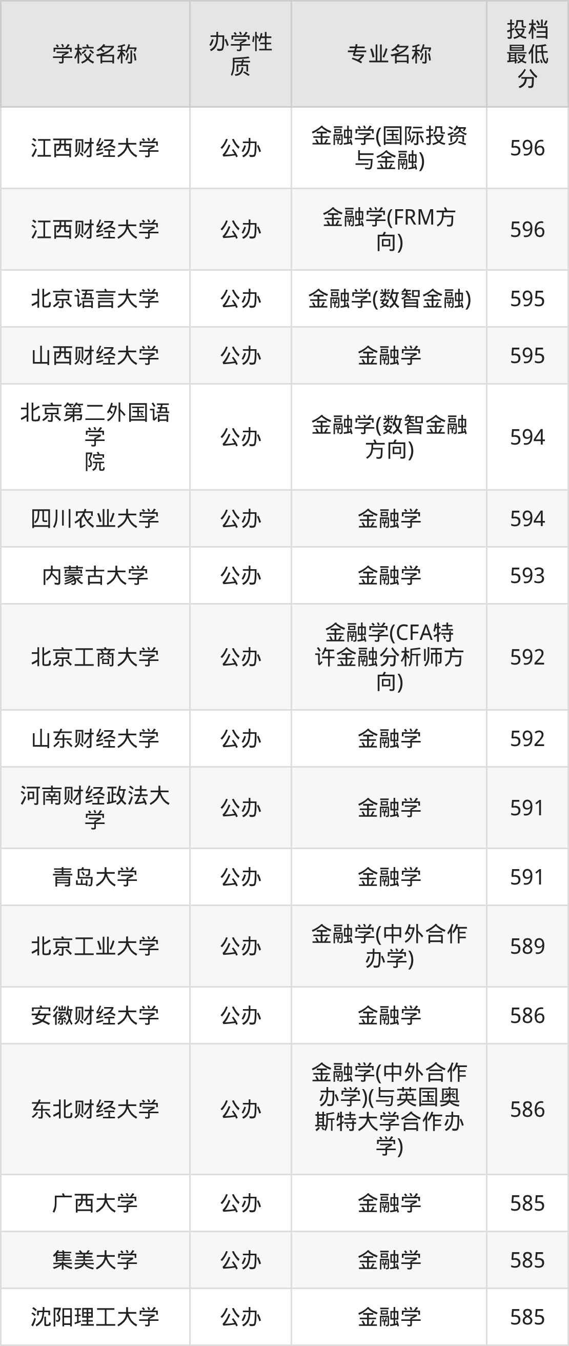下面是2025年全国所有大学金融学专业录取分数线一览表(按照分数线从高到低排名):