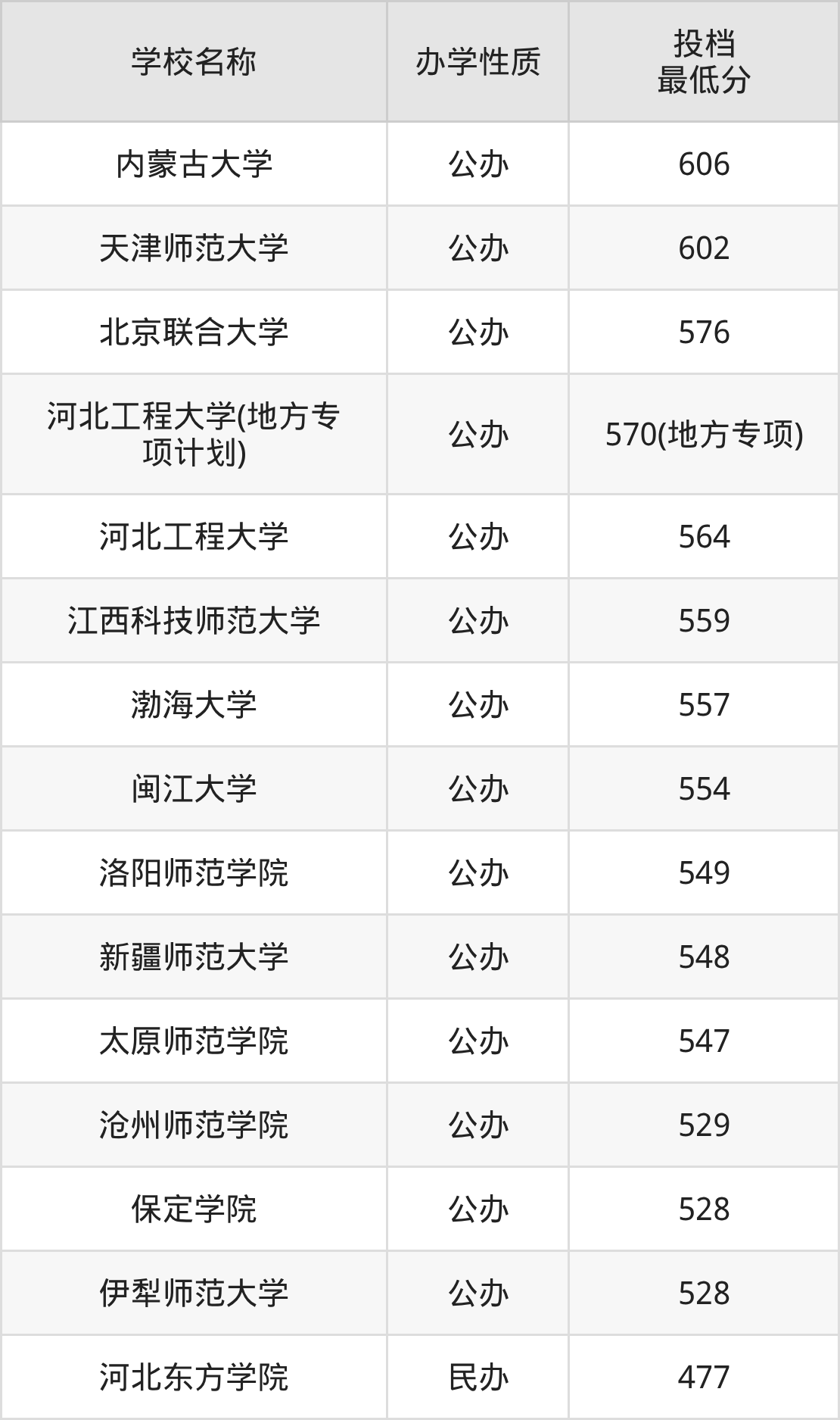 以河北省历史类为例: