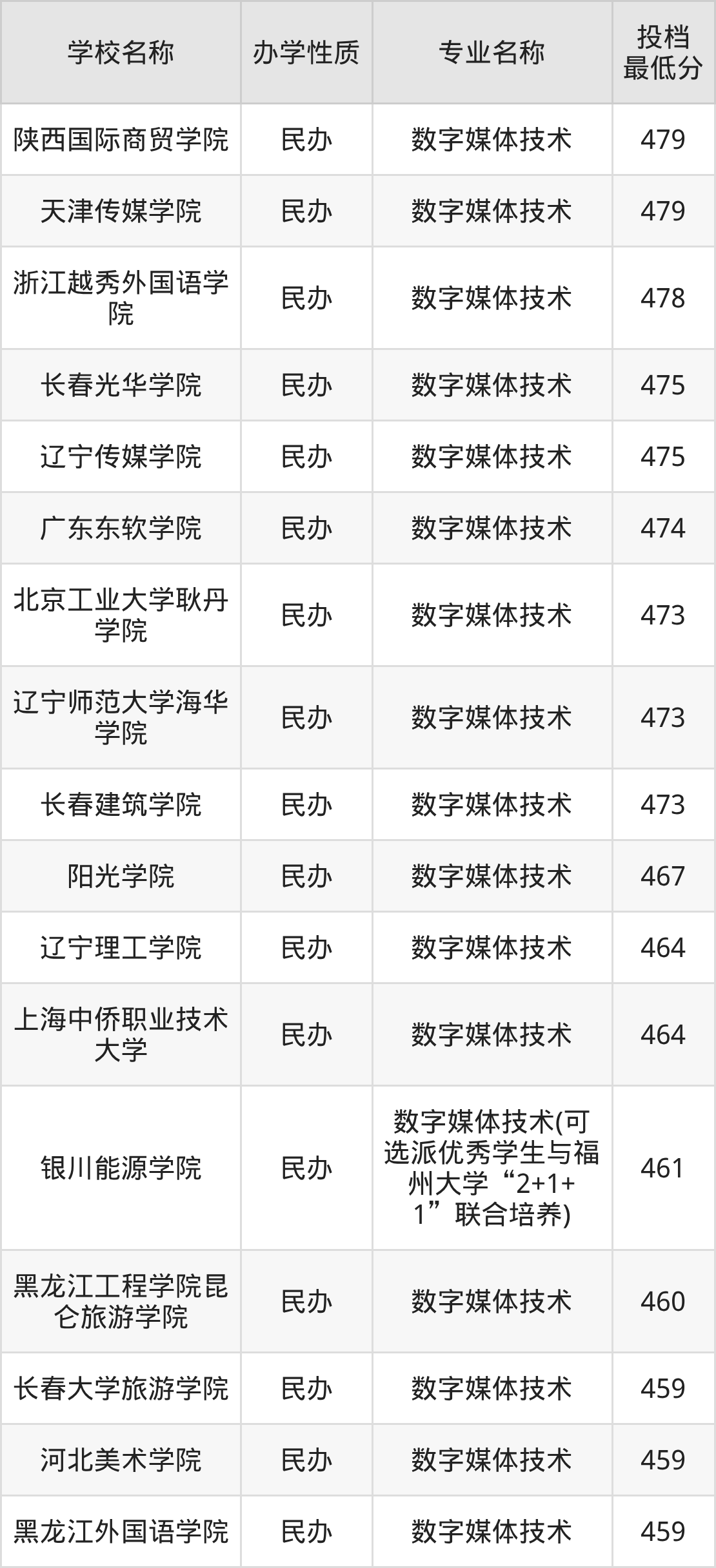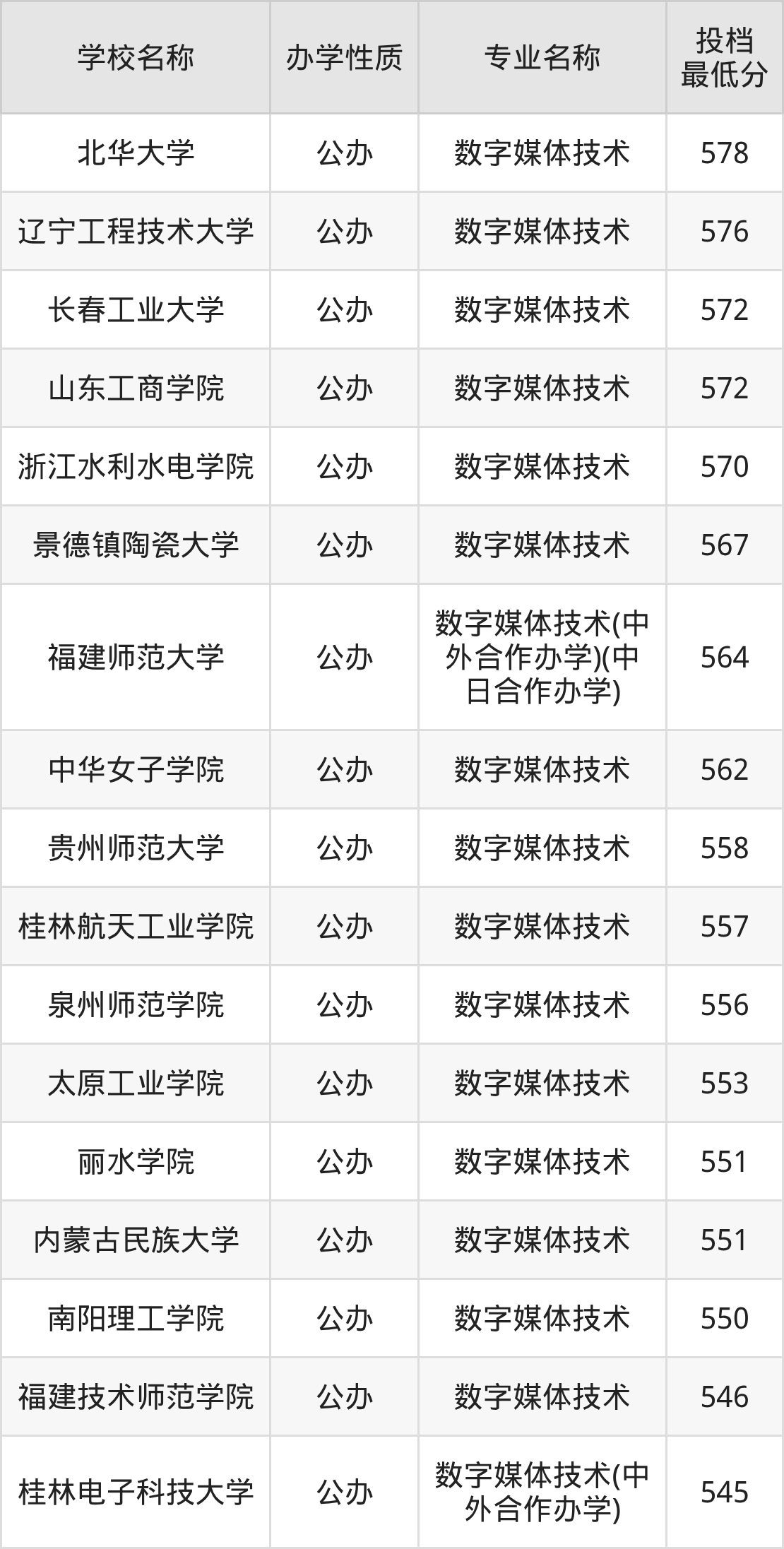 下面是2025年全国所有大学数字媒体技术专业录取分数线一览表(按照分数线从高到低排名):