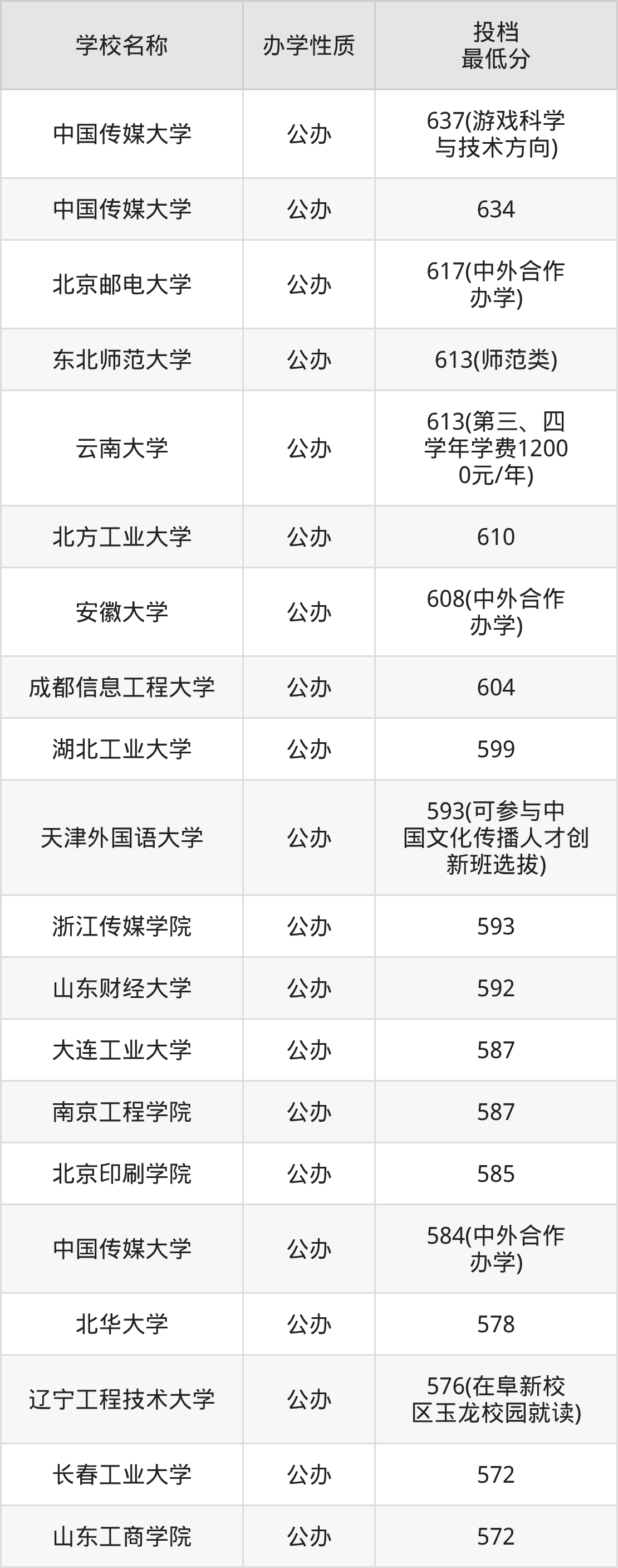 600分左右的数字媒体技术大学:成都信息工程大学604分、安徽大学608分(中外合作办学);
