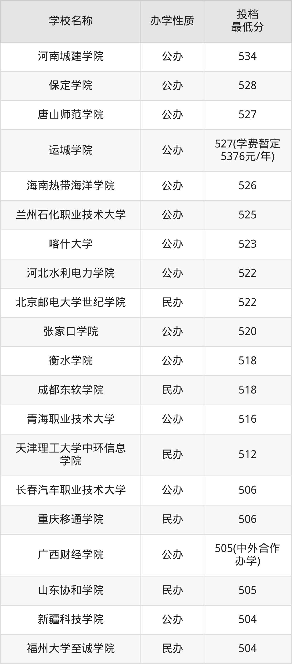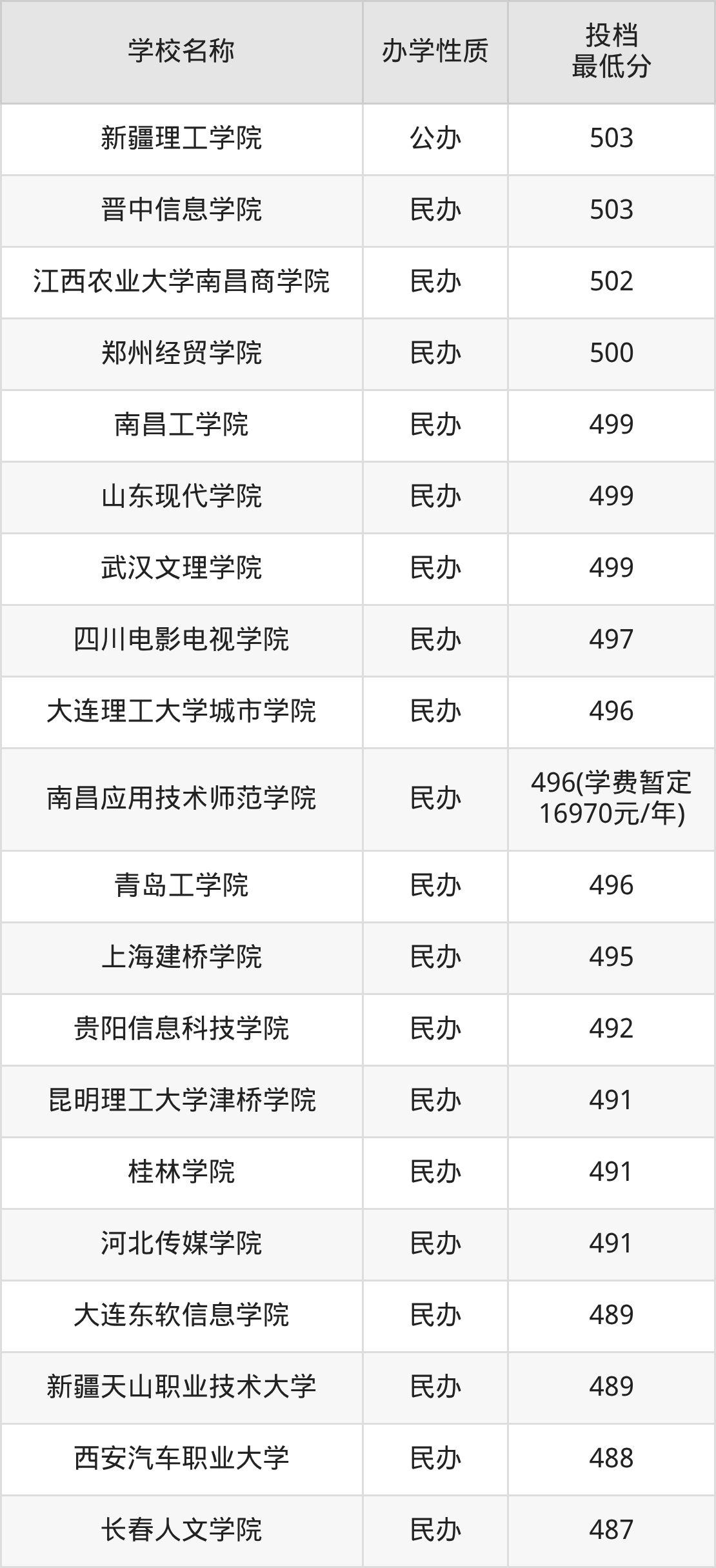 500分左右的数字媒体技术大学:郑州经贸学院500分、江西农业大学南昌商学院502分、新疆理工学院503分、晋中信息学院503分、新疆科技学院504分等;