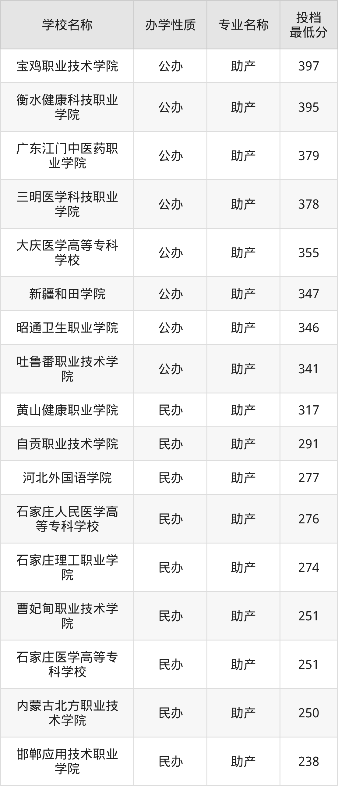一般来说,助产都需要210分以上才能被录取,当然分数线因省份、科类而不同。从河北省2025年的招录数据来看,2025年助产专业最低分是208分,而河北省专科线是200分,意味着考生至少需超过专科线8分才能上。