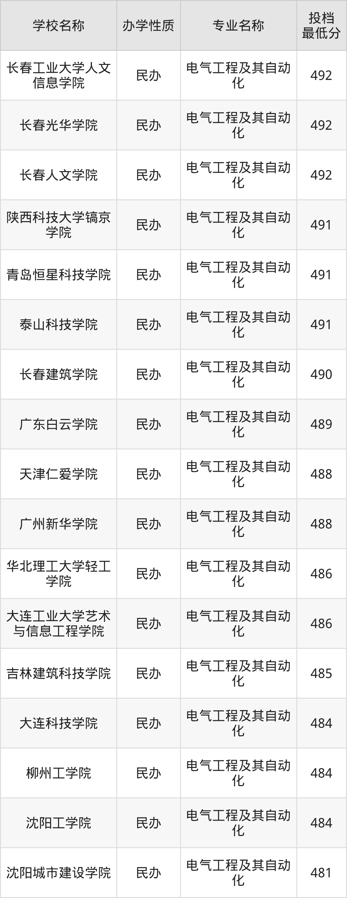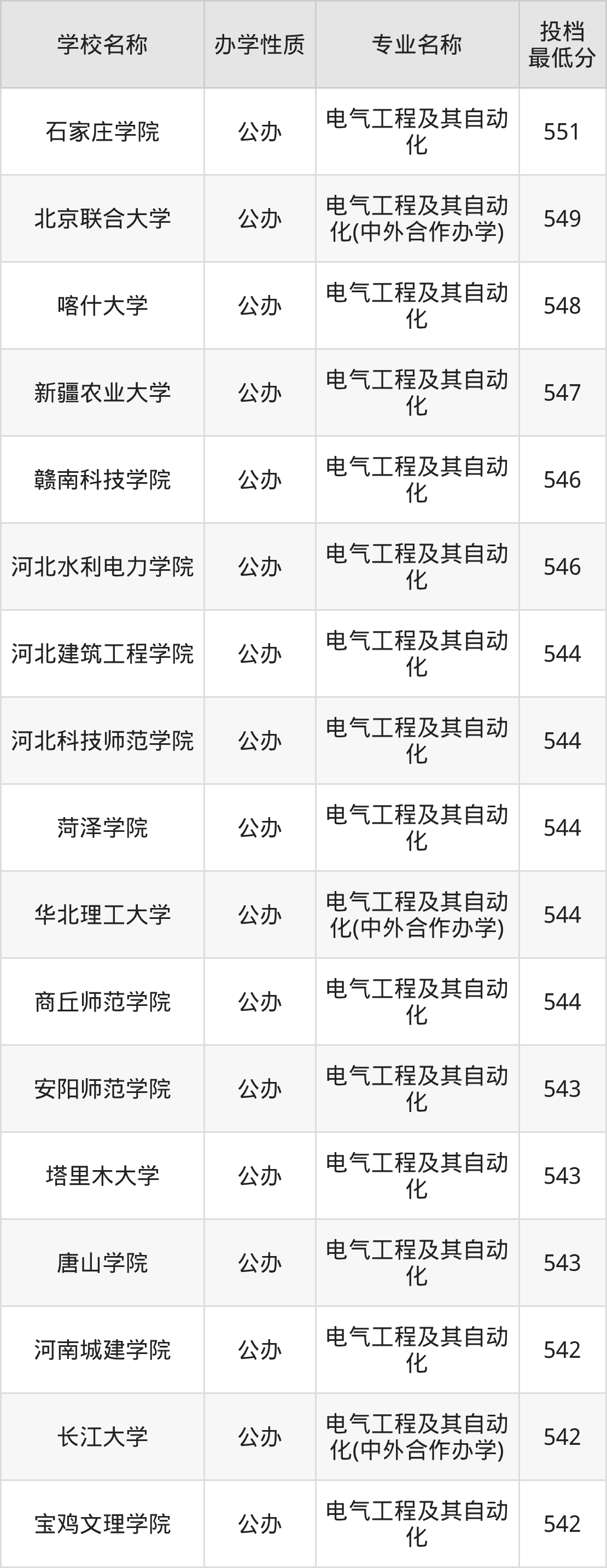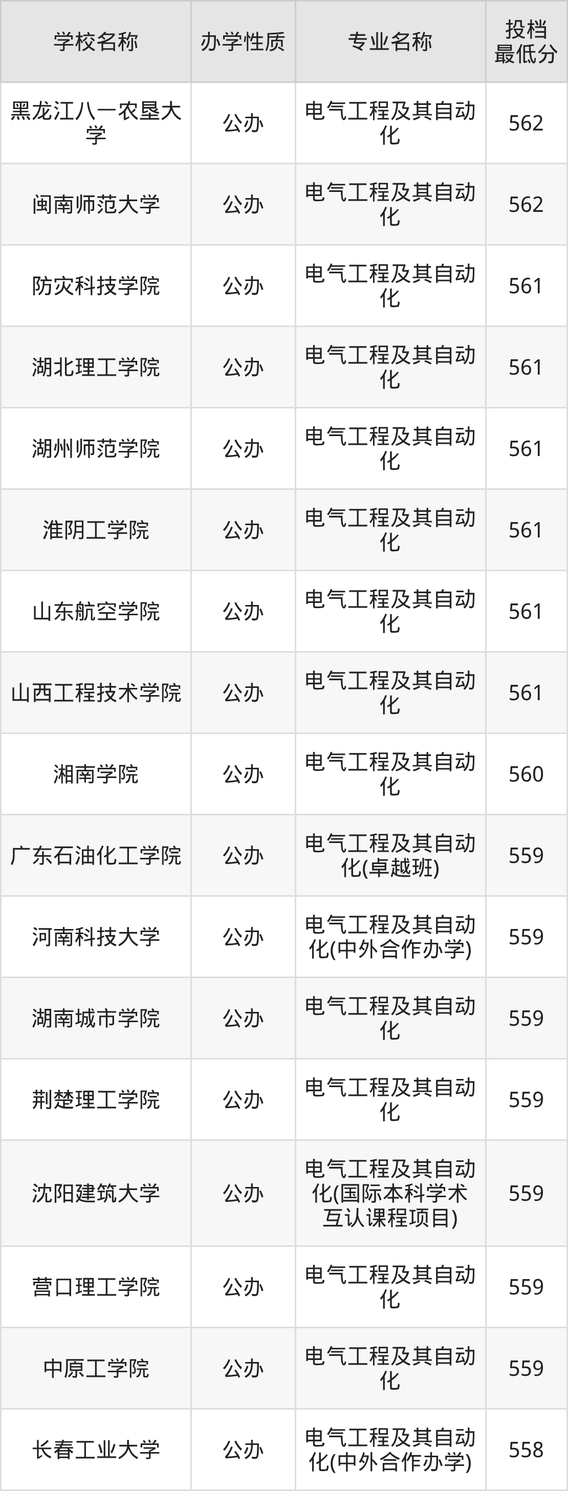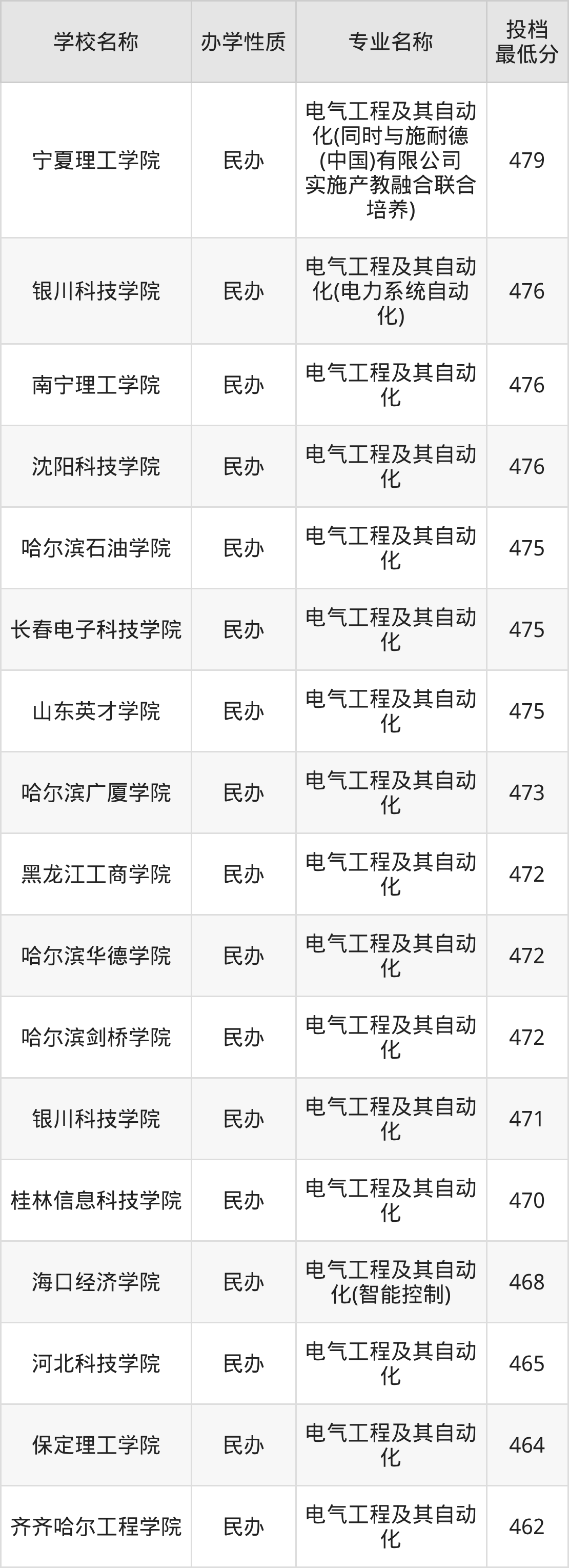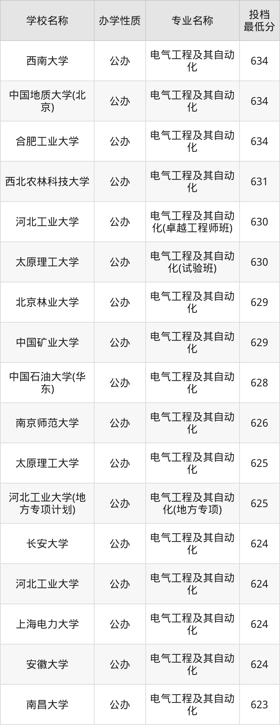 二、全国电气工程及其自动化录取分数线排名表