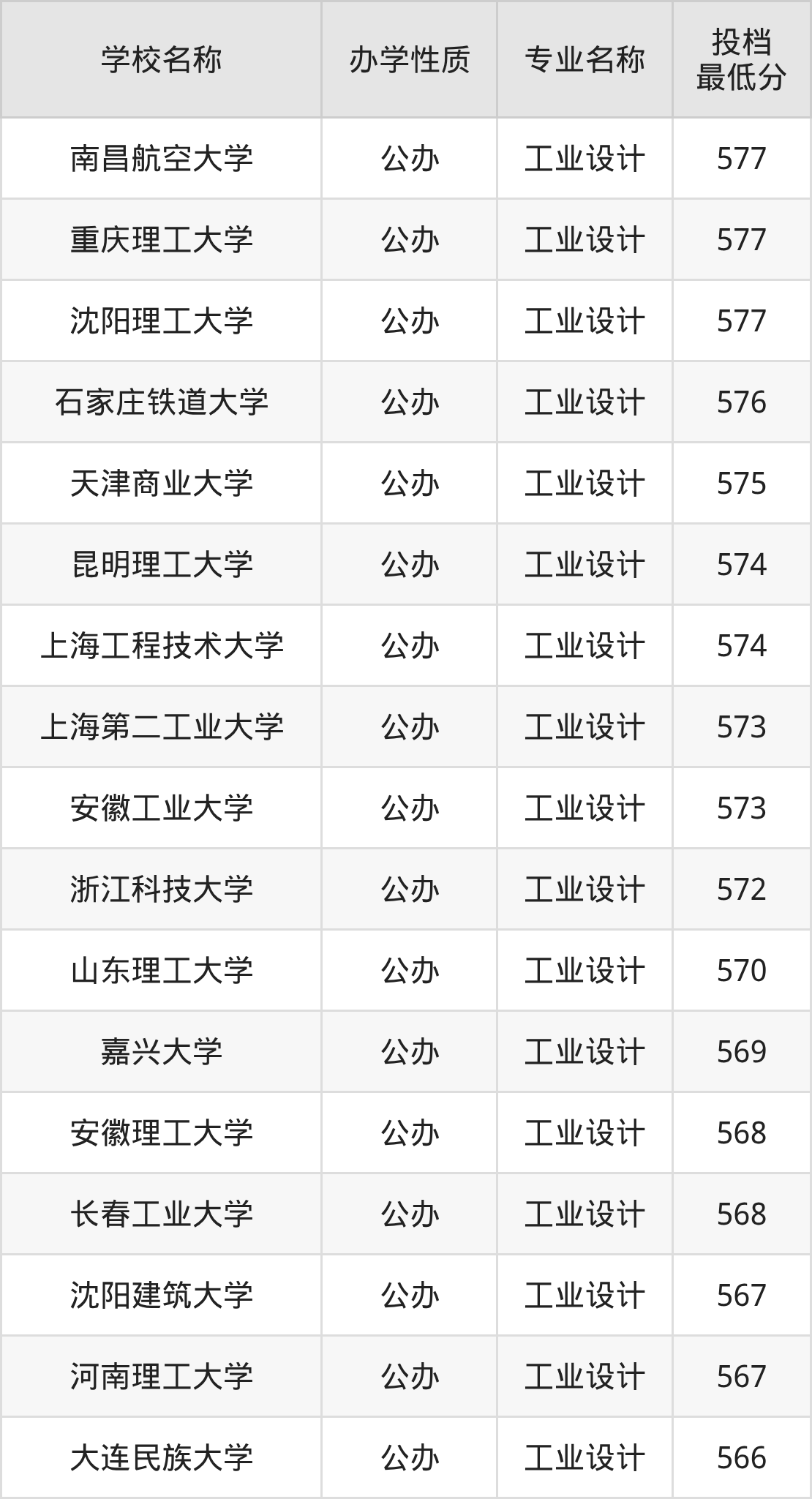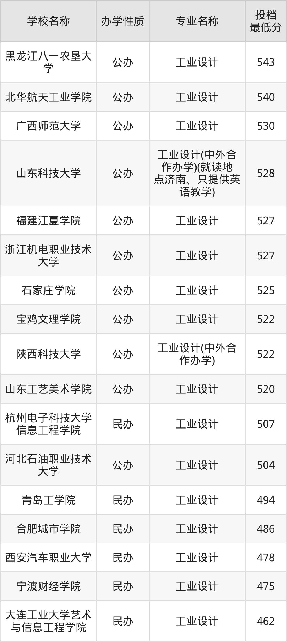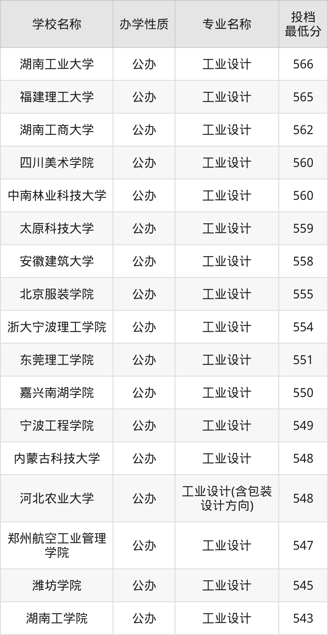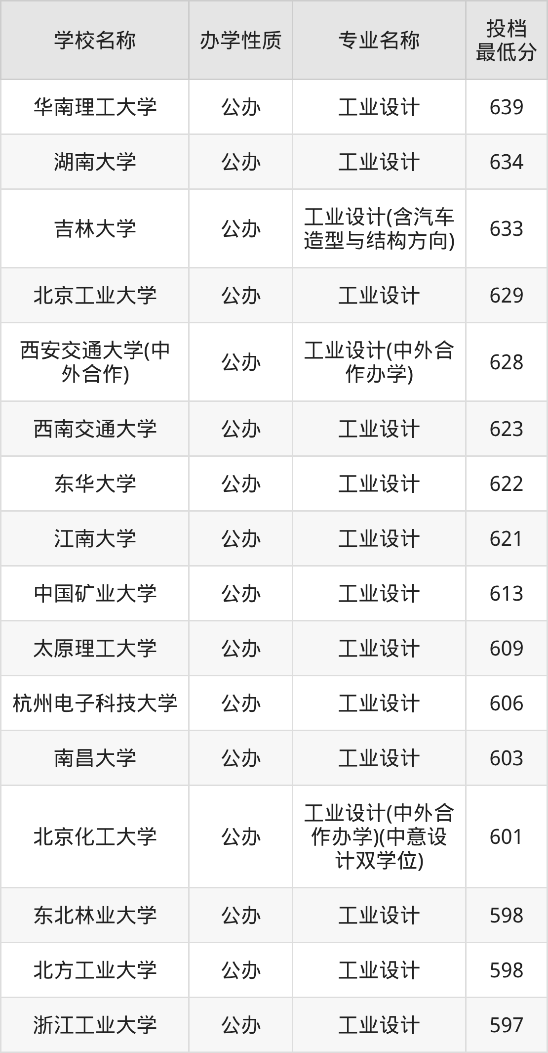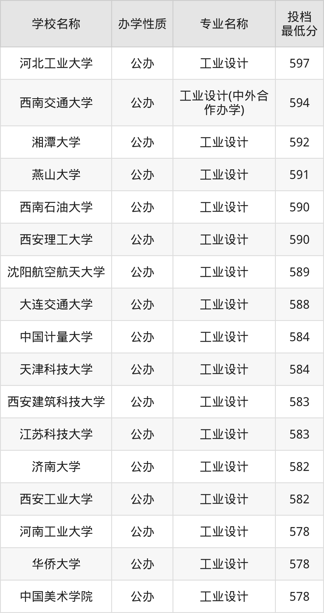 下面是全国各个大学工业设计专业最低录取分数线排名一览表,考生可根据自己的分数情况选择合适的学校报考。