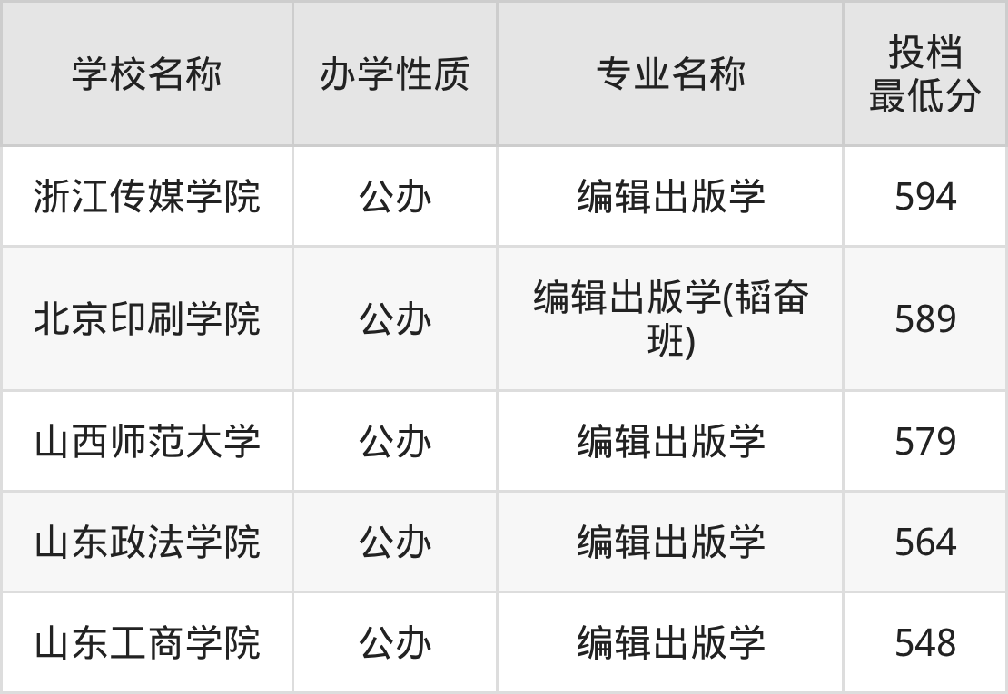 2025年全国编辑出版学专业录取分数线从548分到594分不等,各校最低分数线存在较大差异。