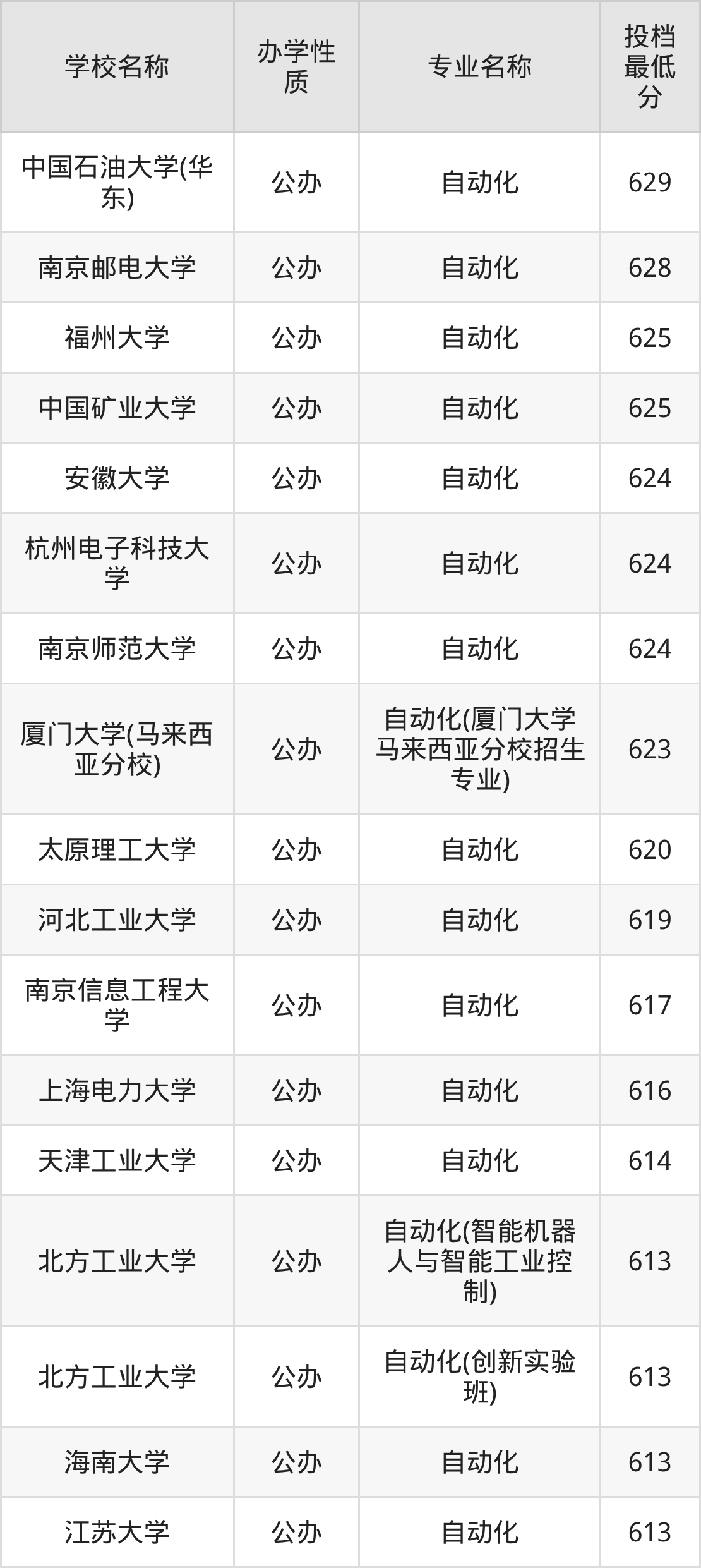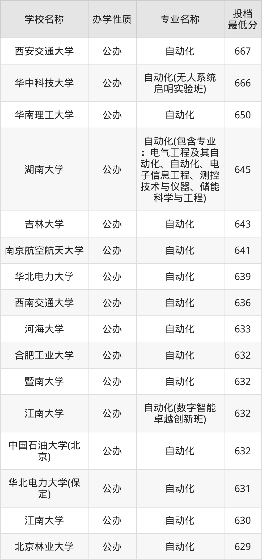 下面是2025年全国所有大学自动化专业录取分数线一览表(按照分数线从高到低排名):