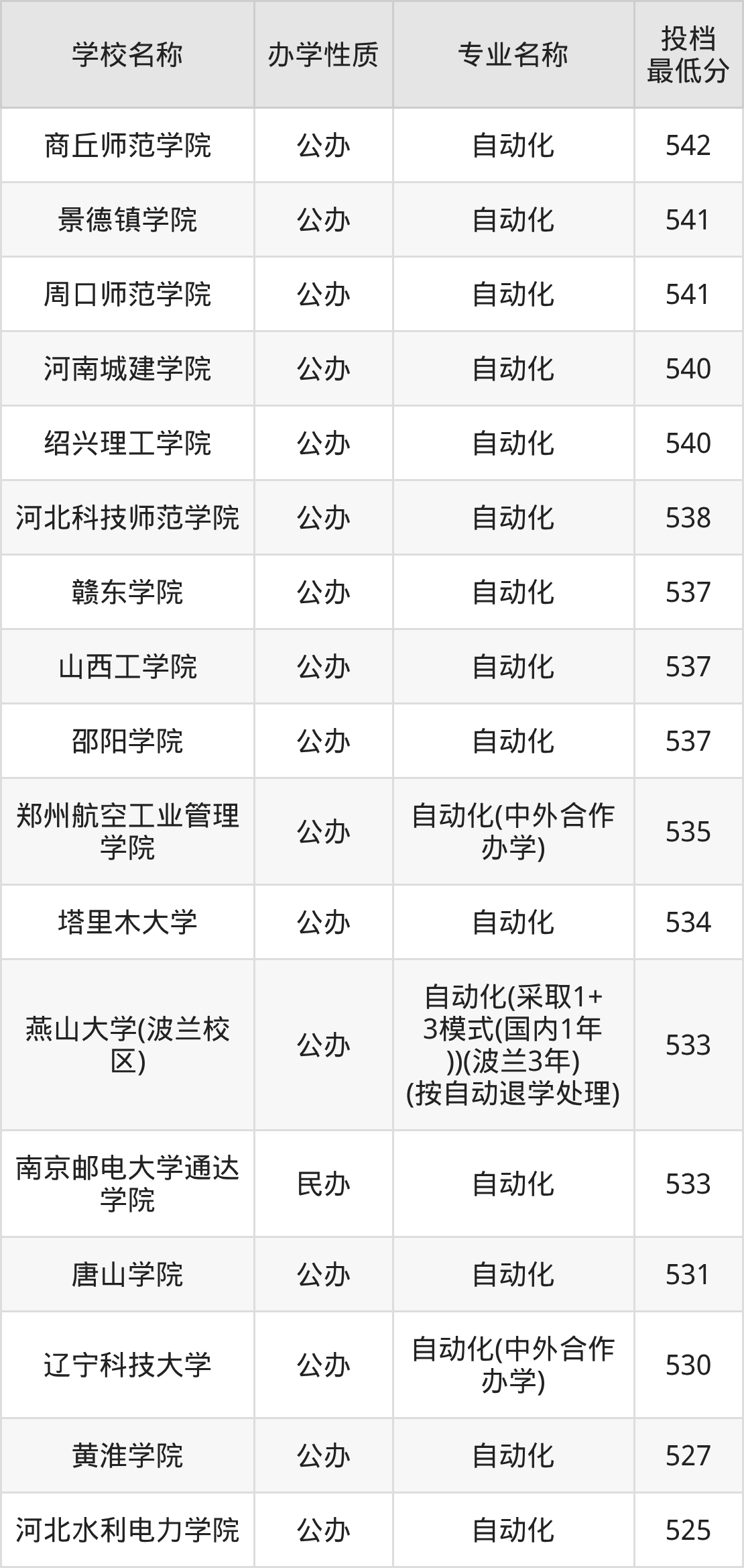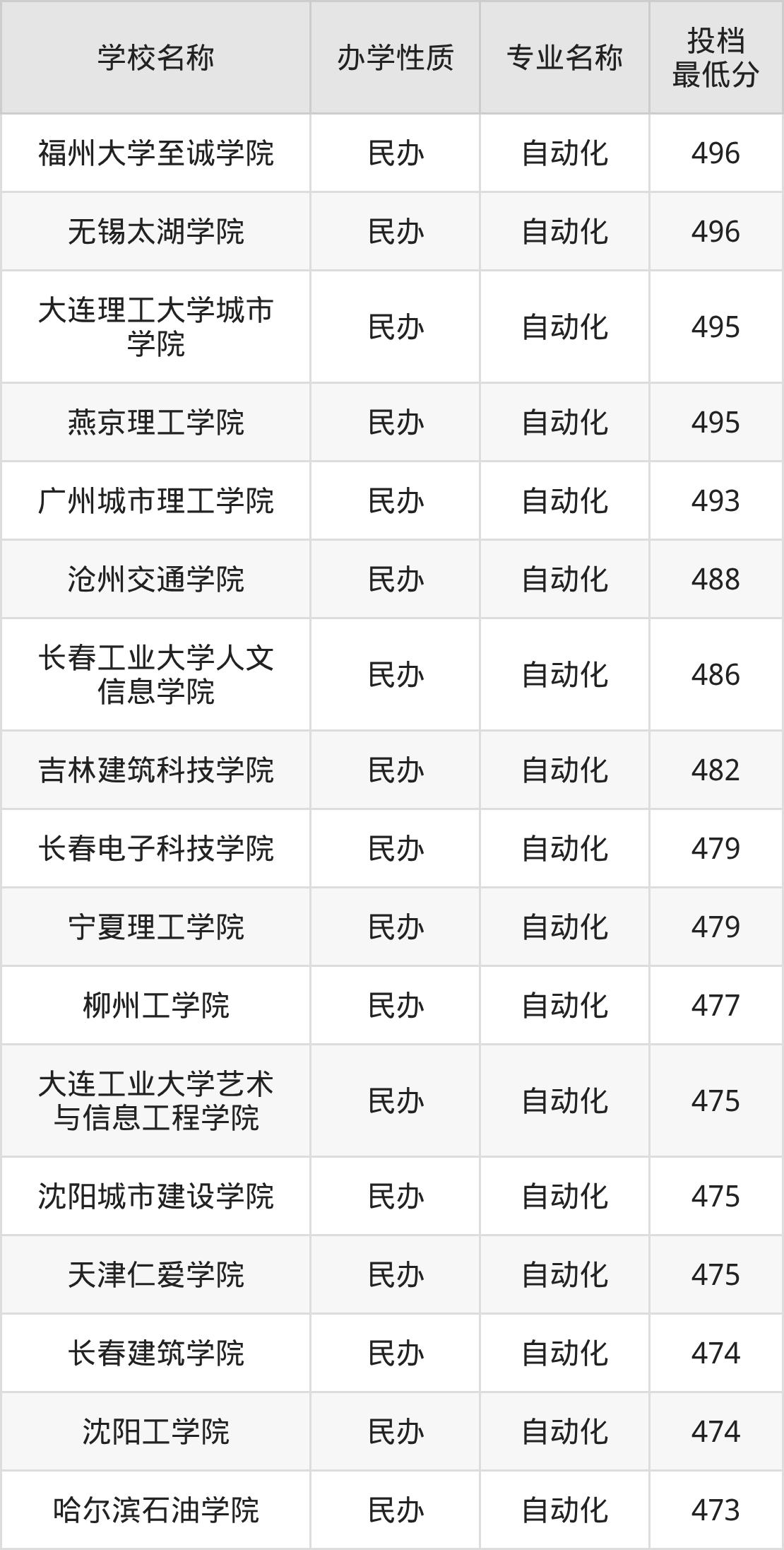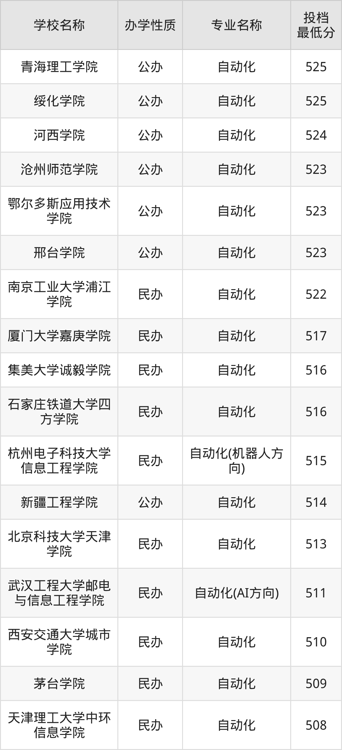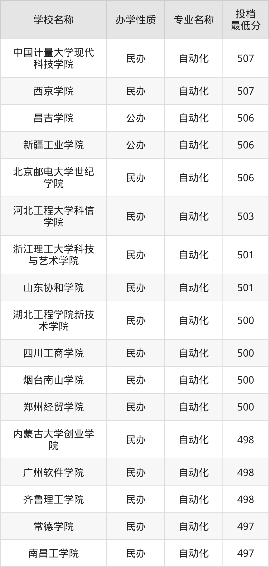 500分左右的自动化大学:山东协和学院501分、浙江理工大学科技与艺术学院501分、河北工程大学科信学院503分、北京邮电大学世纪学院506分、新疆工业学院506分等;