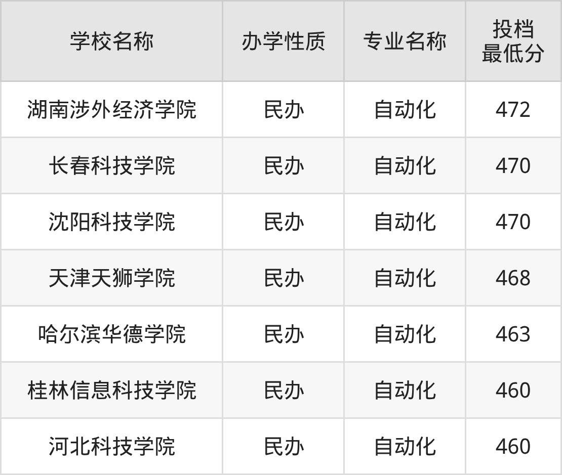 2025年自动化专业最低录取分数线是460分,超本科分数线(459分)1分。也就是说想报考自动化专业的同学,至少得超过本科线1分及以上。自动化专业最低分的大学是河北科技学院,不过该校属于民办。