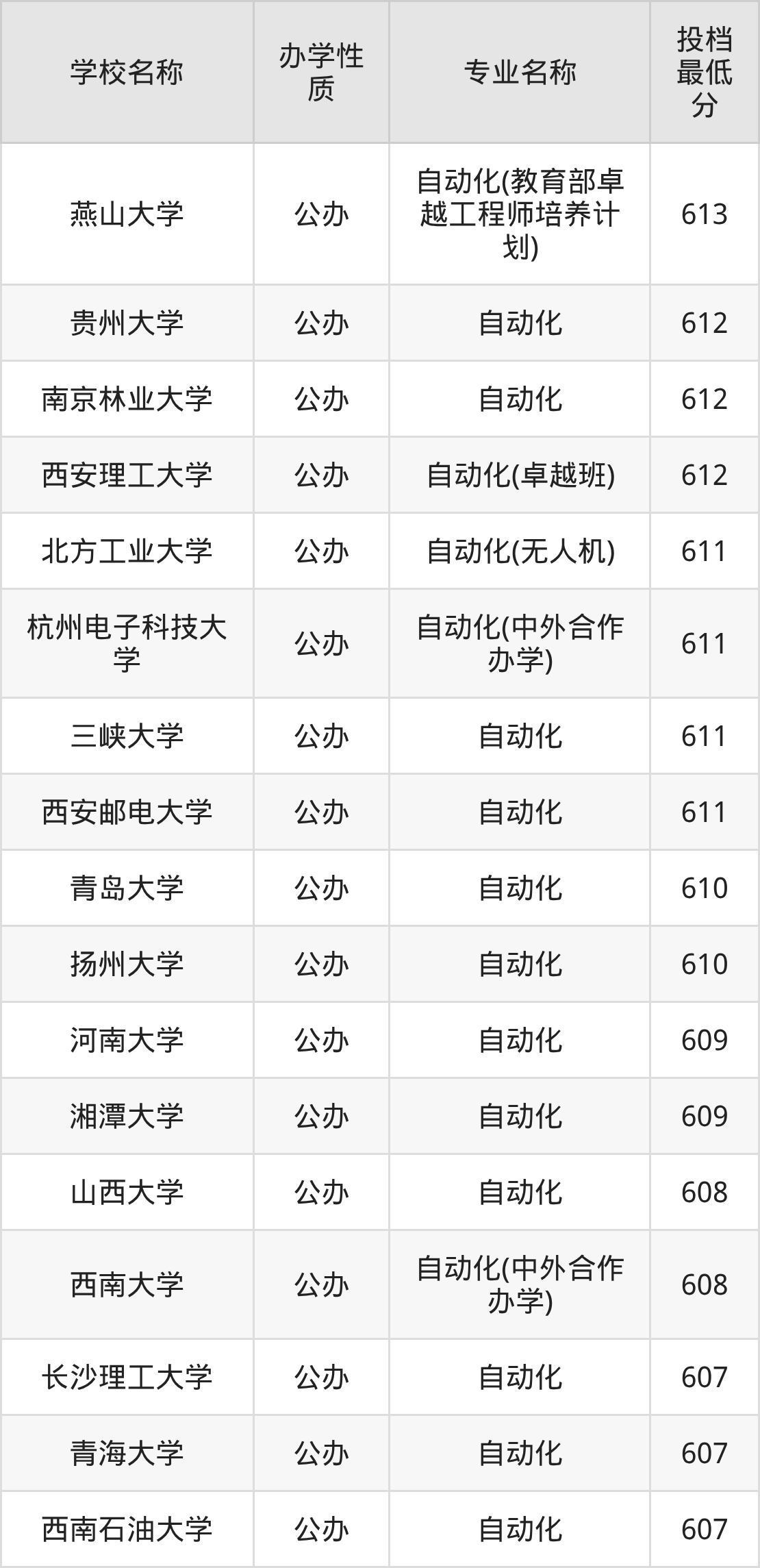 自动化专业最好的50所大学名单如表中所示,考生可以结合上文整理的分数线,然后根据自己的成绩选择合适的学校报考。