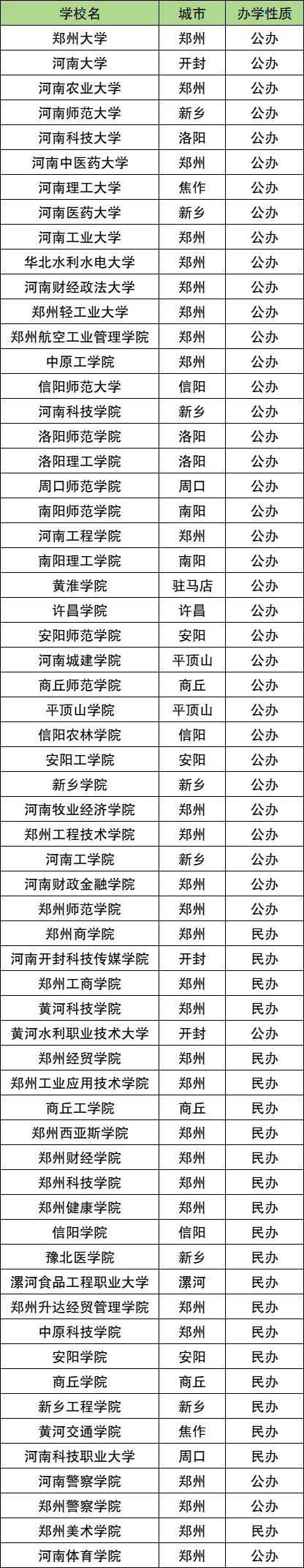 2、新乡(7所):河南师范大学、河南医药大学、河南科技学院、新乡学院、河南工学院、豫北医学院、新乡工程学院;
