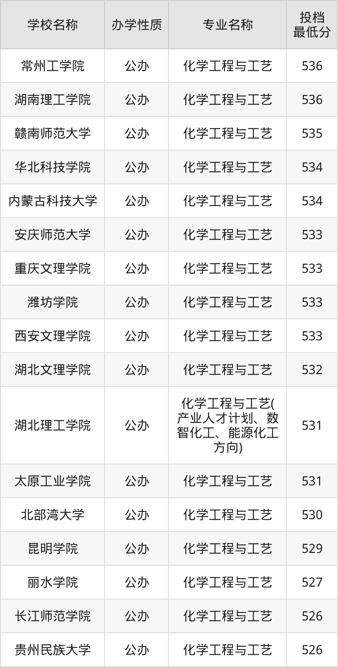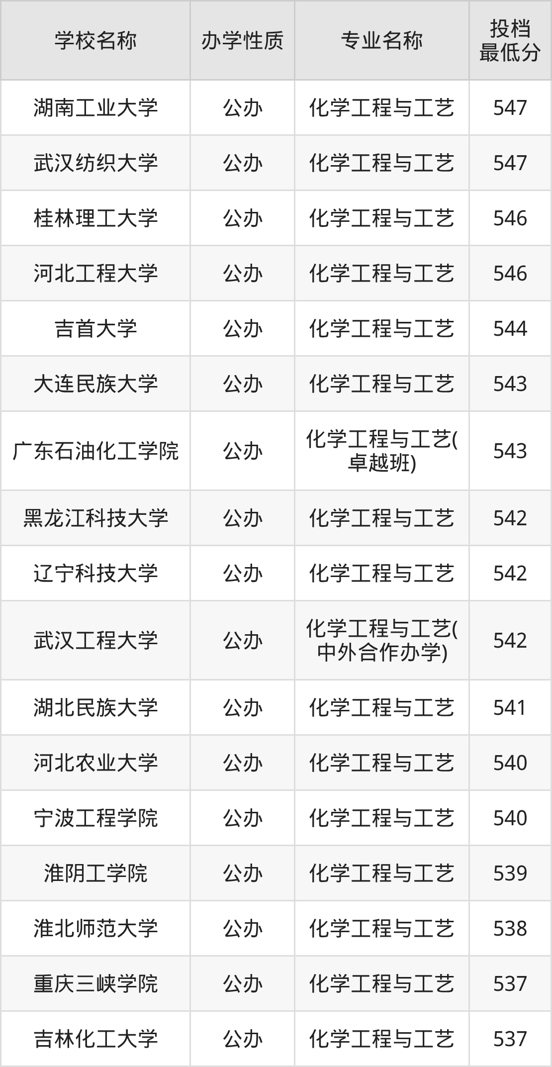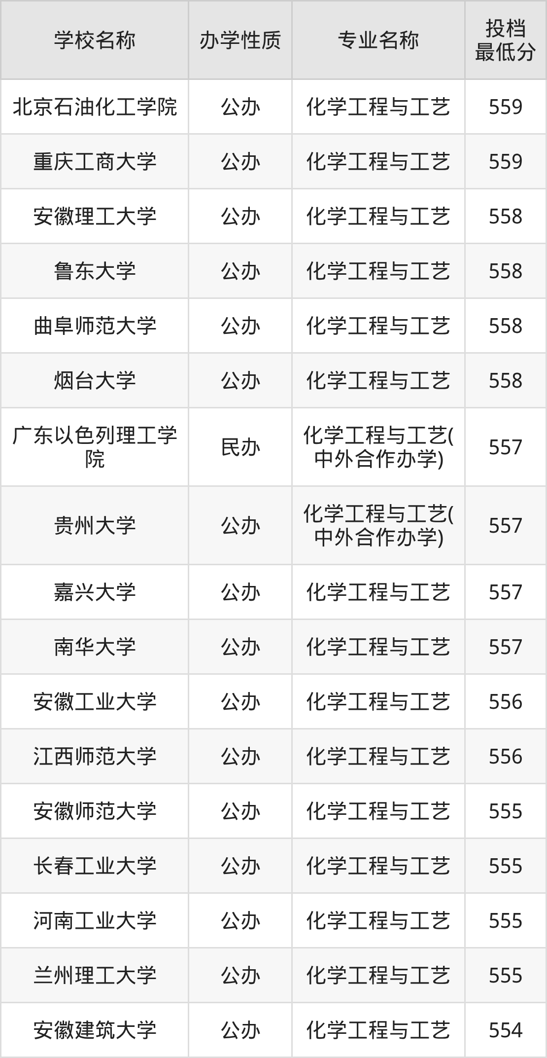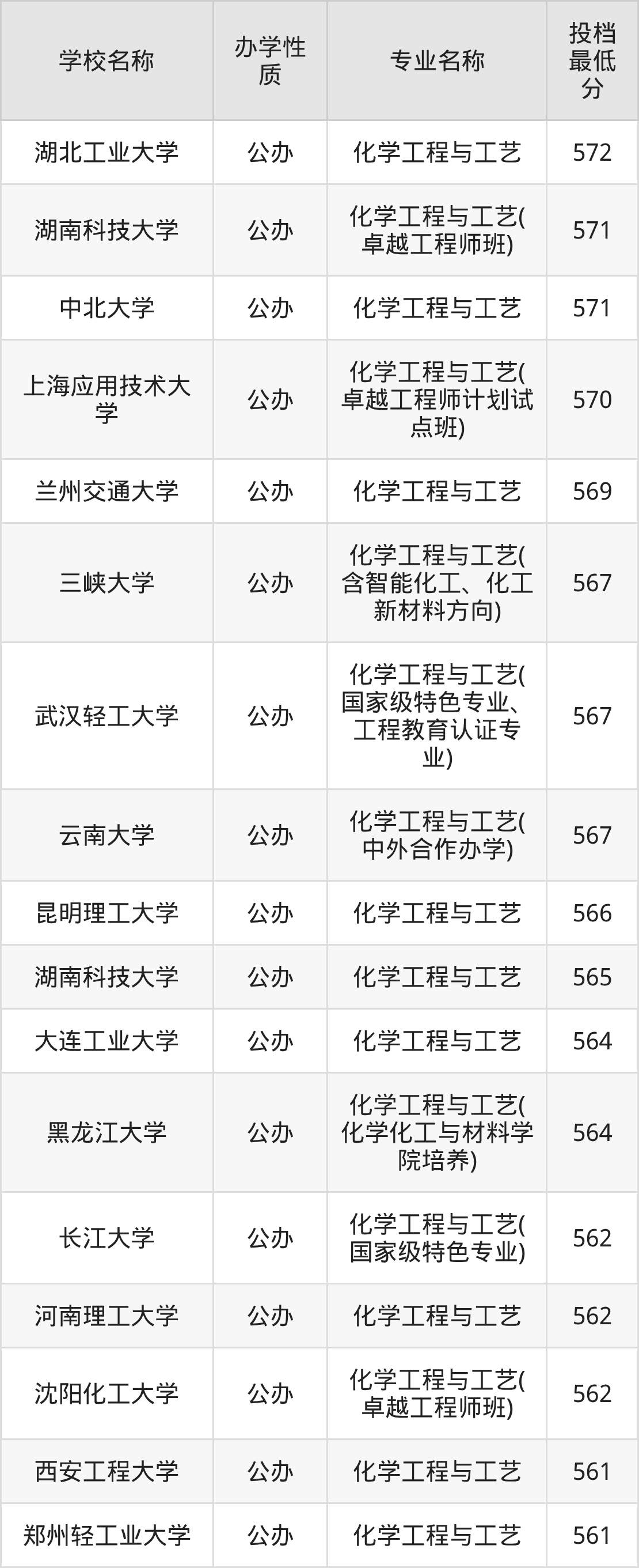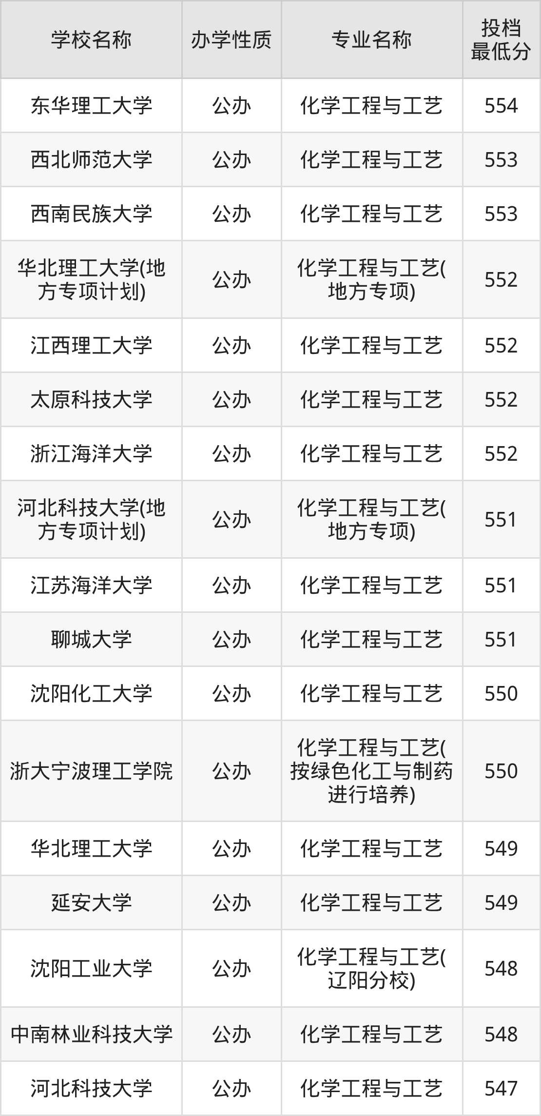 下面是2025年全国所有大学化学工程与工艺专业录取分数线一览表(按照分数线从高到低排名):