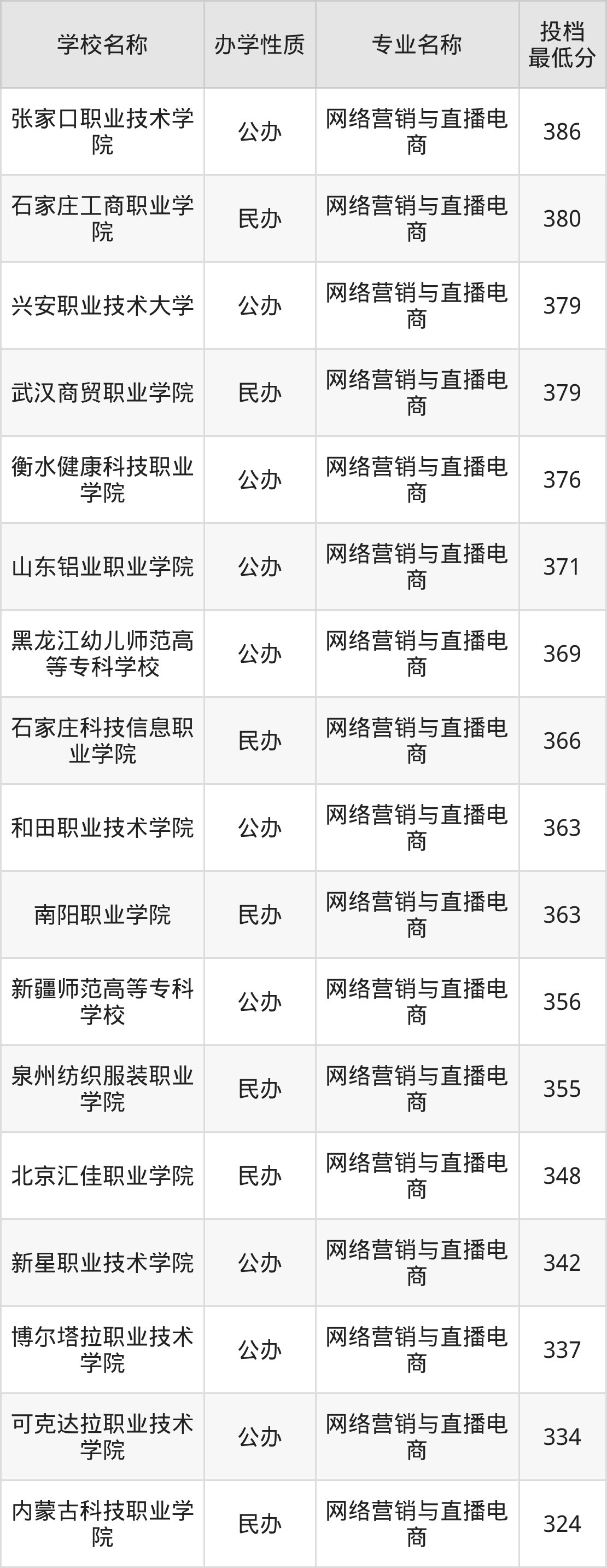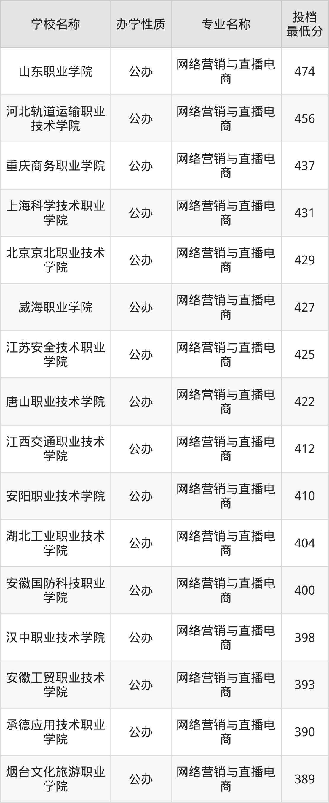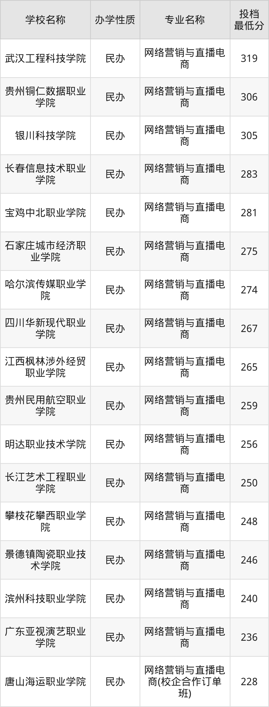 下面是2025年全国所有大学网络营销与直播电商专业录取分数线一览表(按照分数线从高到低排名):