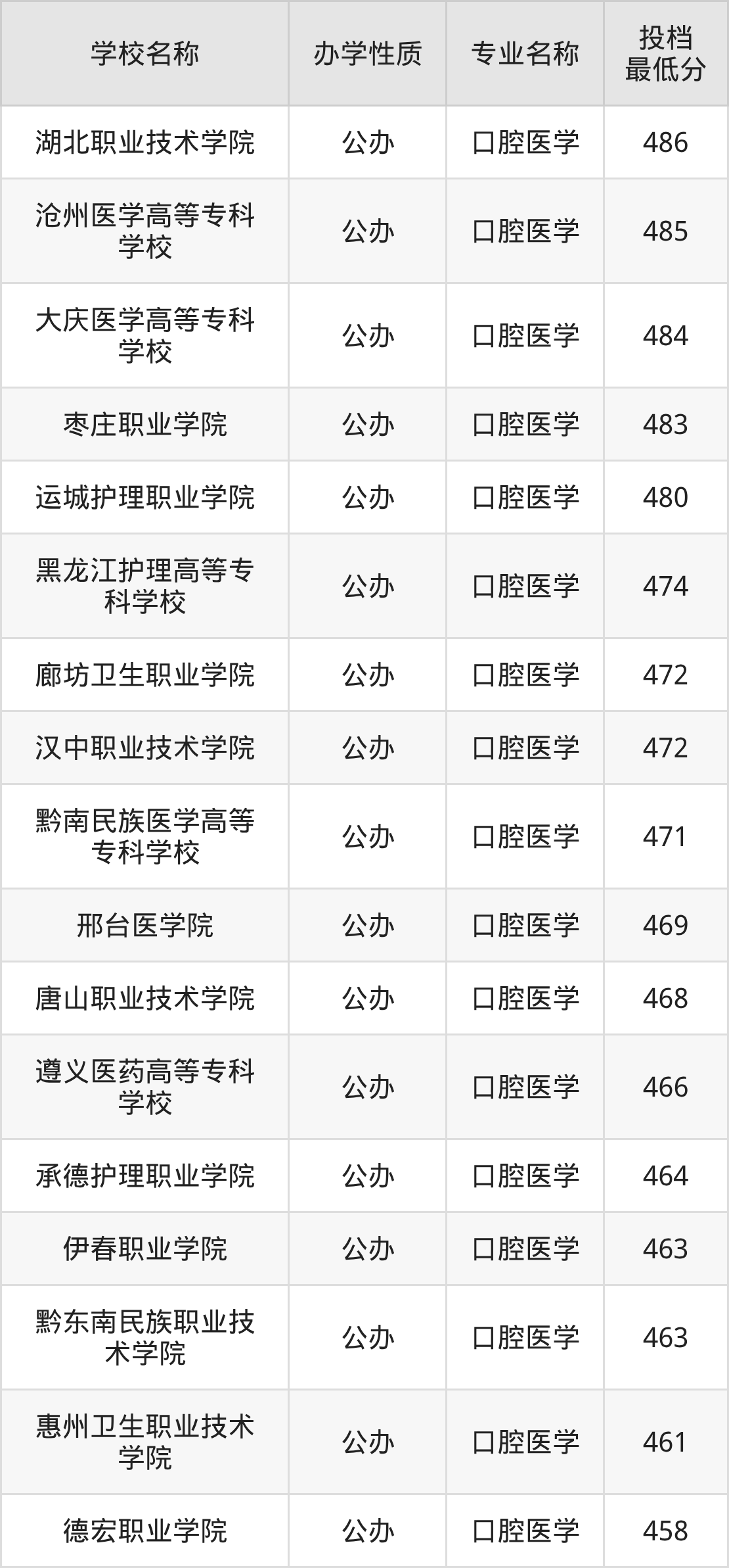 500分左右的口腔医学大学:湖北三峡职业技术学院504分、重庆医药高等专科学校511分、天津医学高等专科学校512分、湖北中医药高等专科学校529分等;