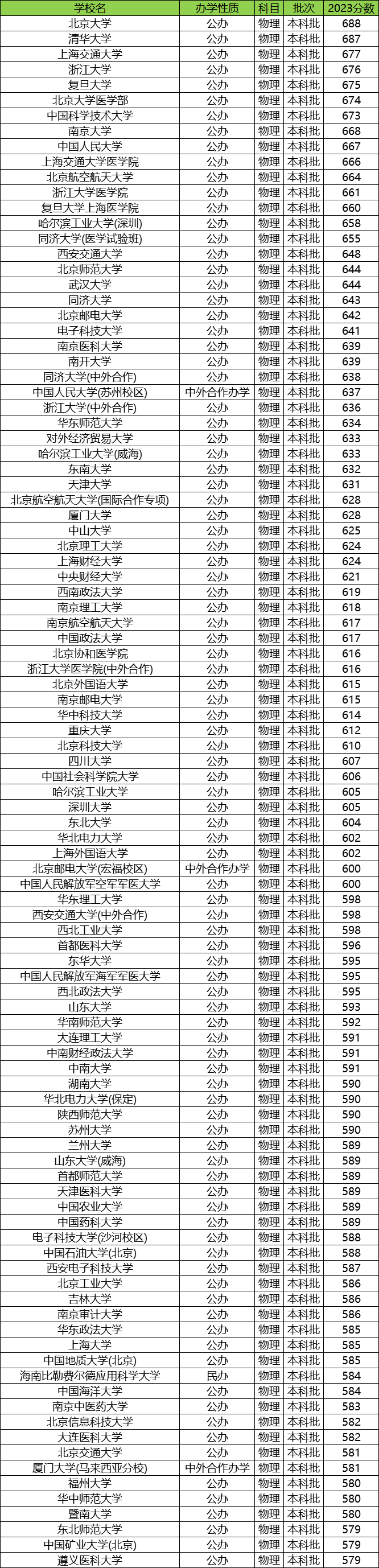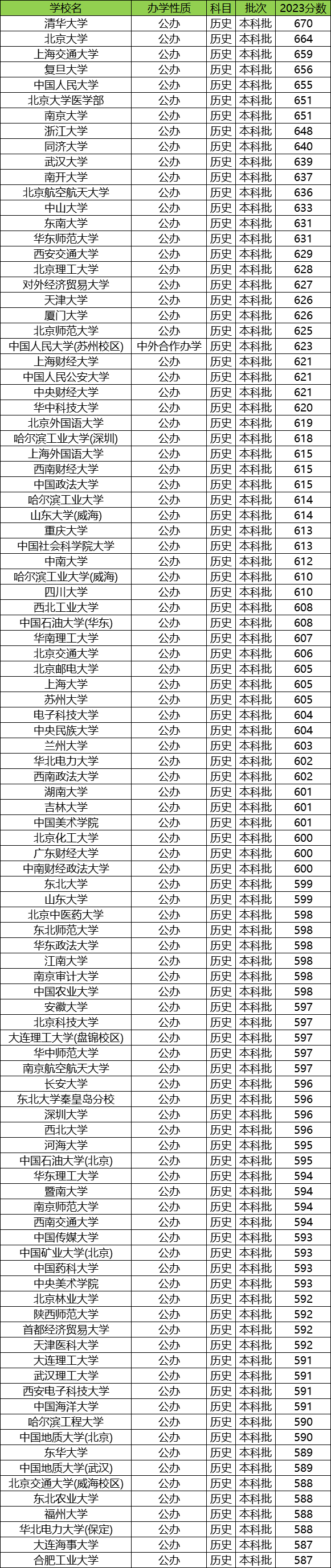 一、全国大学分数线