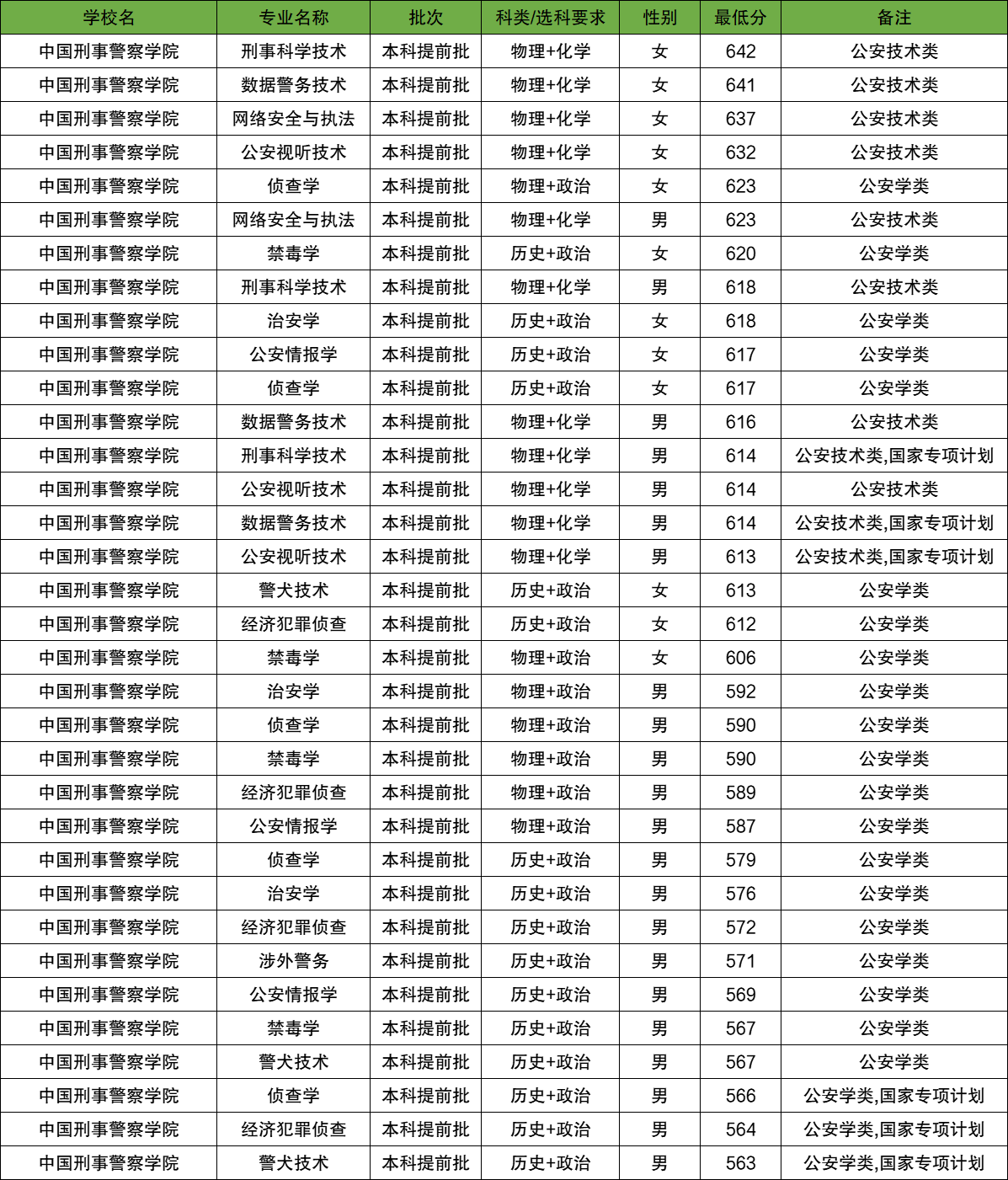 根据2025年中国刑事警察学院在湖南省的录取情况,统计男女生分数如下: