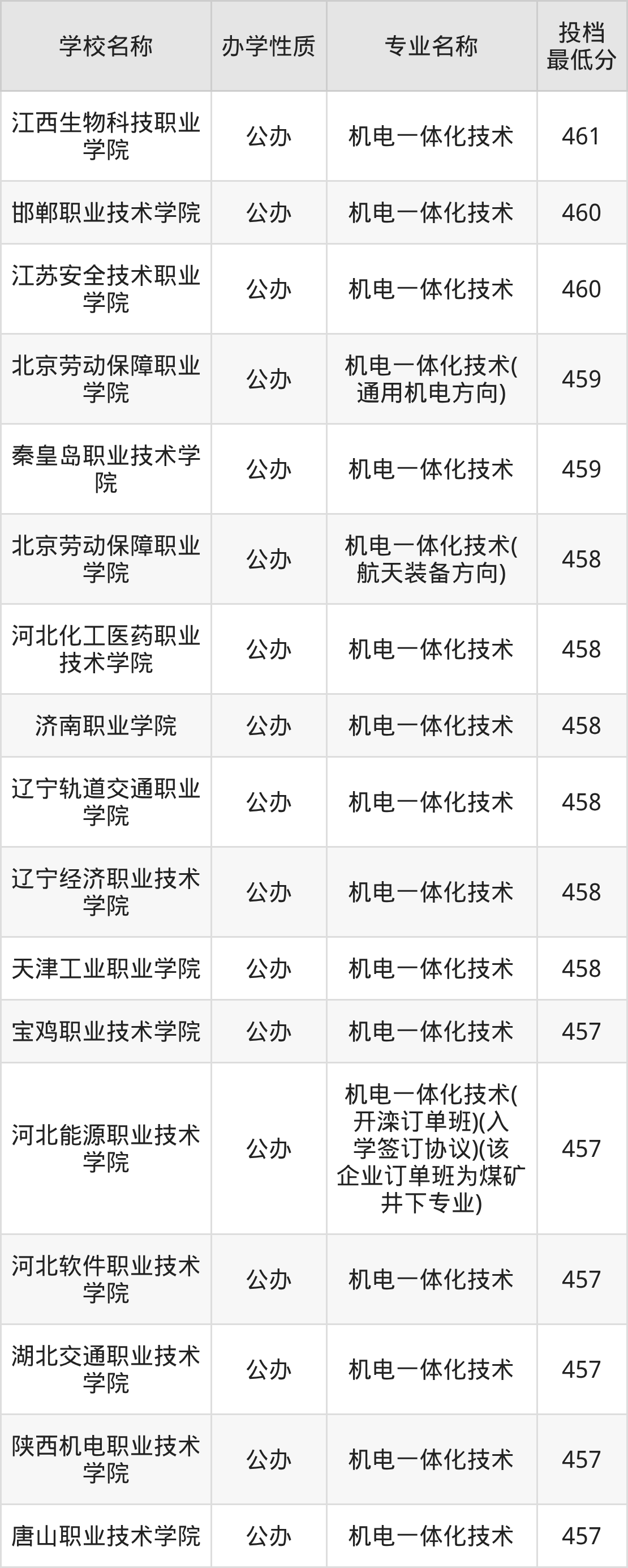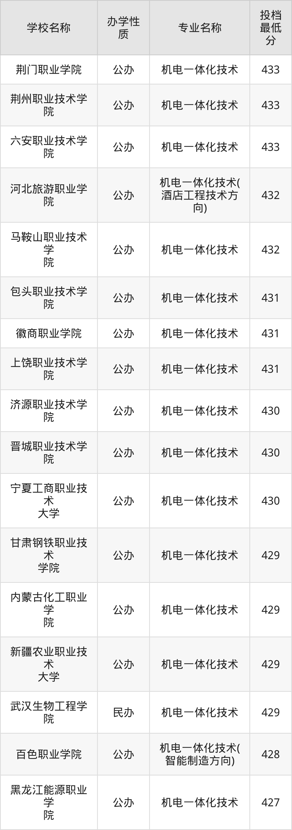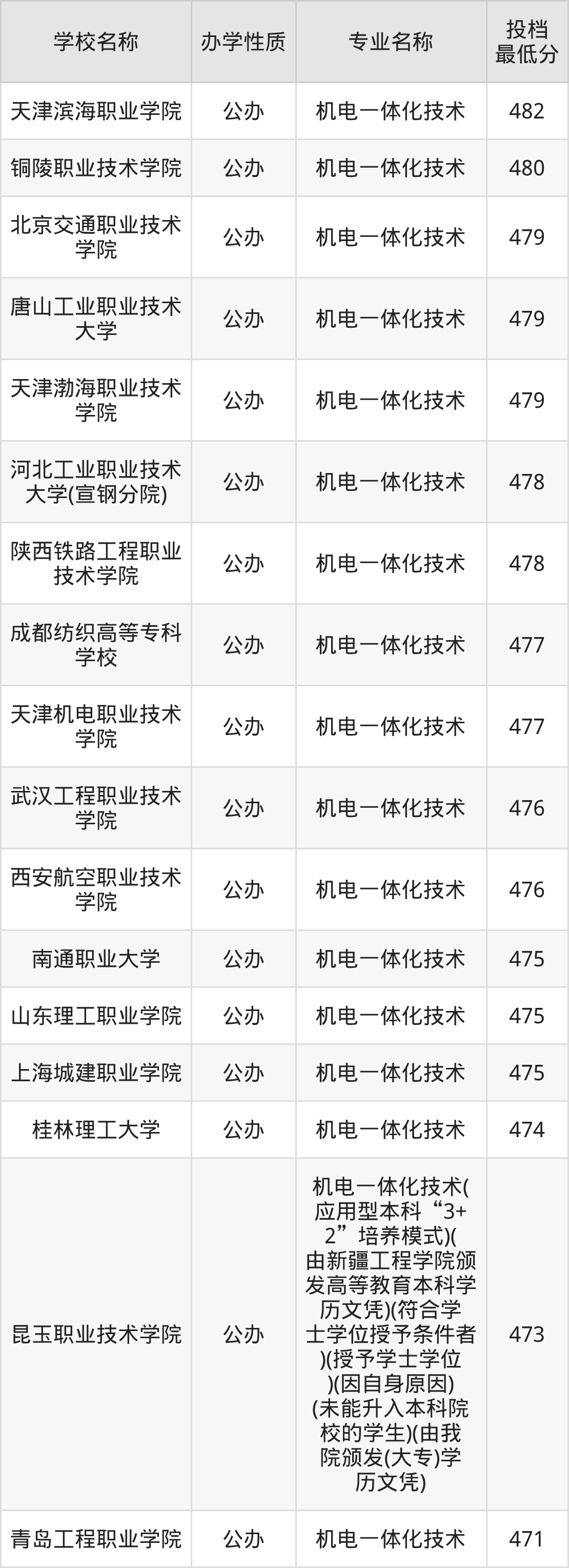 一、2025机电一体化技术专业录取分数线多少