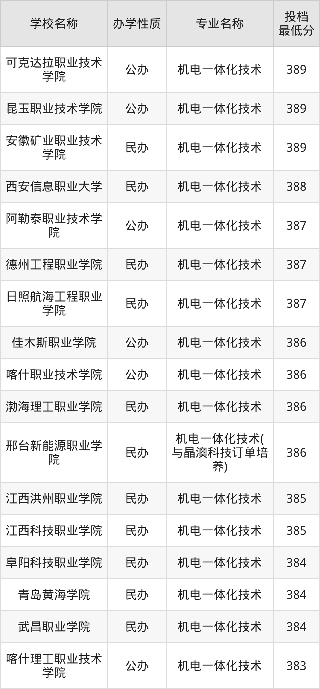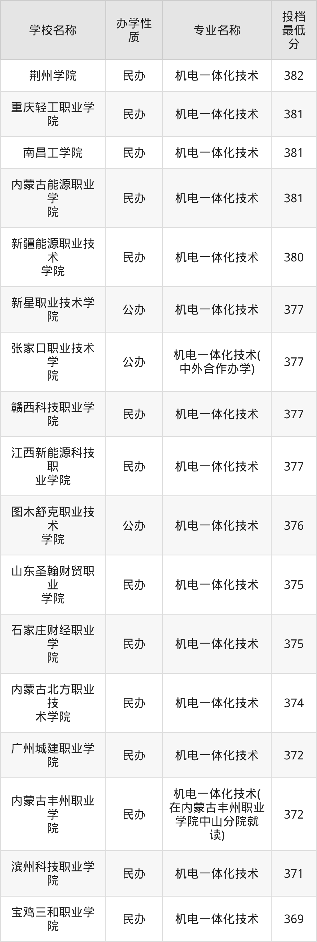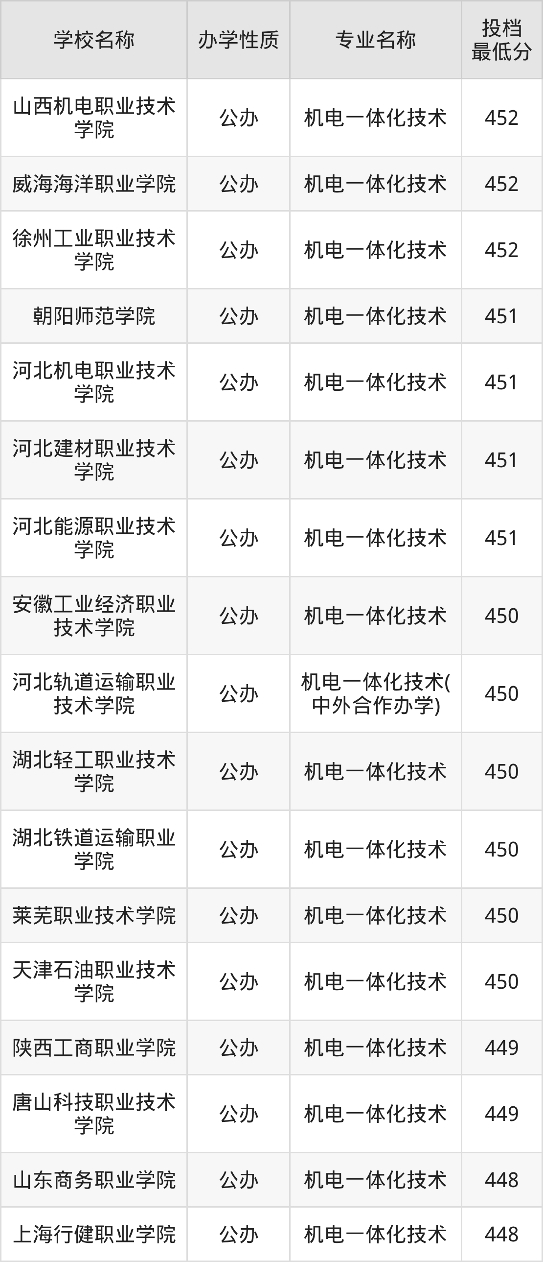 一、2025机电一体化技术专业录取分数线多少