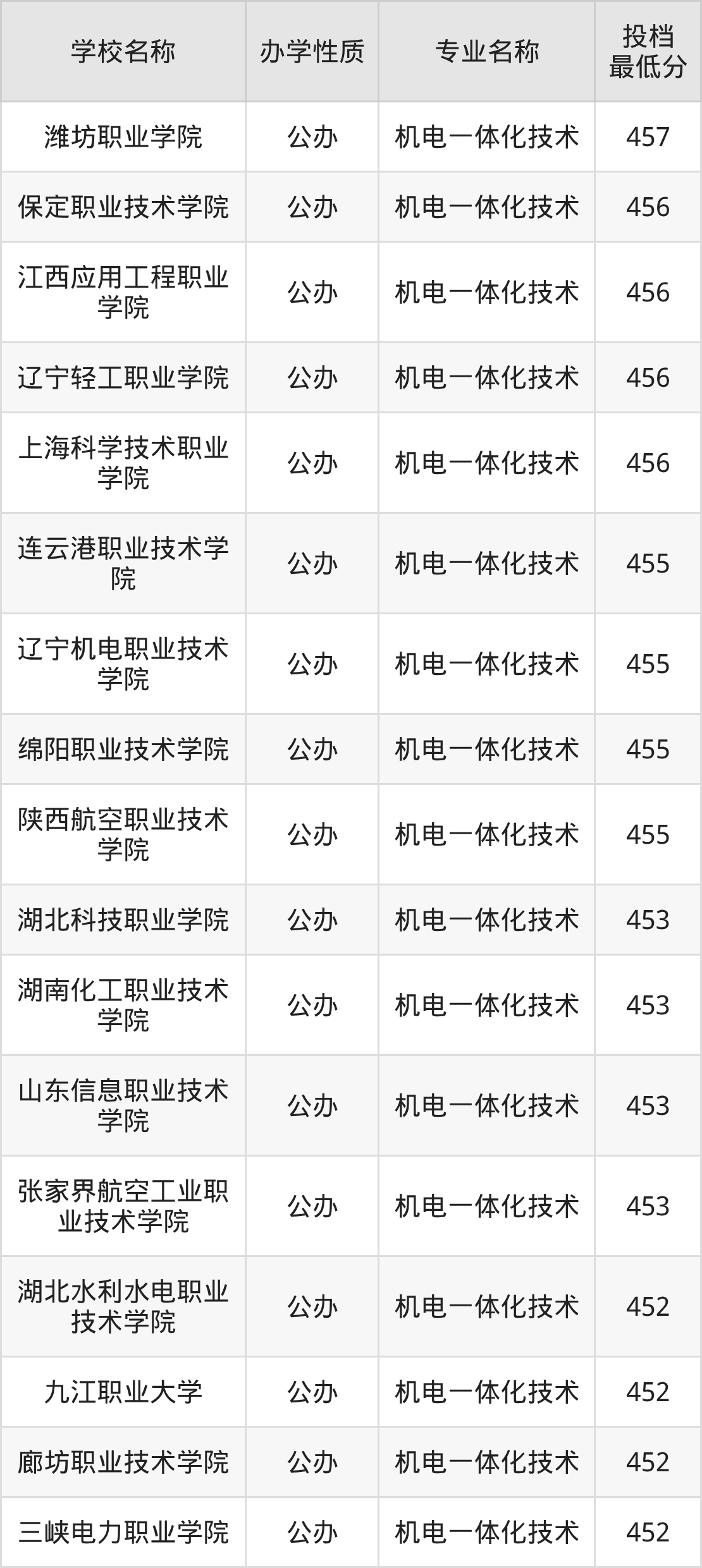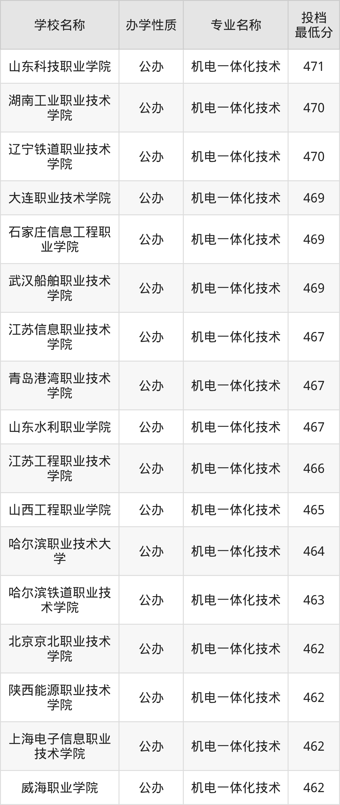 下面是2025年全国所有大学机电一体化技术专业录取分数线一览表(按照分数线从高到低排名):