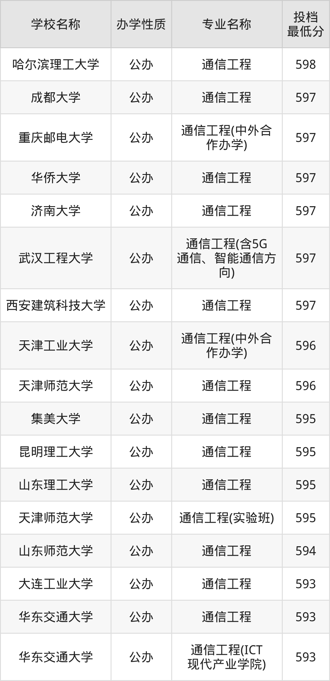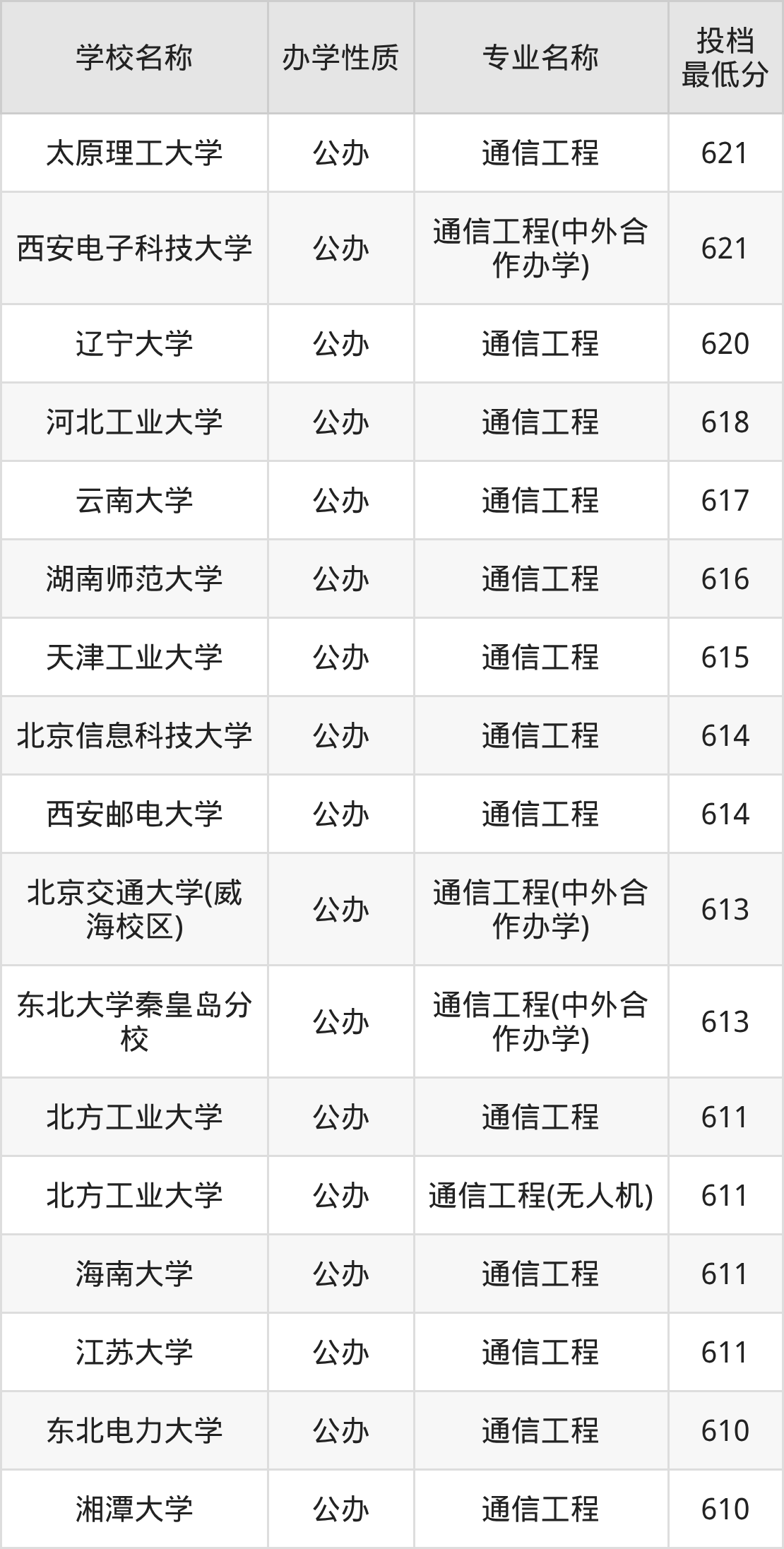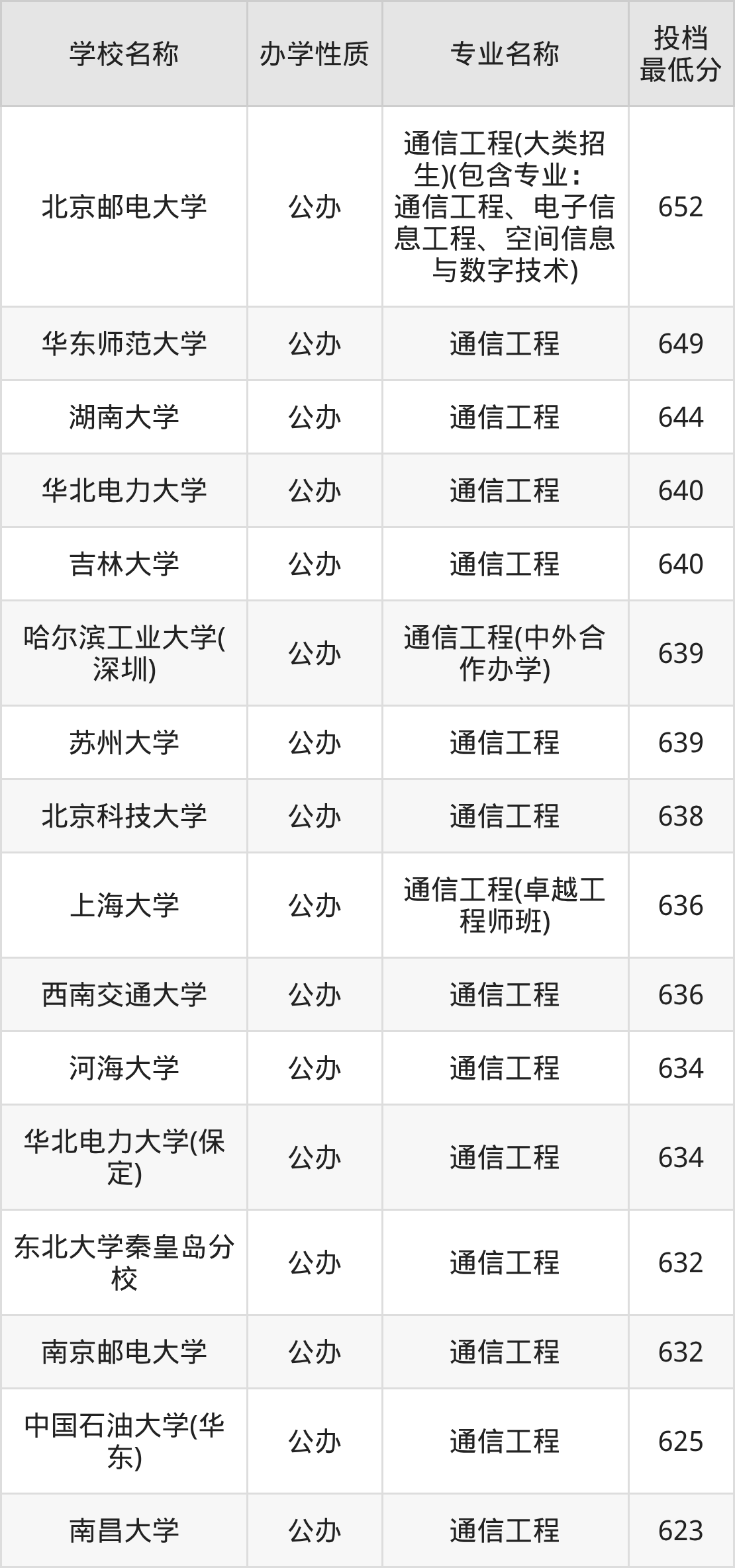 下面是2025年全国所有大学通信工程专业录取分数线一览表(按照分数线从高到低排名):