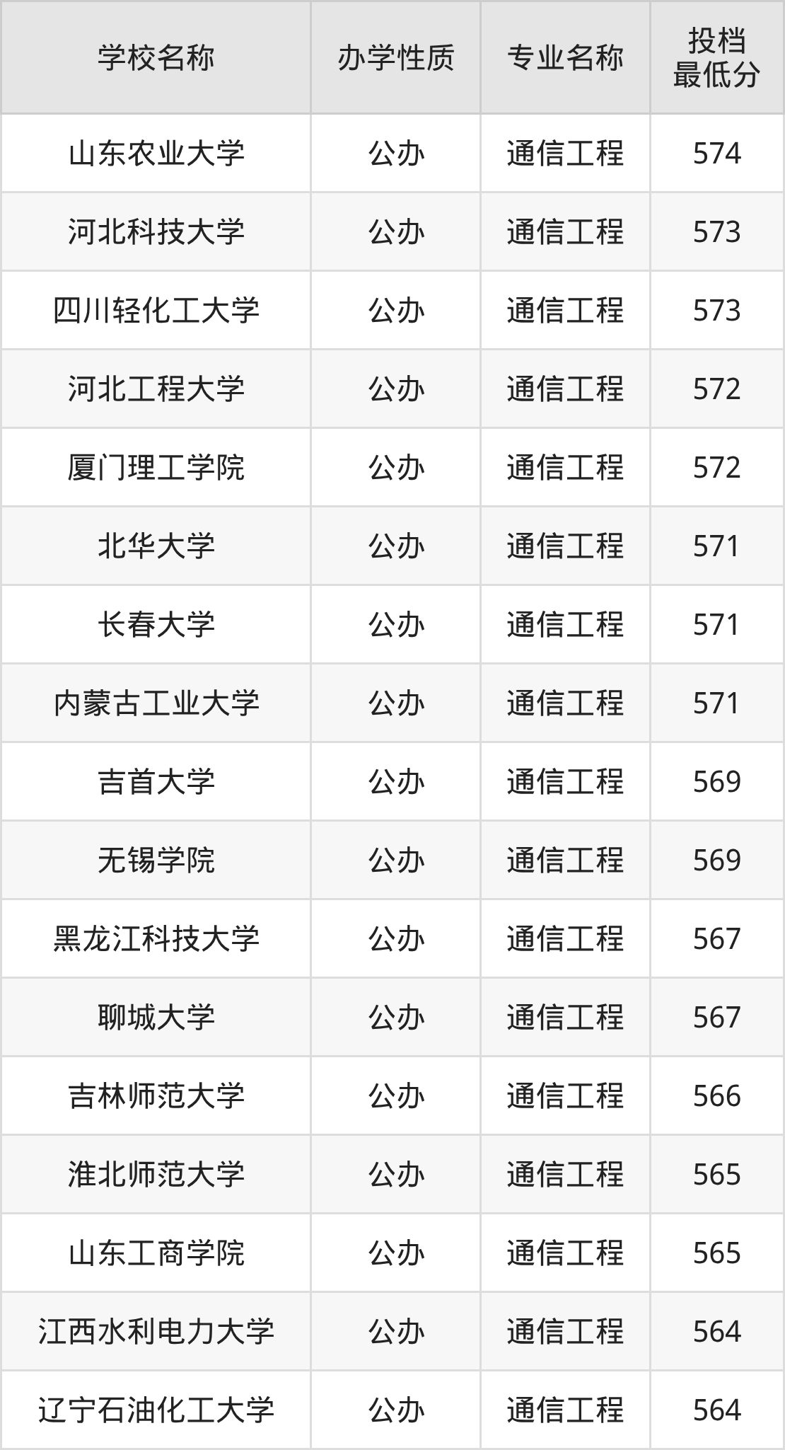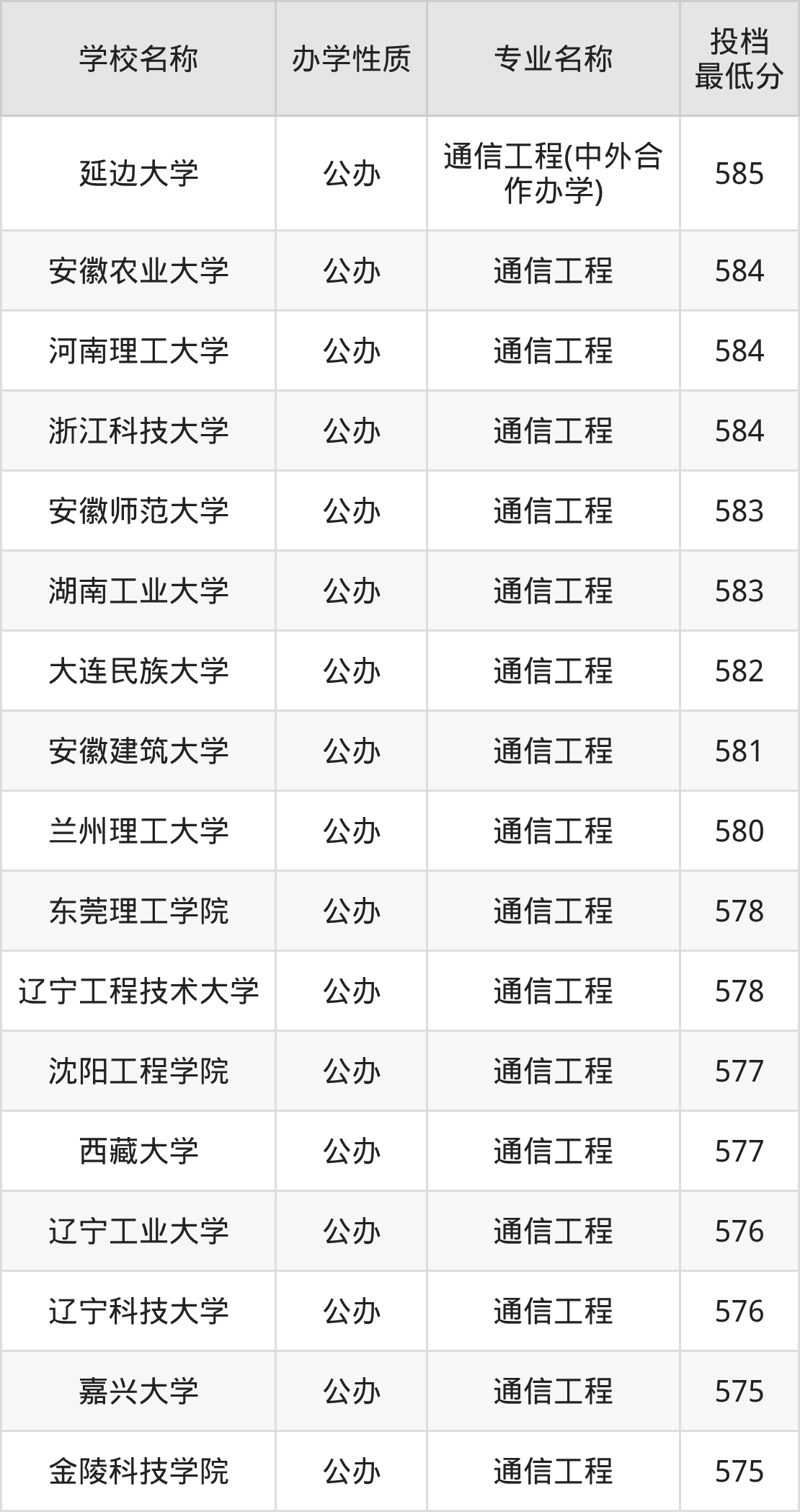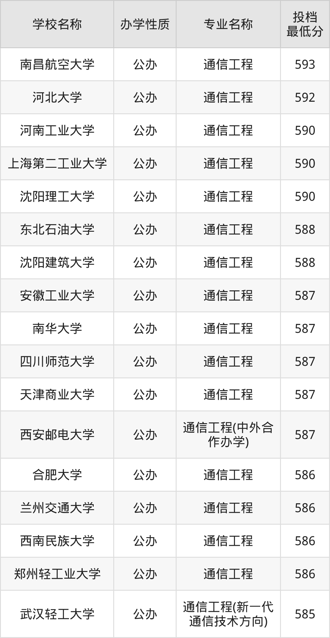 下面是2025年全国所有大学通信工程专业录取分数线一览表(按照分数线从高到低排名):